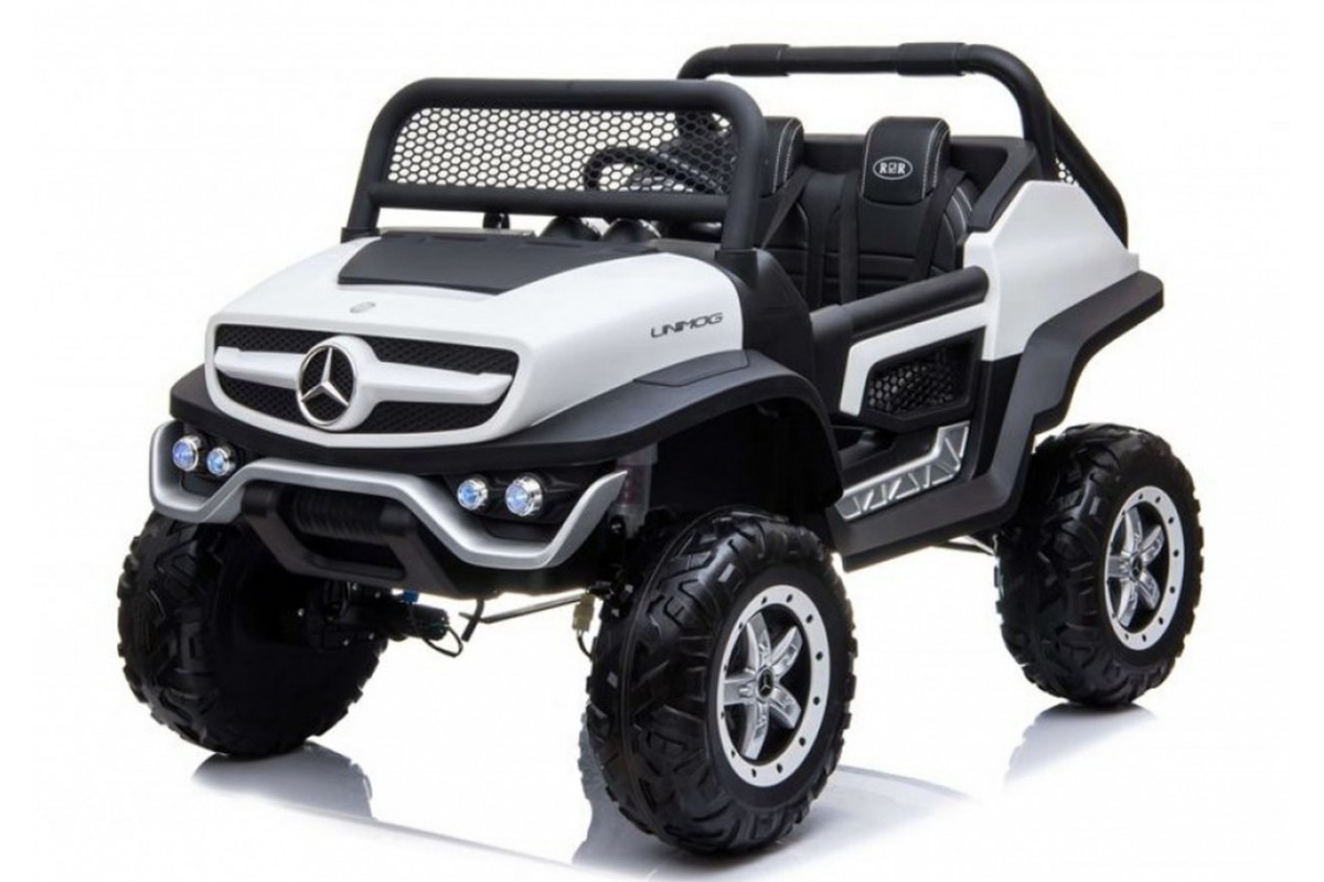 RiverToys Unimog Concep P555BP 4WD (ЛИЦЕНЗИОННАЯ МОДЕЛЬ) – большой электромобиль, представленный в виде внедорожника Mercedes-Benz. Он оснащен вместительным отсеком для игрушек и вещей. В салоне установлено мягкое кожаное сидение, рассчитанное на 2 посадочных места.