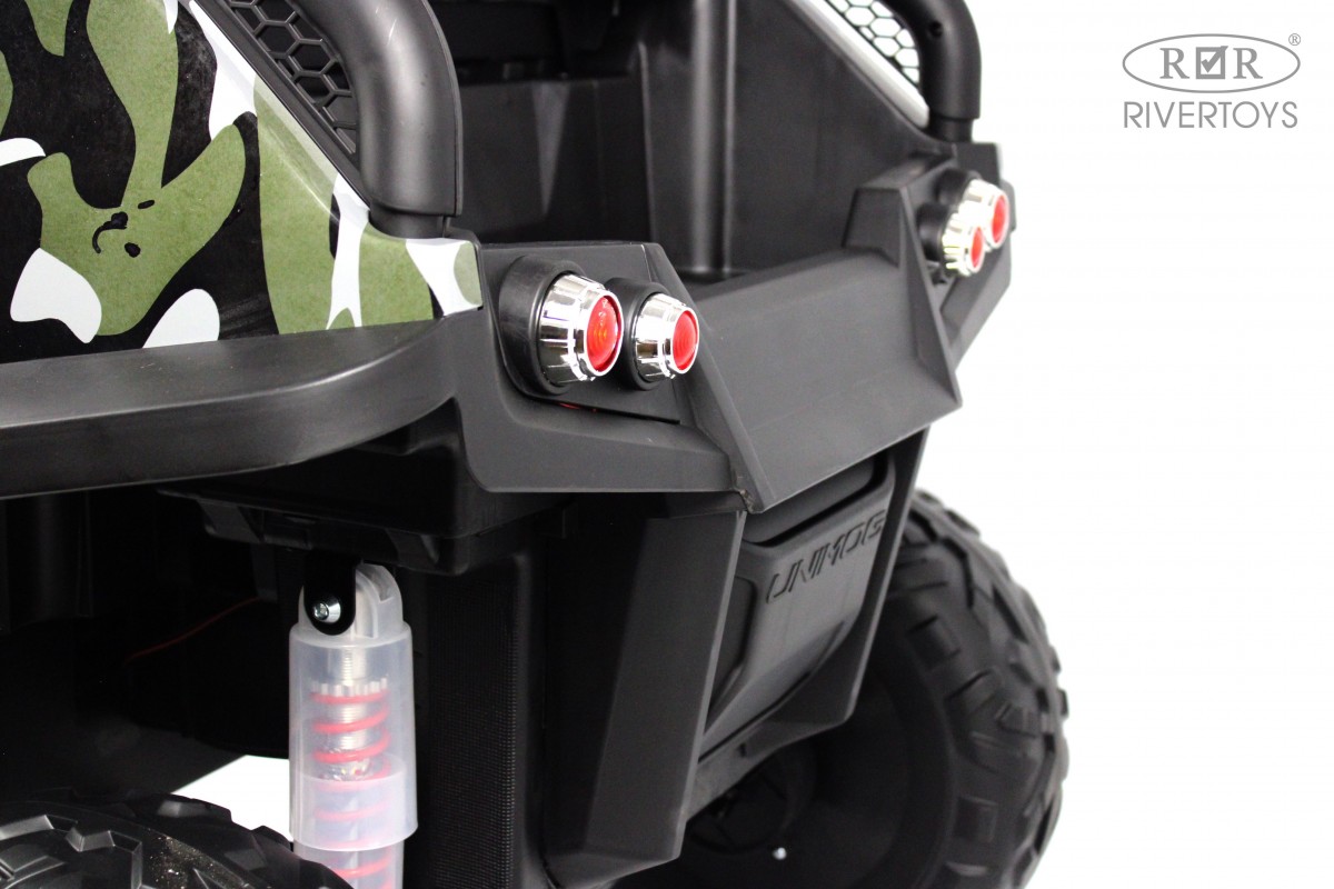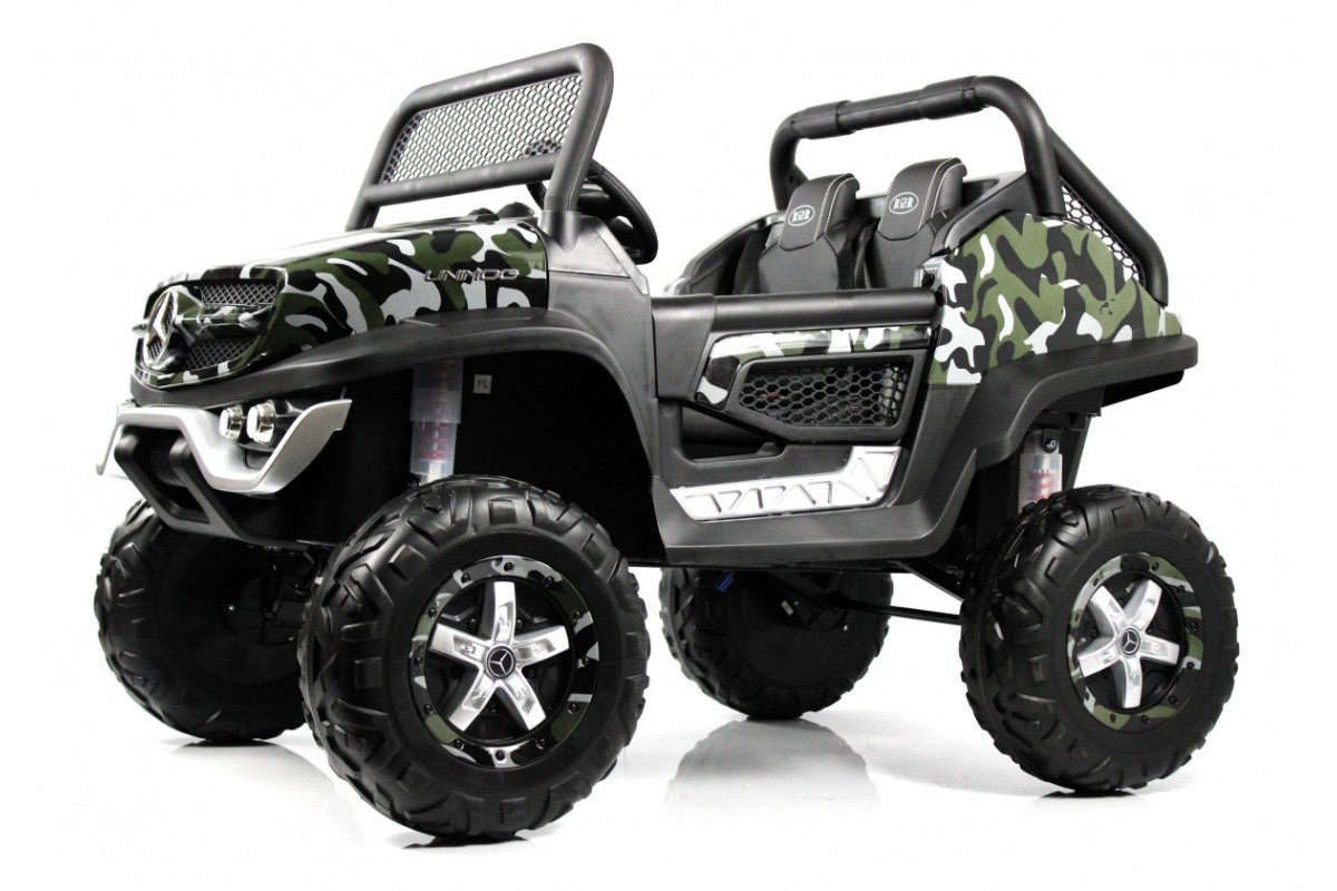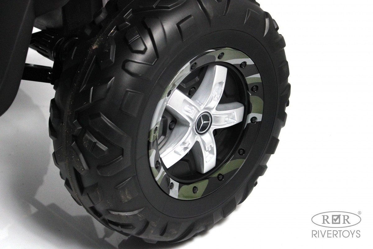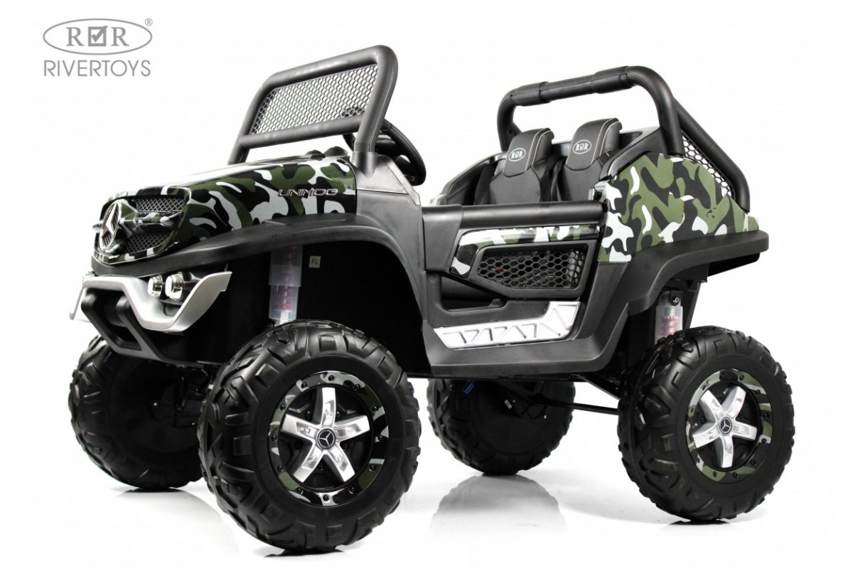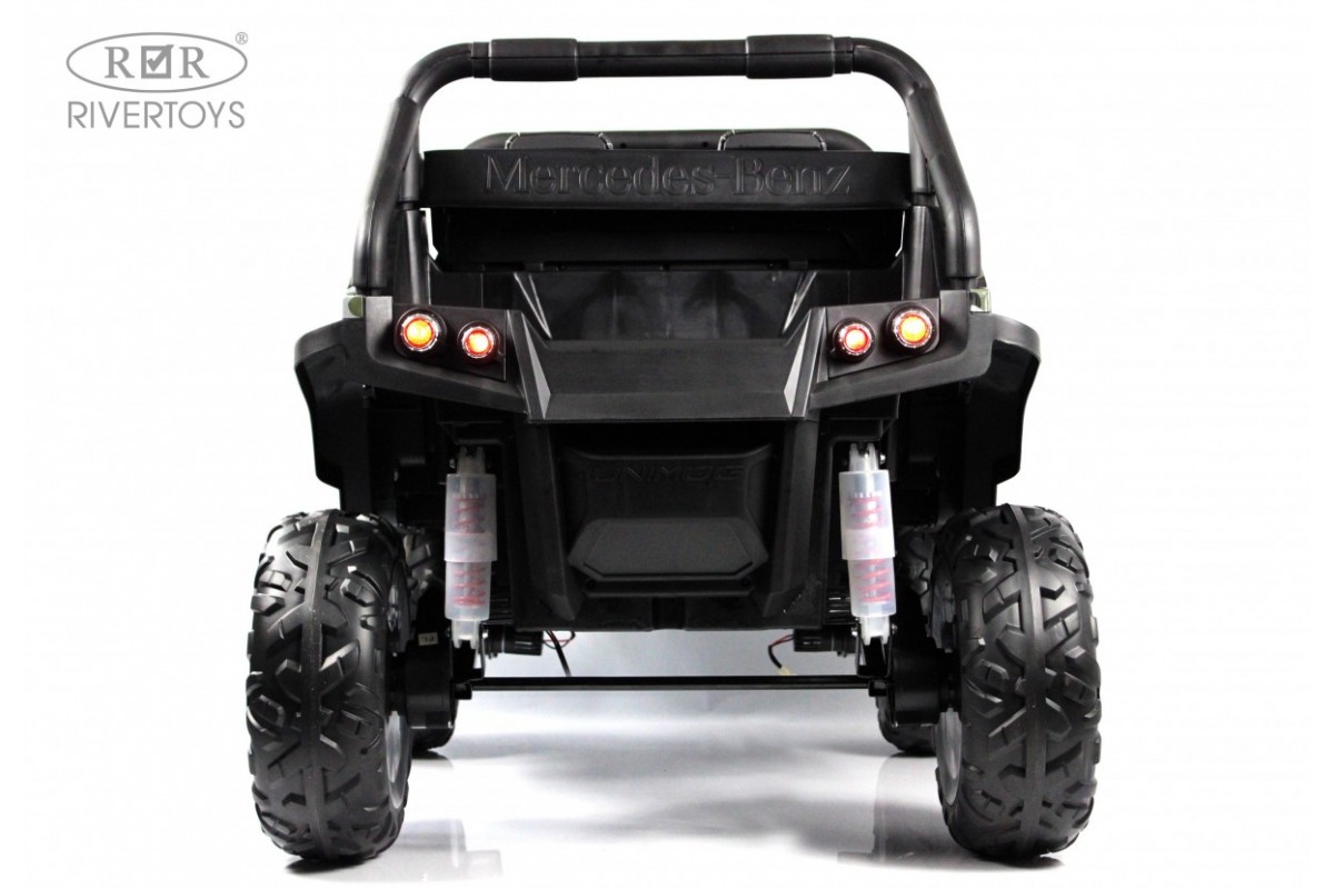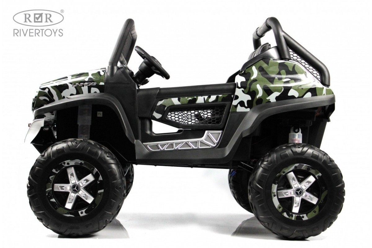 RiverToys Unimog Concep P555BP 4WD (ЛИЦЕНЗИОННАЯ МОДЕЛЬ) – большой электромобиль, представленный в виде внедорожника Mercedes-Benz. Он оснащен вместительным отсеком для игрушек и вещей. В салоне установлено мягкое кожаное сидение, рассчитанное на 2 посадочных места.
