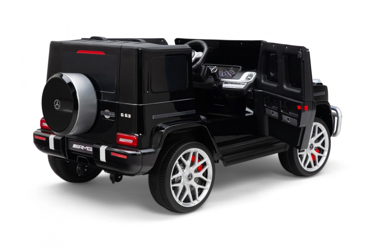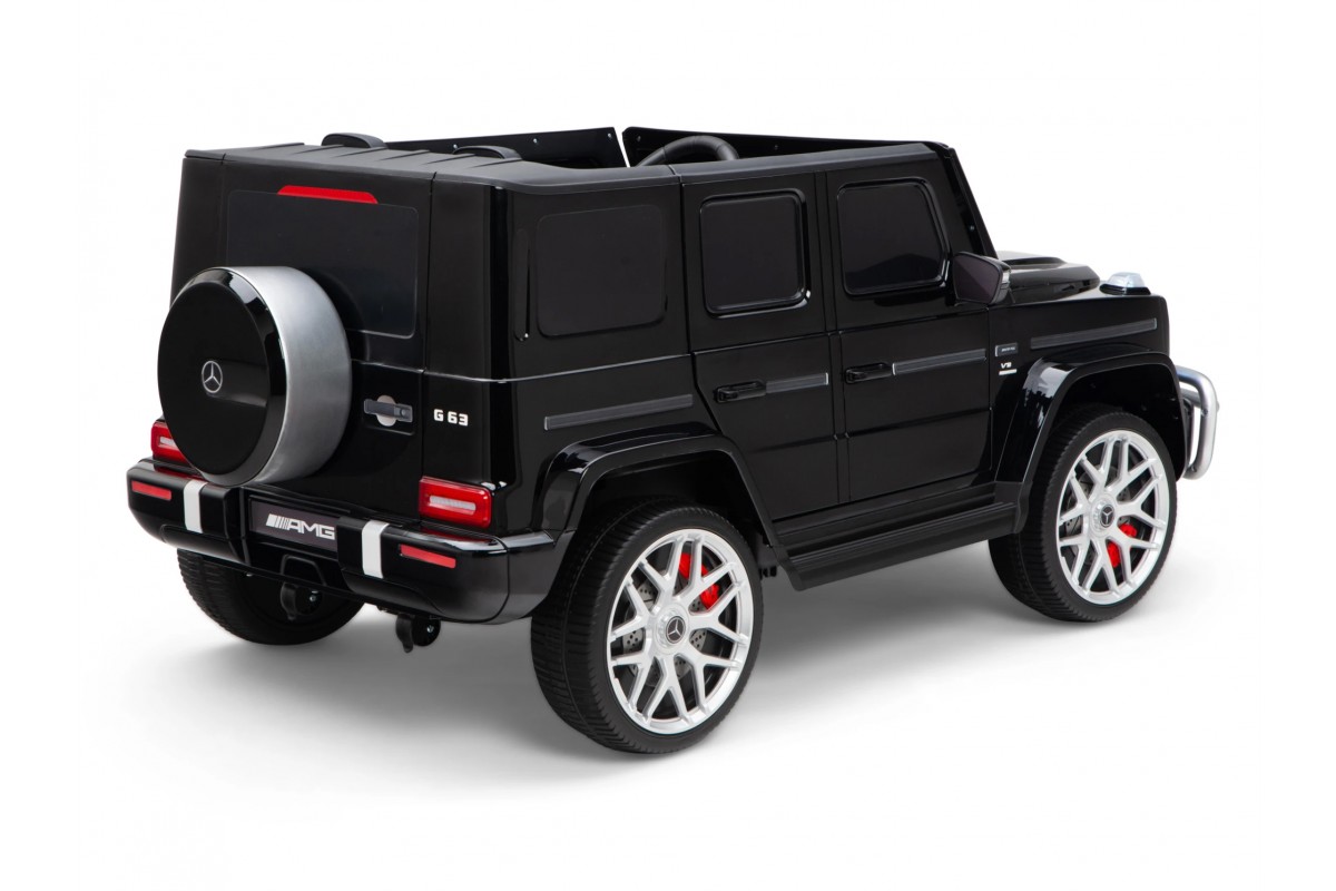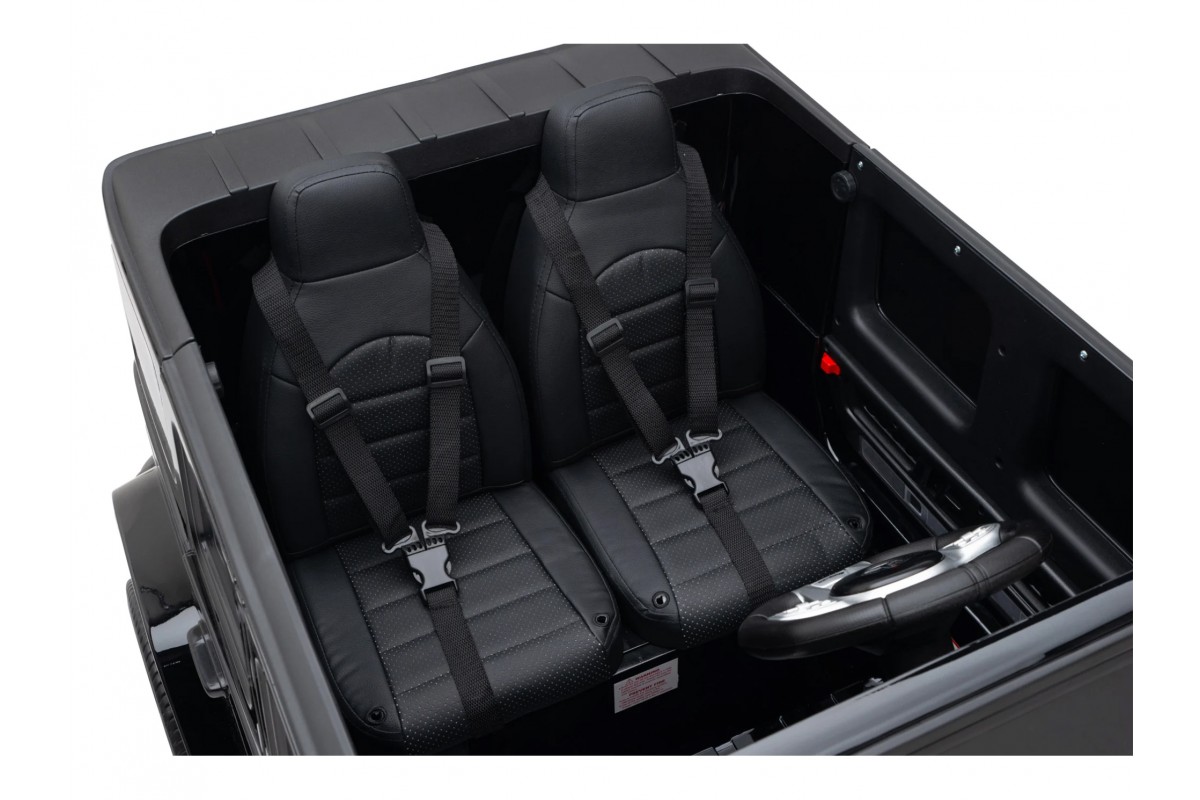 Детский электромобиль Mercedes G63 AMG 4WD 24V - S307-BLACK-PAINT - это стильный, большой джип Mercedes Benz G63 S307 24V 4x4 обеспечивает комфортное катание по городским и дачным дорогам. Салон оснащён двумя кожаными сиденьями и раздельными ремнями безопасности, которые надёжно зафиксируют юных водителей на креслах. Данная модель отличается улучшенными ходовыми характеристиками: полным приводом с моторами по 50 Ватт, задними амортизаторами, резиновыми колёсами.