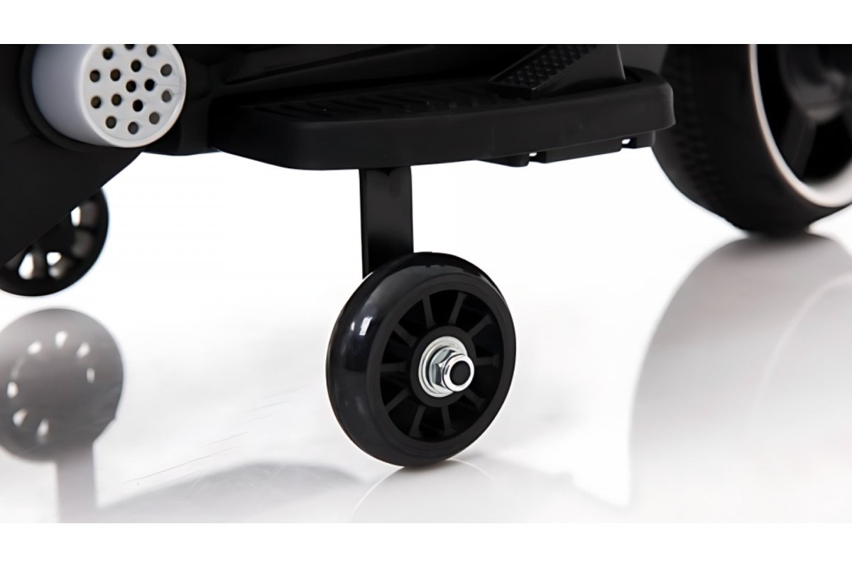 Резиновые мягкоходные колеса обеспечивают оптимальную степень крепкого сцепления для безопасности ходового процесса, уверенная же устойчивость доступна при наличии пары небольшого диаметра дополнительных колесиков.