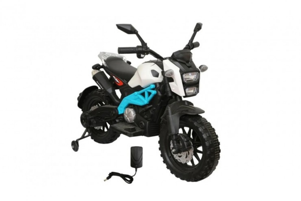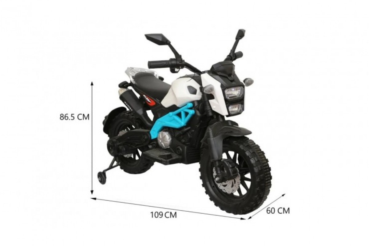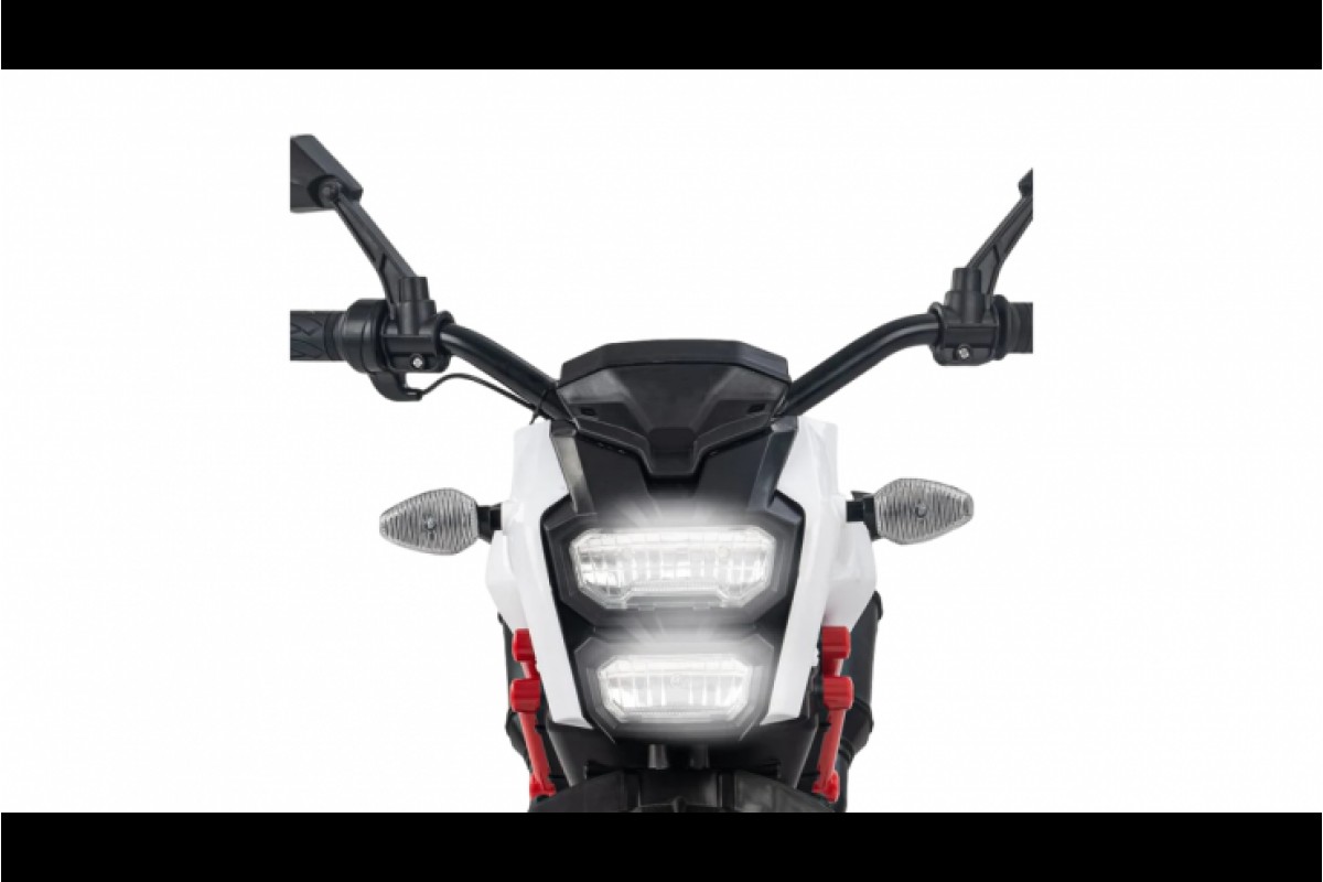 Мотоцикл представляет собой уменьшенную копию настоящего мотоцикла. Обтекаемая форма обеспечивает лучшую аэродинамику и эффектный внешний вид. Разместиться с комфортом за рулем мотоцикла позволит наличие удобного сиденья. Для ног имеются специальные подставки с легко моющимся покрытием. Они расположены по бокам. Поворотная ручка газа, обеспечивает пропорциональный набор скорости мотоцикла. Панель приборов мотоцикла имеет декоративную подсветкой. Светодиодные фары позволят ребенку кататься на мотоцикле в темное время суток.