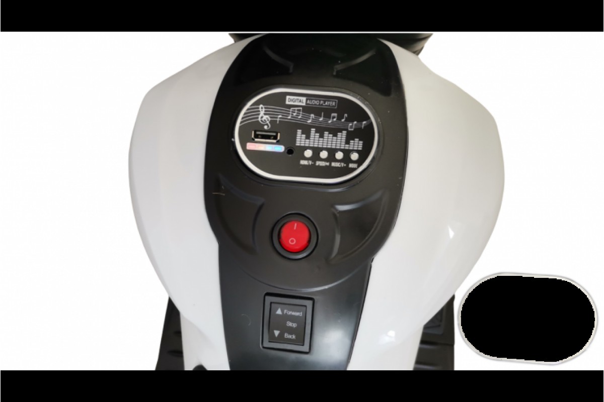 Внимание малыша обязательно привлечет музыкальная система электромотоцикла со штатными мелодиями и разъемами USB и AUX. Крупные резиновые колеса электромобиля сглаживают все неровности и шероховатости на пути. Также имеются специальные стояночные колесики, не позволяющие мотоциклу упасть в положении покоя, кроме того, их можно использовать до тех пор, пока ребенок не научится хорошо держать баланс.