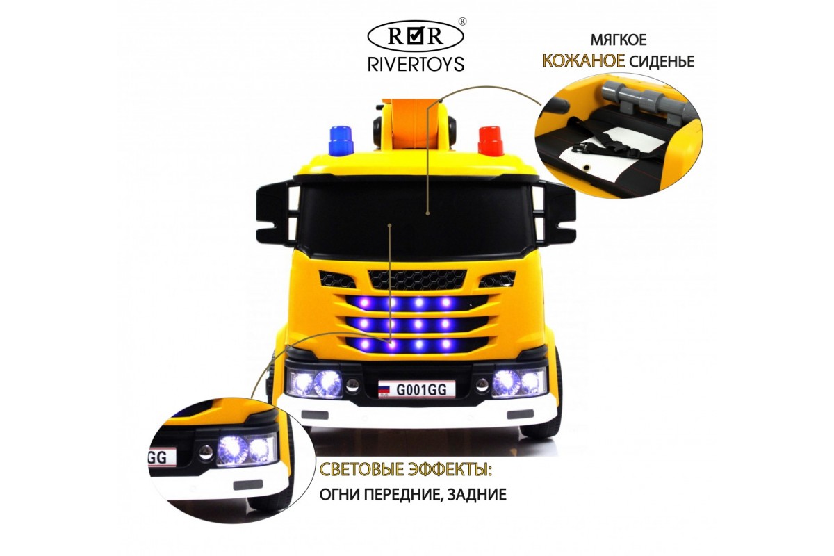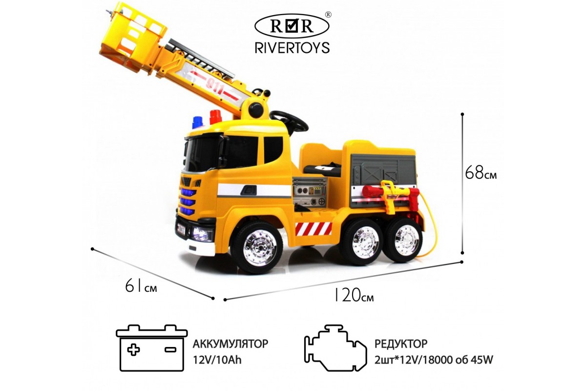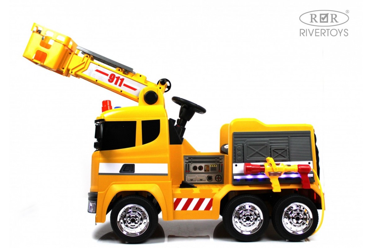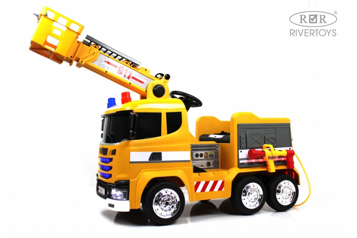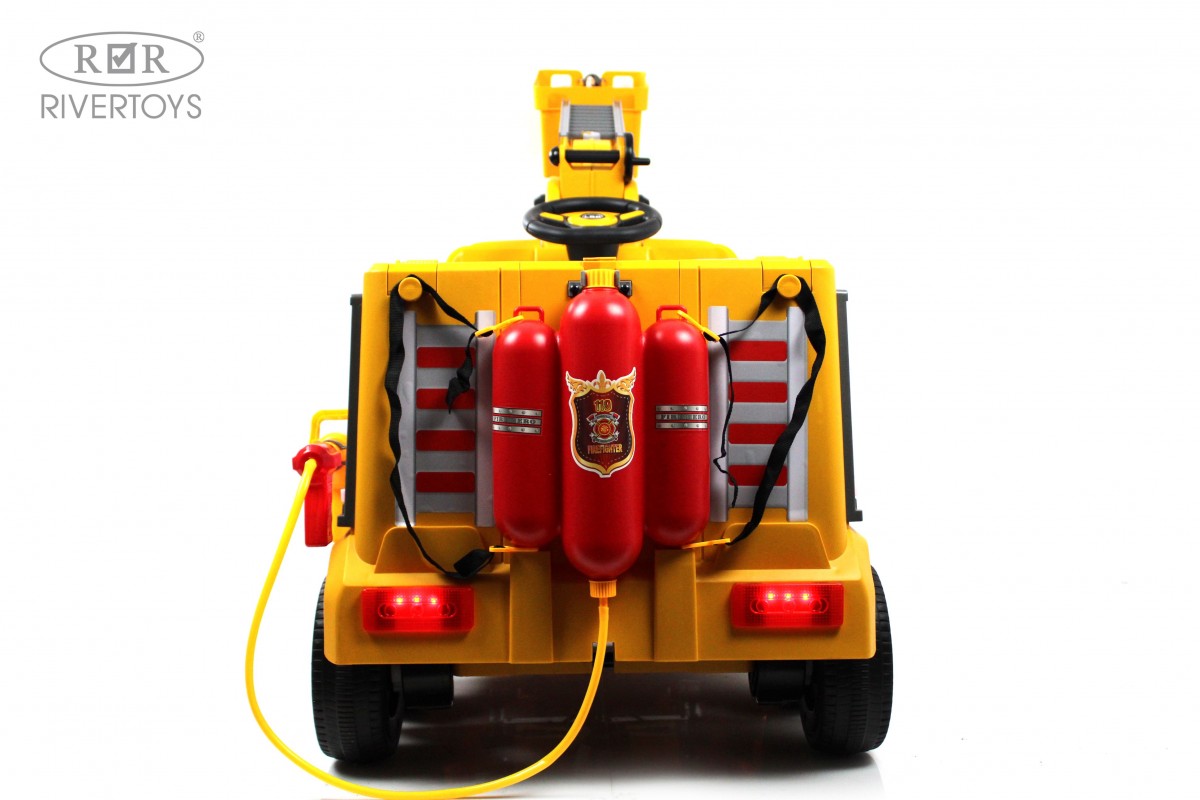 Движение: педаль газа, электронные игровые элементы пожарной техники- водомет на подъемнике, задний насосный огнетушитель.