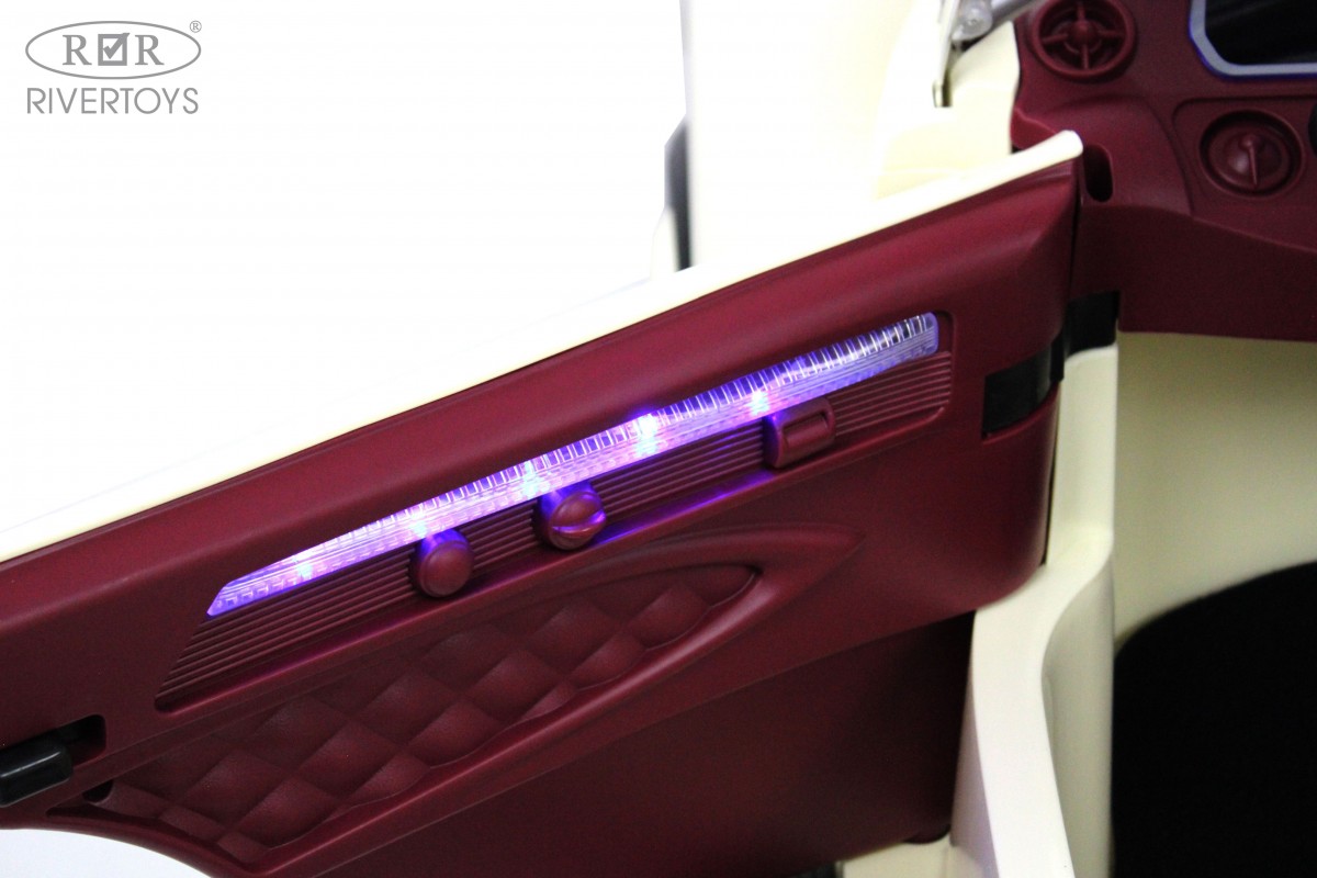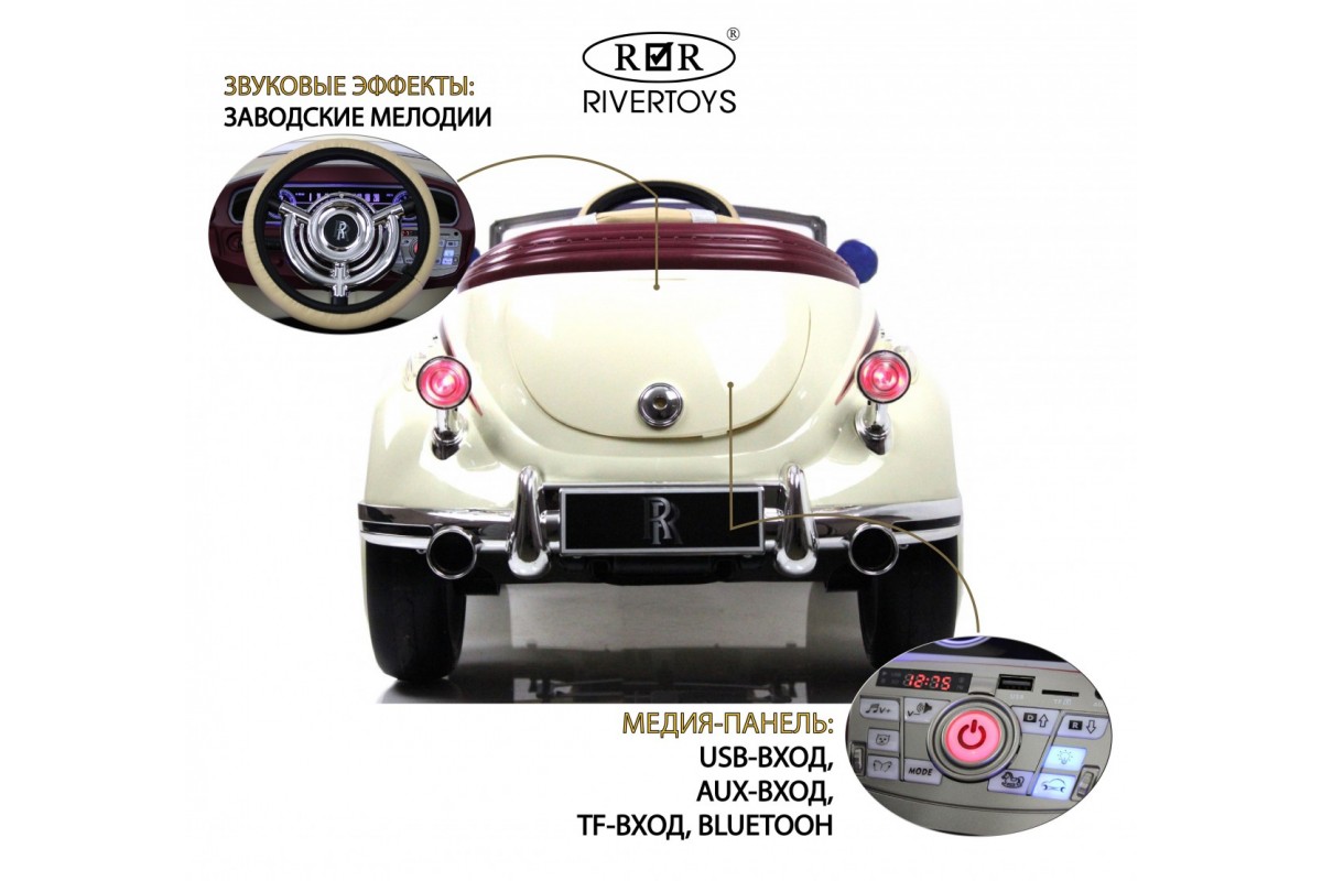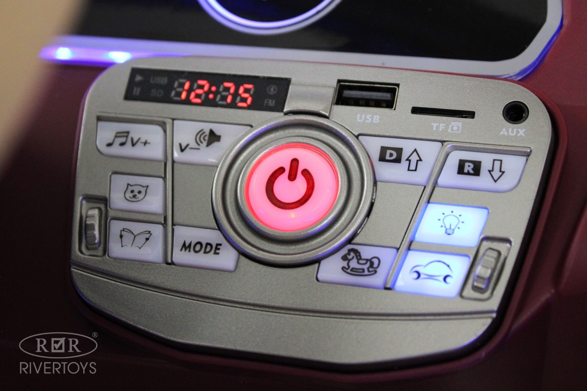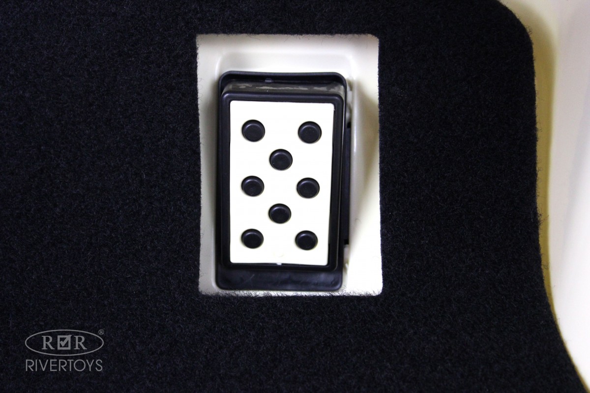 Особенности модели: открываются двери, открывается багажник, коврик, индикатор заряда батареи, кнопка пульт/педаль, принцип-чемодана (выдвигается ручка сзади)