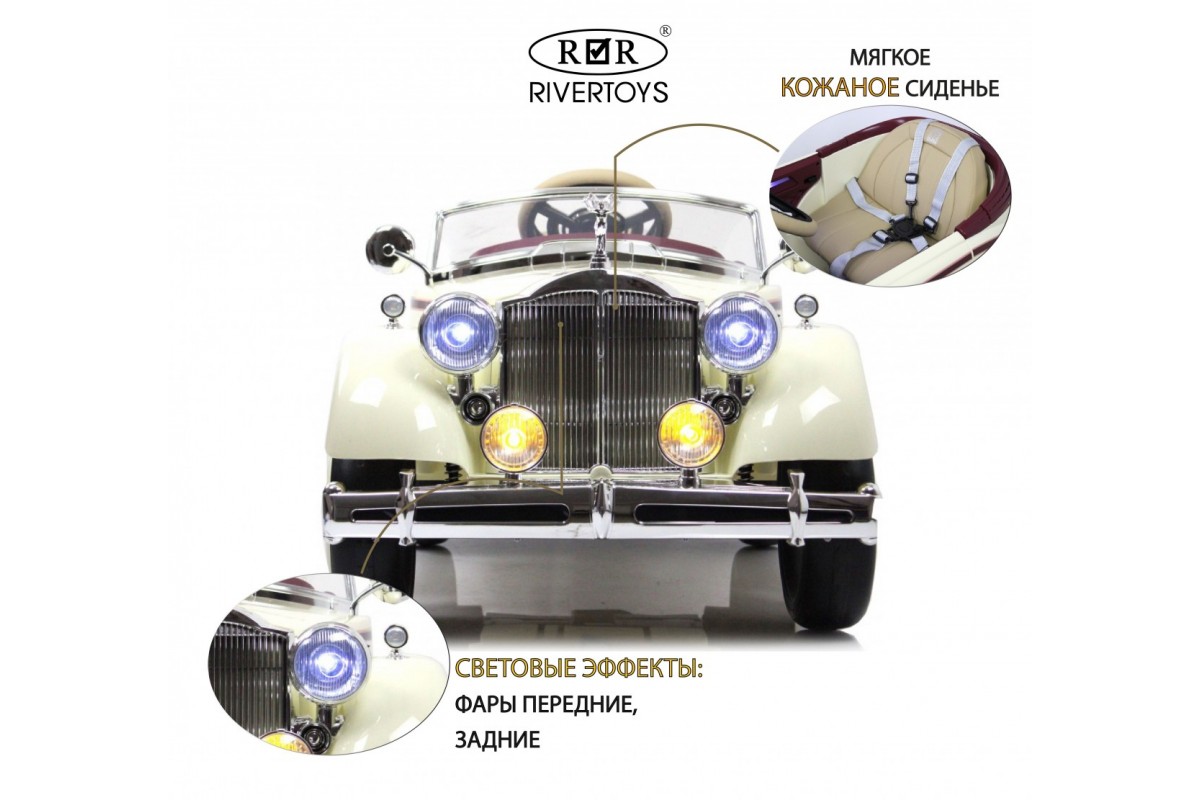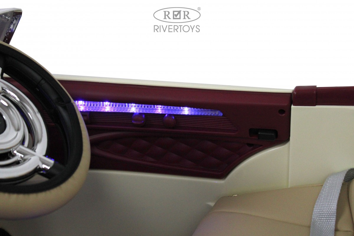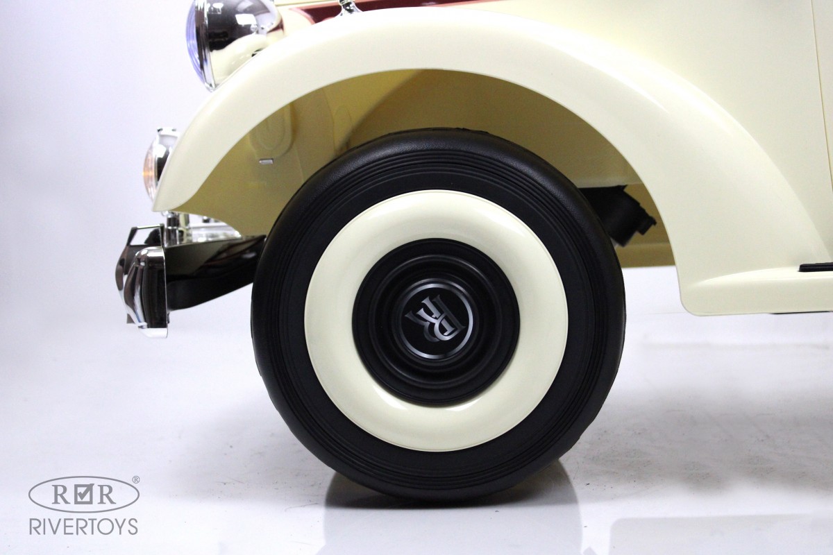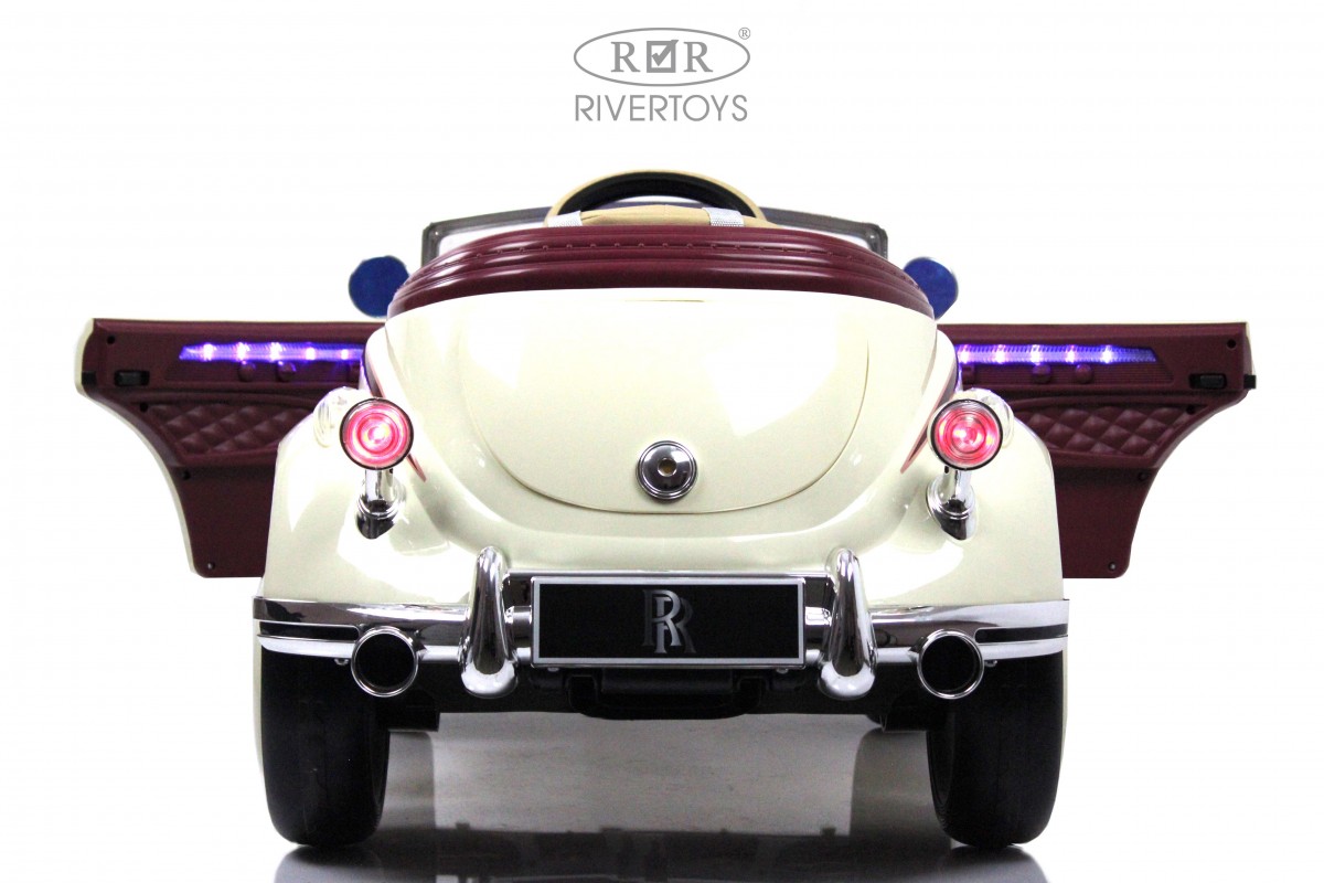 Особенности модели: открываются двери, открывается багажник, коврик, индикатор заряда батареи, кнопка пульт/педаль, принцип-чемодана (выдвигается ручка сзади)