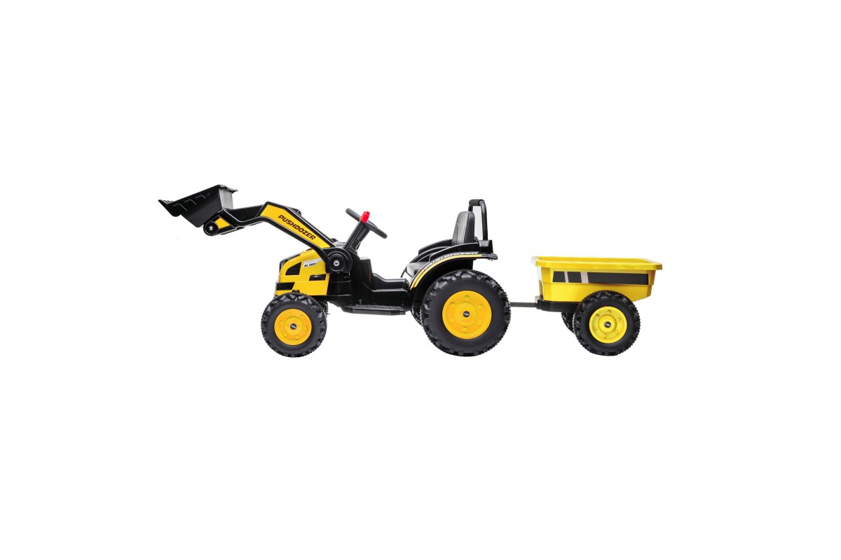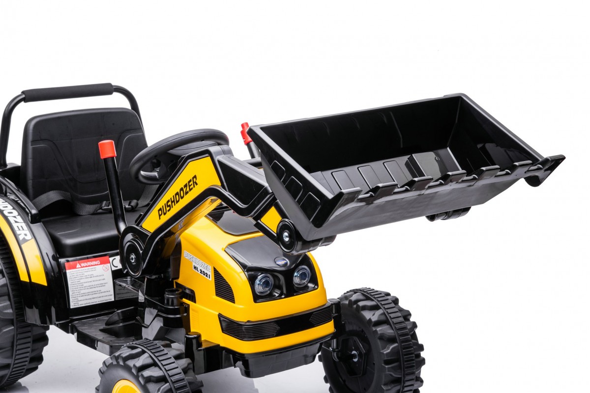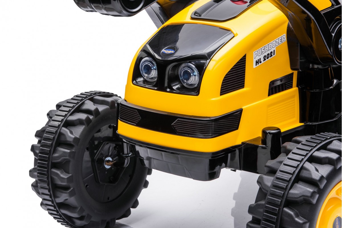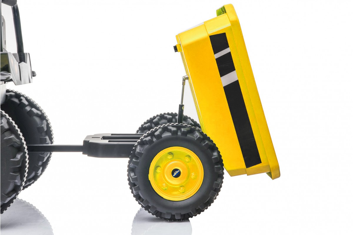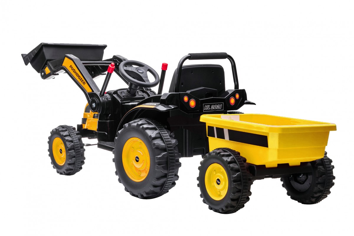 Детский электромобиль трактор с ковшом и прицепом (желтый, 2WD, EVA) - HL389-LUX-YELLOW-TRAILER - это современная, эффектная и занимательная модель трактора на электроприводе. Модель отличается наличием ковша с механическим приводом, а также невероятно реалистичным звуком запуска двигателя при включении. Такие звуковые эффекты подарят невероятные эмоции всем окружающим. Детский трактор так же оборудован всеми современными комплектующими для комфортных и безопасных поездок: мягкие колеса резина EVA, кресло ЭКО кожа, пульт, музыка и подсветка фар станут приятным дополнением к качественной игрушке. Модель имеет легкосъемный аккумулятор, который можно заряжать отдельно от машинки. В комплект входит достаточно вместительная тележка в цвет корпуса трактора, на которой Ваш малыш сможет перевозить все необходимые вещи.