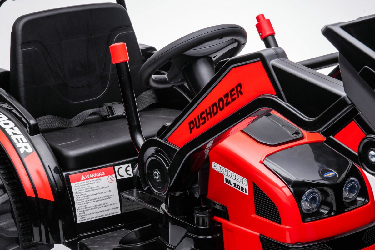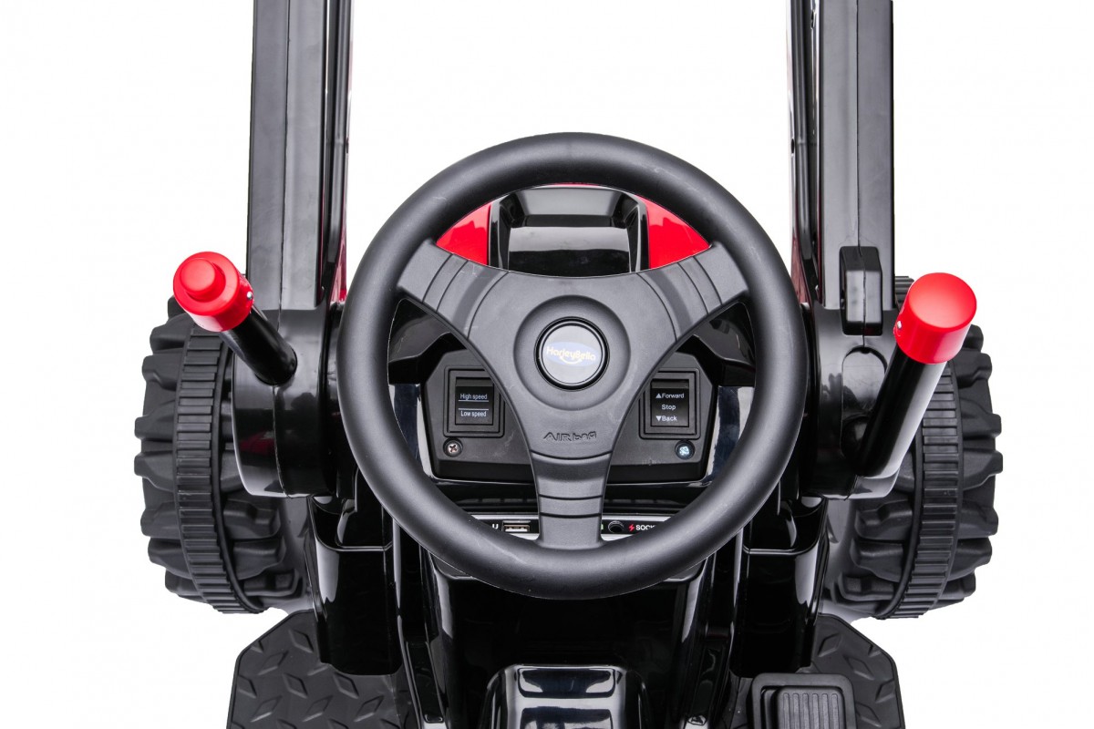 Детский электромобиль трактор с ковшом и пультом управления (красный, 2WD, EVA) - HL389-LUX-RED - это современная, эффектная и занимательная модель трактора на электроприводе. Модель отличается наличием ковша с механическим приводом, а также невероятно реалистичным звуком запуска двигателя при включении. Такие звуковые эффекты подарят невероятные эмоции всем окружающим. Детский трактор так же оборудован всеми современными комплектующими для комфортных и безопасных поездок: мягкие колеса резина EVA, кресло ЭКО кожа, пульт, музыка и подсветка фар станут приятным дополнением к качественной игрушке. Модель имеет легкосъемный аккумулятор, который можно заряжать отдельно от машинки.