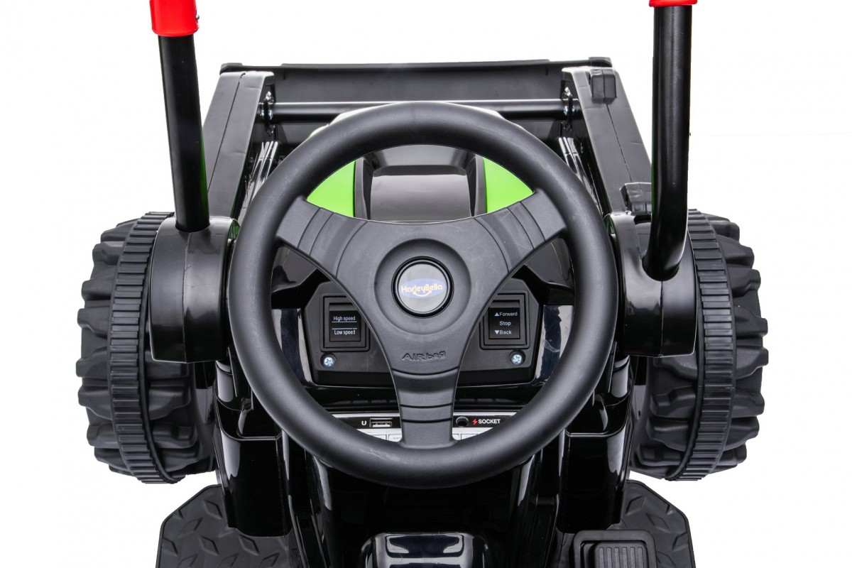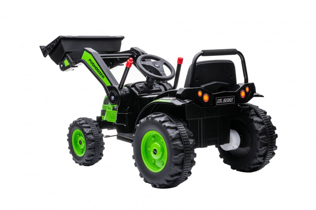 Детский электромобиль трактор с ковшом и пультом управления (зеленый, 2WD, EVA) - HL389-LUX-GREEN - это современная, эффектная и занимательная модель трактора на электроприводе. Модель отличается наличием ковша с механическим приводом, а также невероятно реалистичным звуком запуска двигателя при включении. Такие звуковые эффекты подарят невероятные эмоции всем окружающим. Детский трактор так же оборудован всеми современными комплектующими для комфортных и безопасных поездок: мягкие колеса резина EVA, кресло ЭКО кожа, пульт, музыка и подсветка фар станут приятным дополнением к качественной игрушке. Модель имеет легкосъемный аккумулятор, который можно заряжать отдельно от машинки.