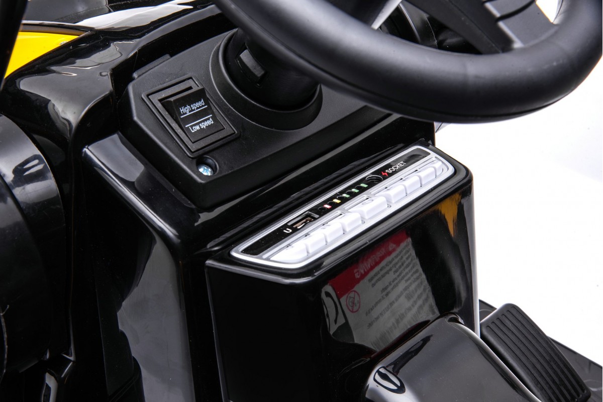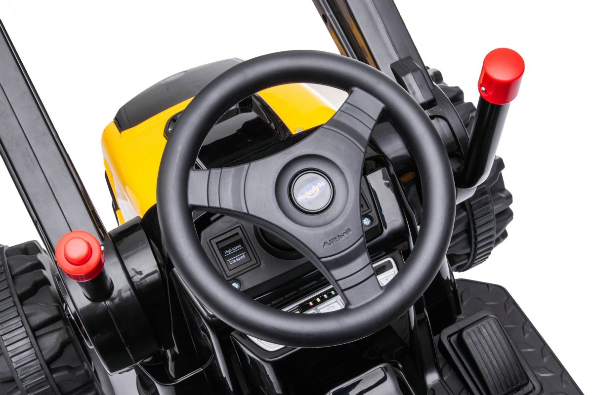 Детский электромобиль трактор с ковшом и пультом управления (желтый, 2WD, EVA) - HL389-LUX-YELLOW - это современная, эффектная и занимательная модель трактора на электроприводе. Модель отличается наличием ковша с механическим приводом, а также невероятно реалистичным звуком запуска двигателя при включении. Такие звуковые эффекты подарят невероятные эмоции всем окружающим. Детский трактор так же оборудован всеми современными комплектующими для комфортных и безопасных поездок: мягкие колеса резина EVA, кресло ЭКО кожа, пульт, музыка и подсветка фар станут приятным дополнением к качественной игрушке. Модель имеет легкосъемный аккумулятор, который можно заряжать отдельно от машинки.