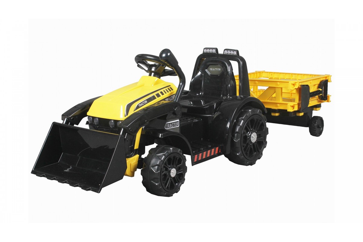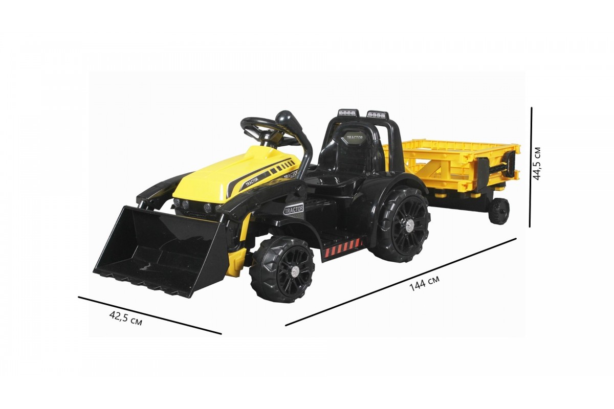 Детский электромобиль трактор с прицепом и механическим ковшом это идеальный транспорт для маленьких водителей до трех лет, имеет необычный дизайн и отличные характеристики для увлекательного катания на улице или дома.