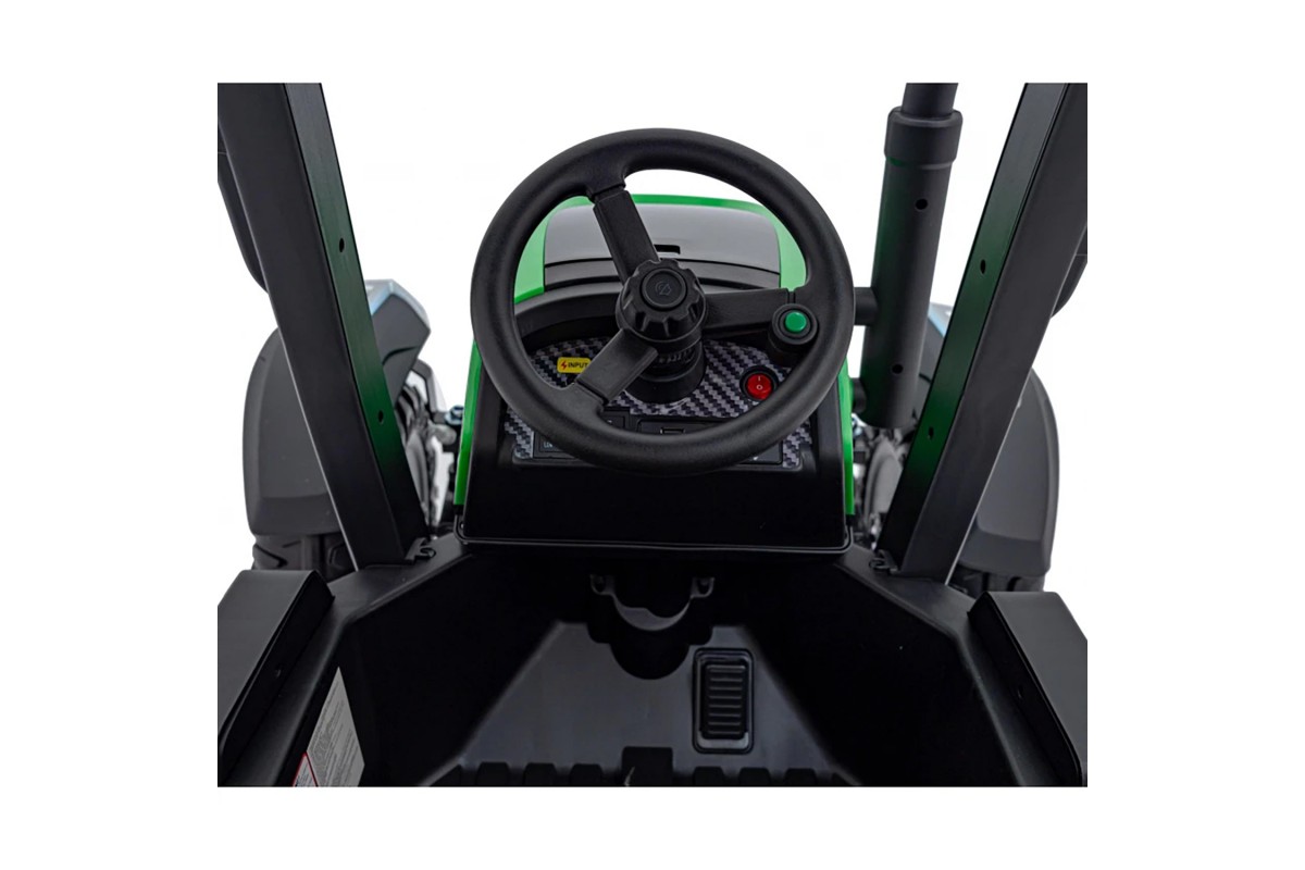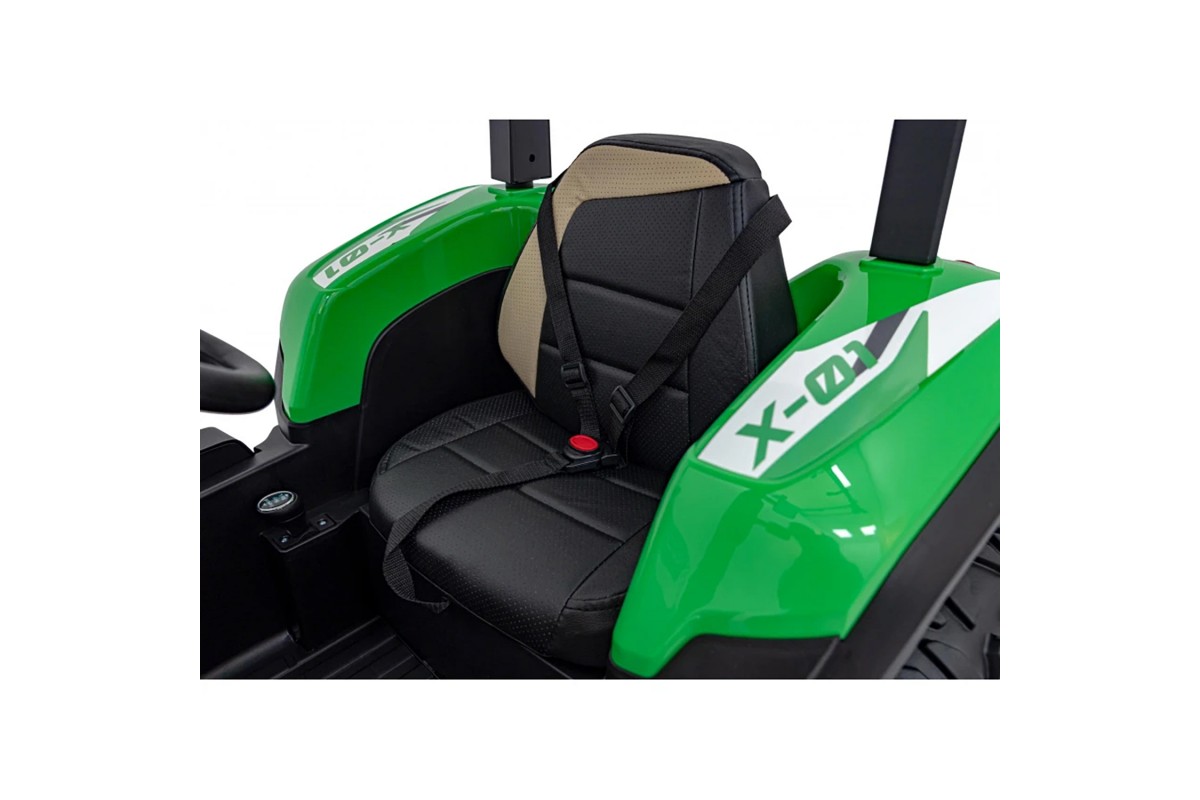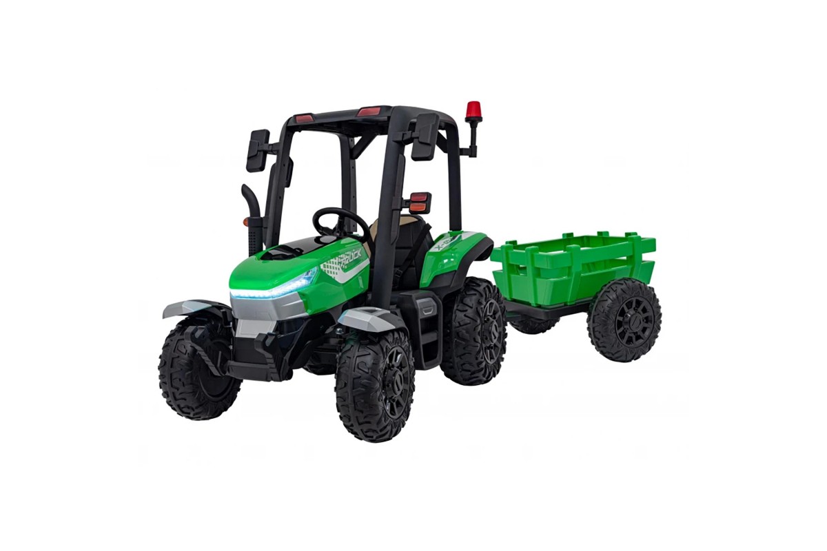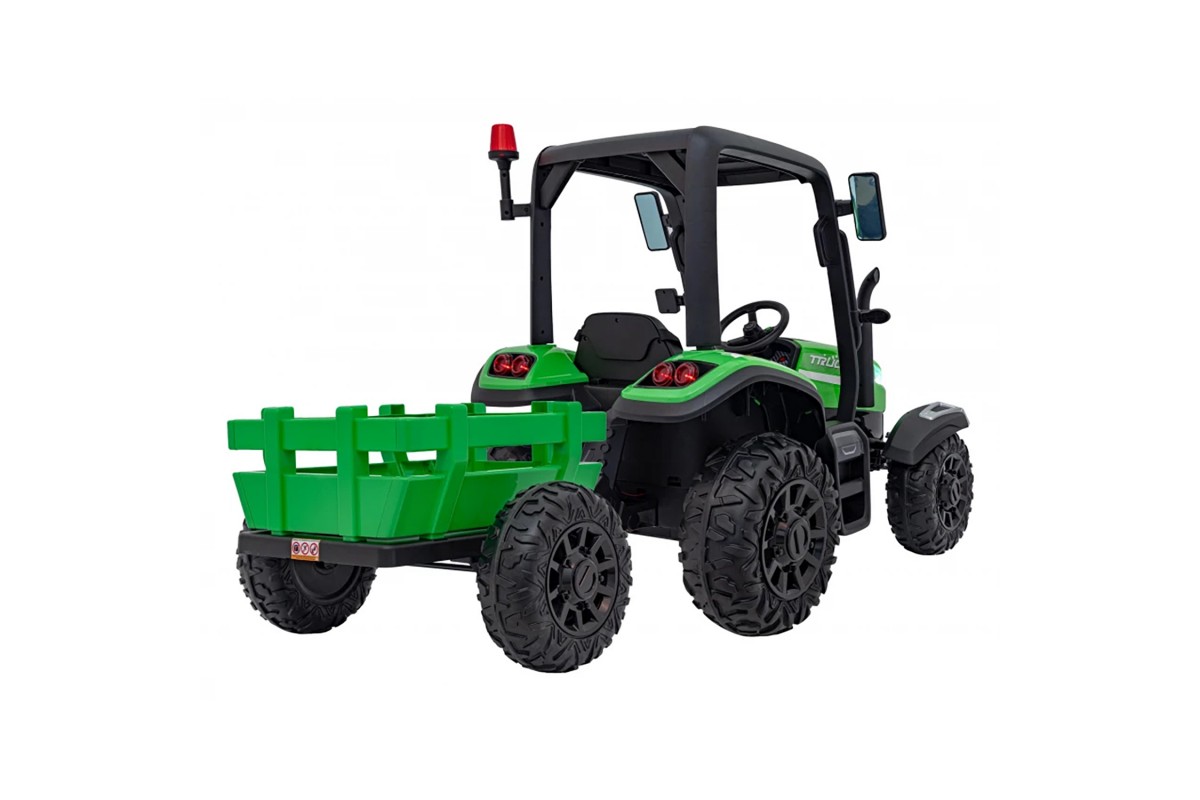 Детский электромобиль трактор с прицепом (зеленый, EVA, пульт, 24V) - BLT-206C-24V-GREEN - это мощный и очень реалистичный детский трактор с крышей и прицепом. Модель комплектуется легкосъемным аккумулятором, EVA колеса с приводом на два задние колеса, мощные моторы по 200 ватт каждый, предназначен для ребенка от 2 до 6 лет, который любит большую сельскохозяйственную технику.