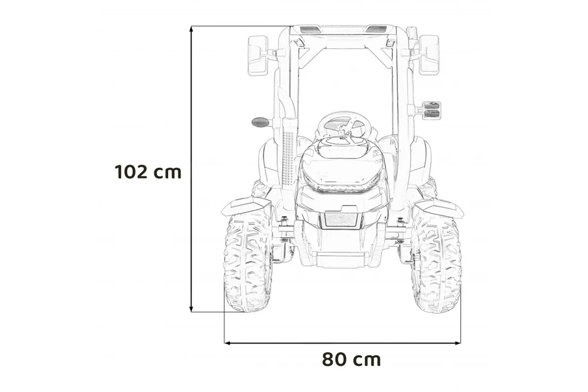 - Габариты трактора без прицепа: 119 см х 80 см х 102 см