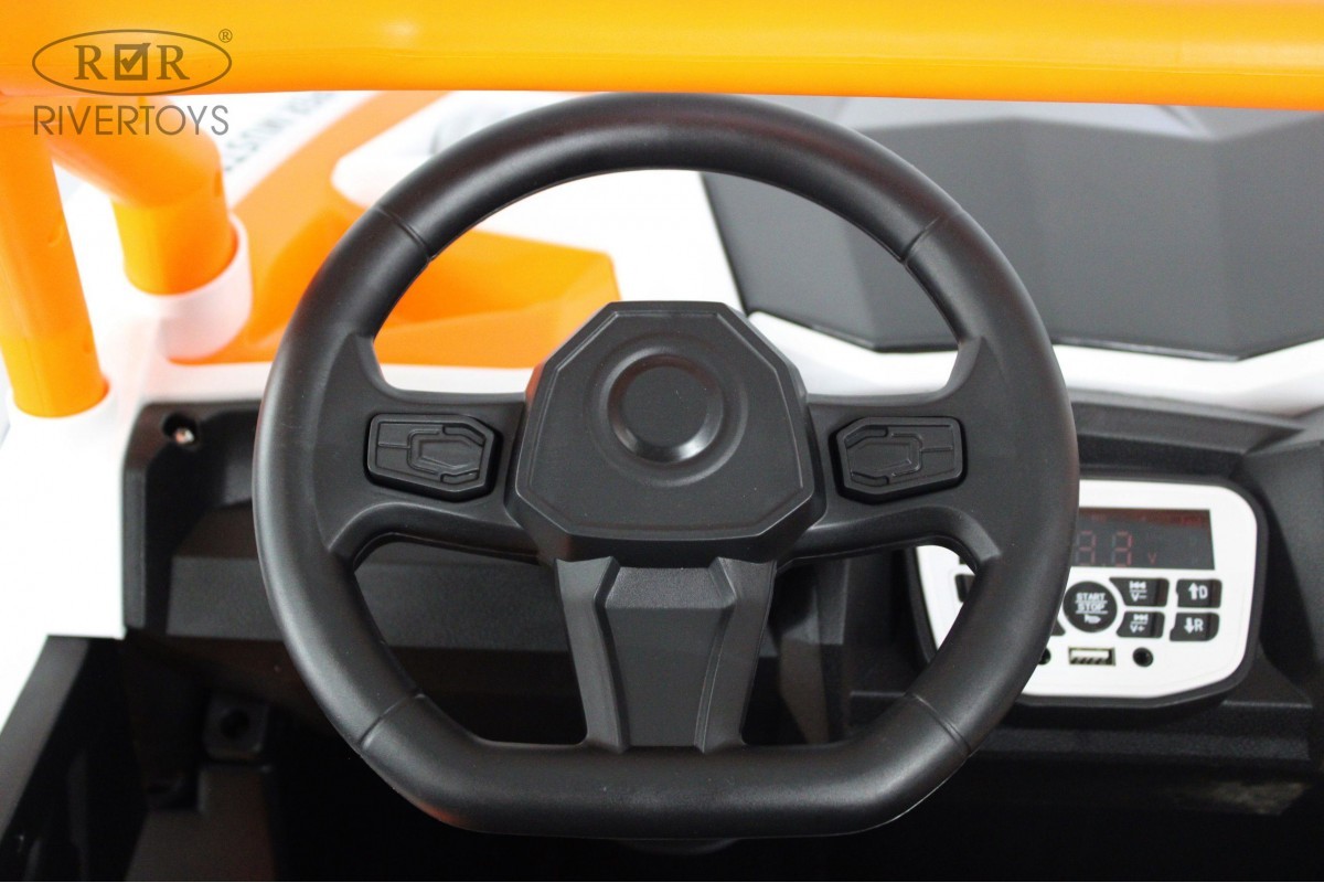 Особенности модели: багажник, откидываются верхние дуги, индикатор громкости звуковых эффектов на медиа-панели, открываются двери, фары на передней верхней дуге, подсветка дверных порогов, звуковой сигнал заднего хода