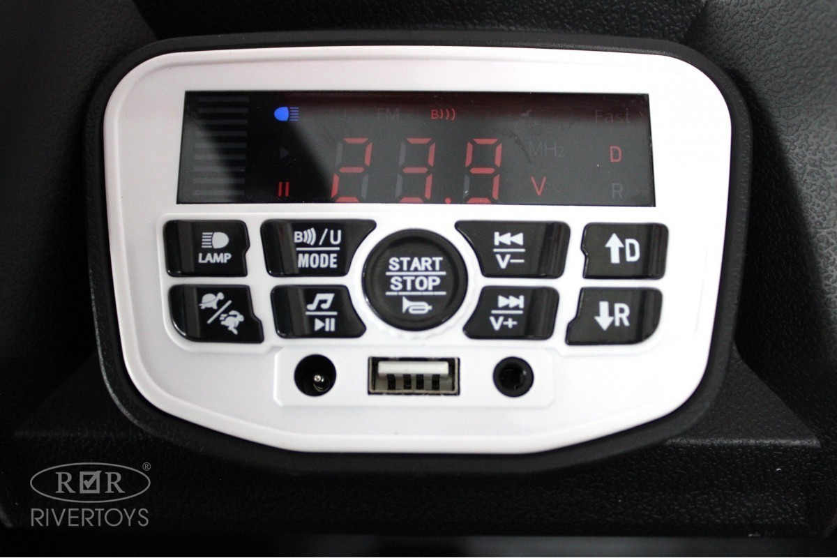 Особенности модели: багажник, откидываются верхние дуги, индикатор громкости звуковых эффектов на медиа-панели, открываются двери, фары на передней верхней дуге, подсветка дверных порогов, звуковой сигнал заднего хода