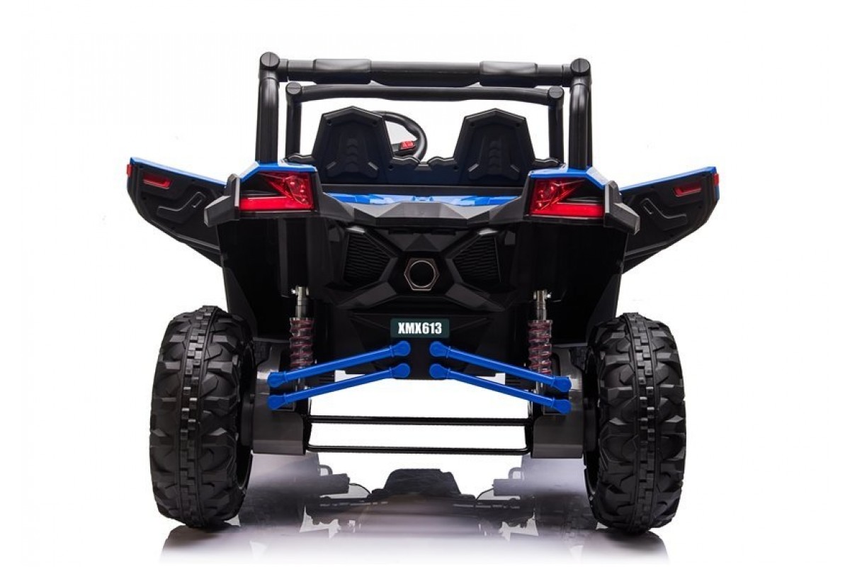 Детский электромобиль XMX Багги (синий, EVA, 4WD, 24V) - XMX613-4WD-24V-BLUE - это абсолютный лидер на рынке детских машинок в категории багги. Модель на столько необычная, мощная и стильная. Ваш юный водитель будет в абсолютном восторге от такого внедорожника! Buggy XMX613 современная модификация оснащенная мощным 24 вольтовым аккумулятором. На багги установлены 4 двигателя по 60 ватт каждый, благодаря которым модель может с лёгкостью будут преодолевать дорожные неровности и катать малыша с ветерком. Особенностью модели является более высокая скорость движения, модель разгоняется примерно до 9 км/ч и особенно будет интересна уж опытным в вождении малышам, или смелым и активным водителям. Buggy XMX613 имеет полную амортизацию подвески, на каждую колесную ось, высокий клиренс и все необходимое для комфортной езды. Так же в модели продумана кучка для транспортировки реализованная в виде ленты. Купив такой электромобиль Вы и Ваш малыш получите неописуемое удовольствие, и абсолютно точно Buggy XMX613 будет радовать Вас не один год!