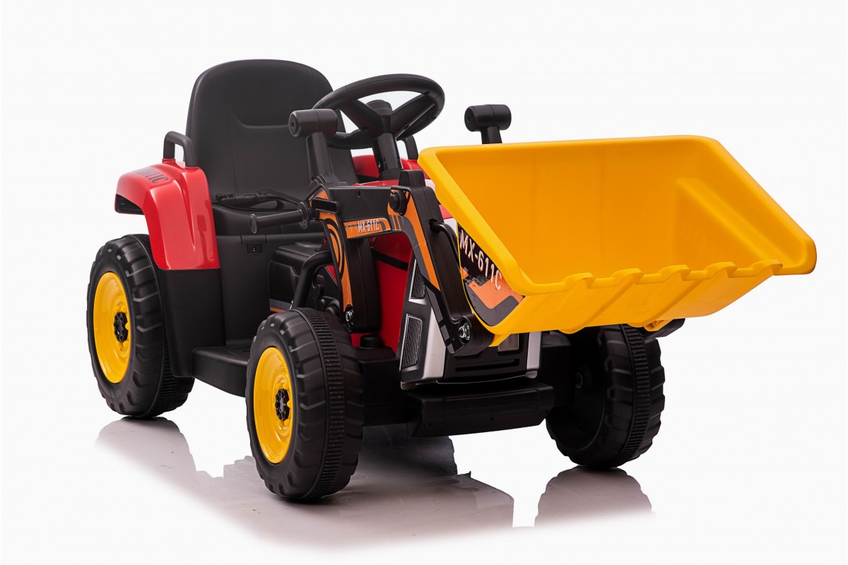Детский электромобиль XMX трактор с ковшом (красный, EVA, пульт, 12V) - XMX611U-RED - это электрический трактор с прицепом для детей от 2-х до 5-ти лет. Данная модель оборудована двумя двигателями по 45W, имеет надежную батарею 12V7AH и пульт дистанционного управления. Модель отличается наличием ковша с механическим приводом, а также невероятно реалистичным звуком запуска двигателя при включении. Заводится с кнопки. На приборной панели установлена магнитола, есть разъем для USB, MP3. Колеса резиновые EVA, сидение мягкое. Транспорт плавно разгоняется до 7 км/ч. Скорость переключается рычагом. Представлен в разных цветовых решениях.
