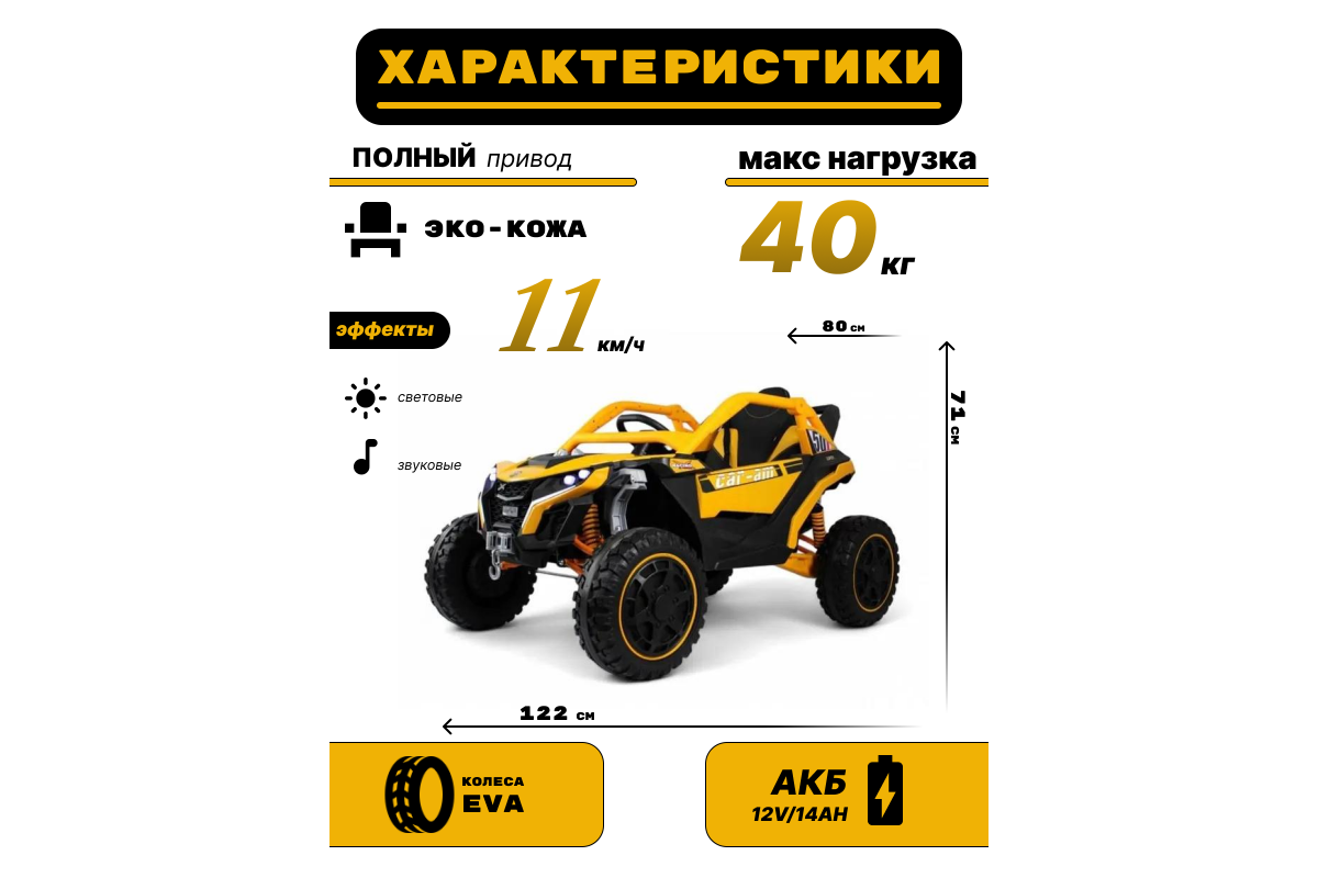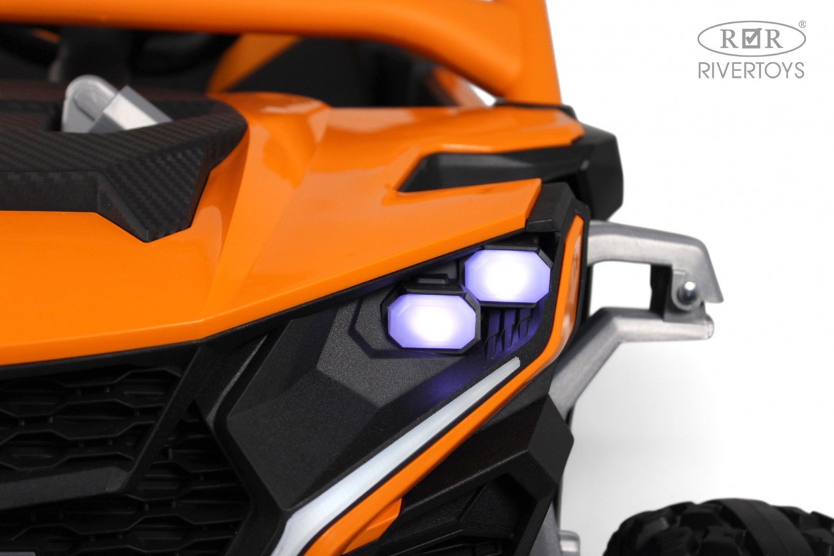 Багги имеет обширный функционал, который сделает незабываемыми, впечатления юного гонщика. Машинка умеет разгонятся до 11 км/ч., за счёт двигателей, встроенных прямо в колеса. Скорость регулируется как с пульта д.у., так и с торпеды авто, специальным переключателем. Имеется педаль газа и педаль тормоза. Остановить машинку можно с пульта, или же отпустив педаль газа, при этом педаль тормоза можно не использовать, она больше нужна для развития навыков управления у малыша.
