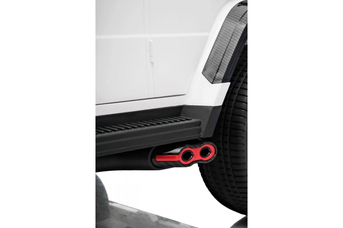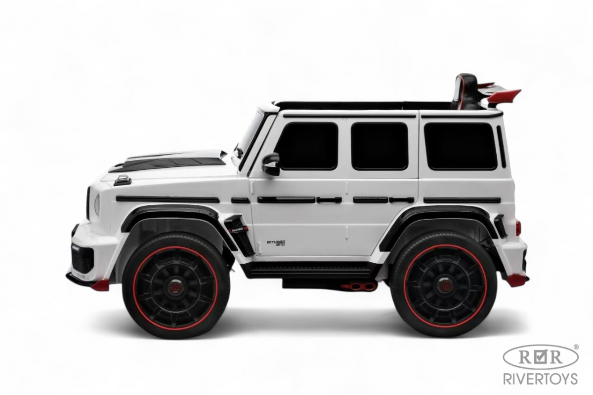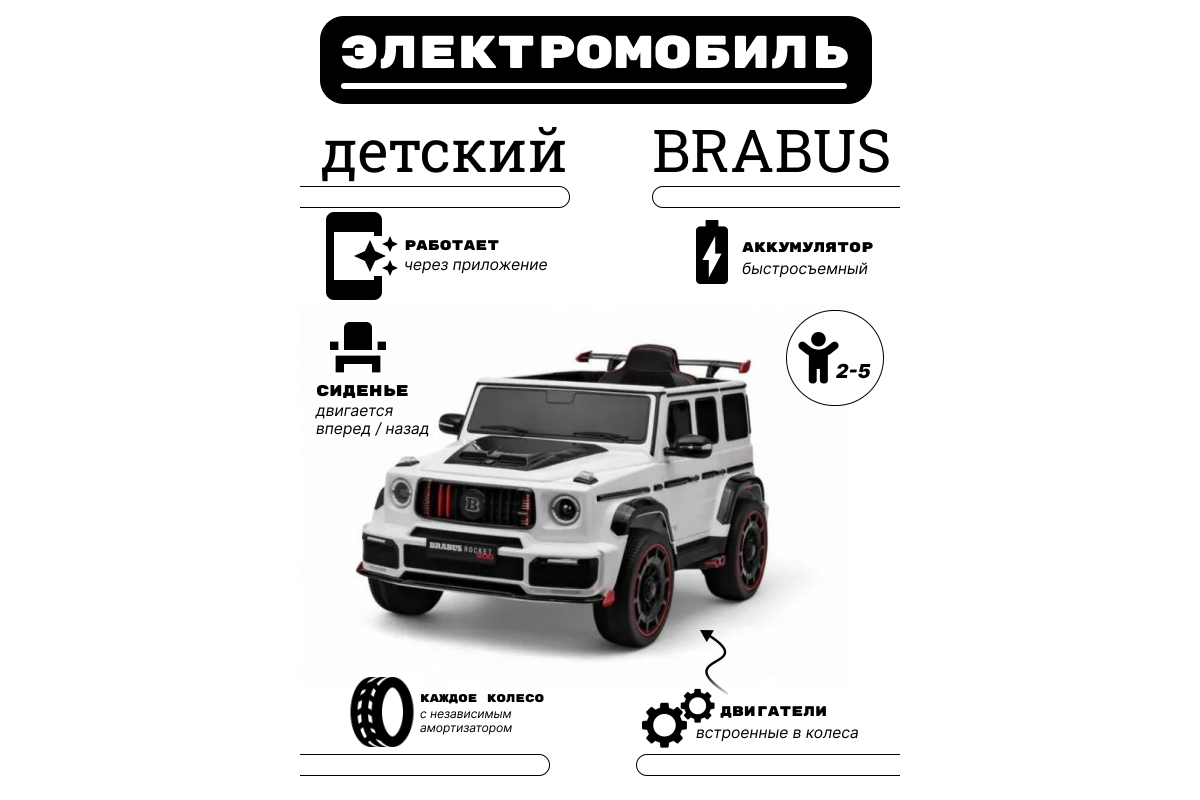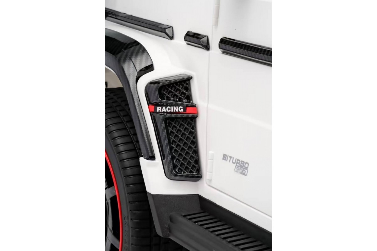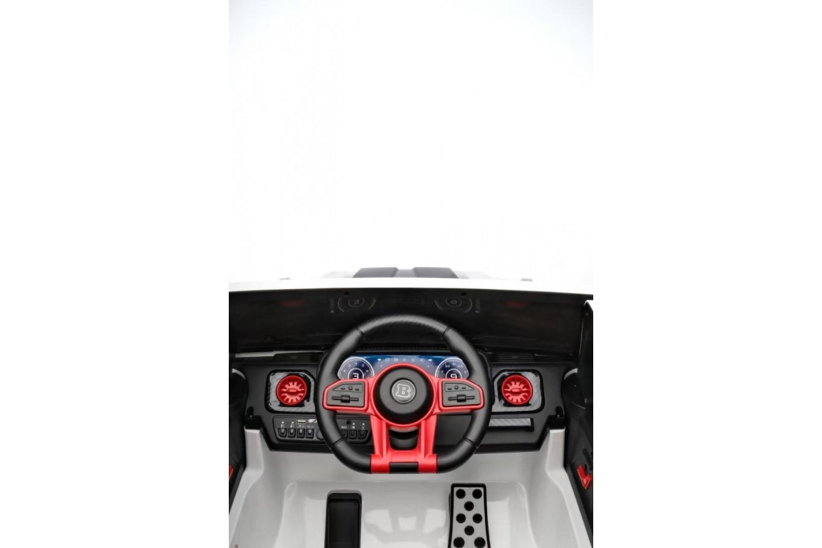 Особенности модели: переключение 2WD/4WD (Отдельная кнопка на медиа-панели. При переключении 2WD, передние колеса движутся свободным ходом), управление с телефона с отдельного приложения (скачать можно по QR коду), карбоновые вставки, педаль тормоза, карбоновый спойлер, подсветка приборной панели, открывается капот, индикатор напряжения аккумулятора , регулируемое, широкое сиденье под рост ребенка ,принцип чемодана, открываются двери