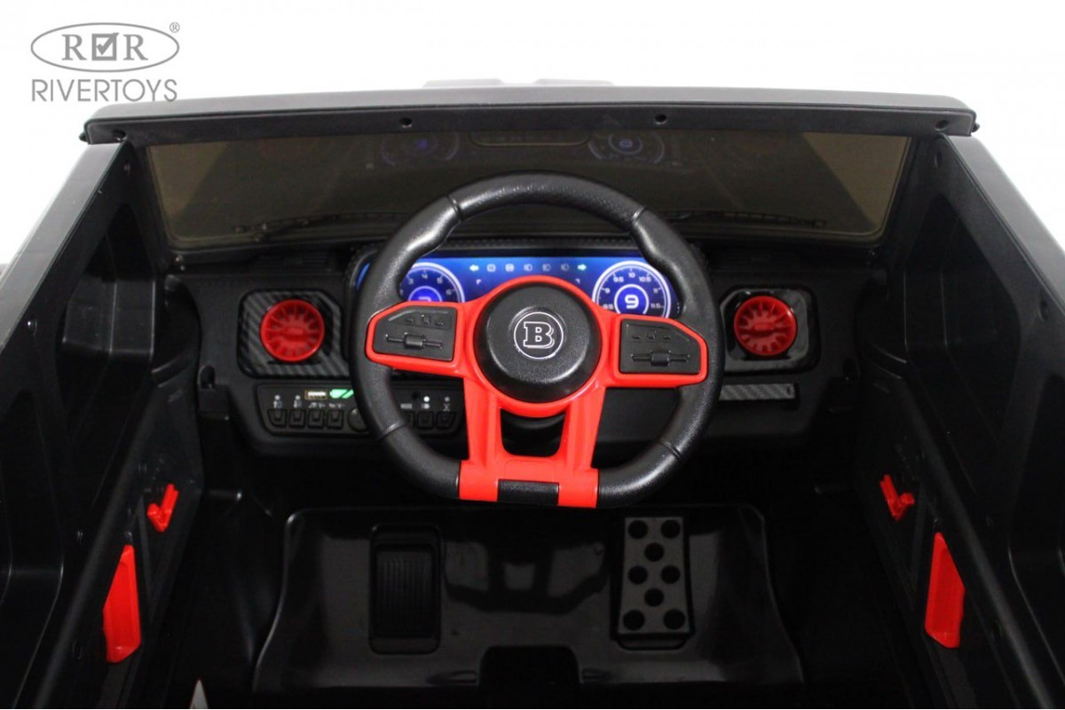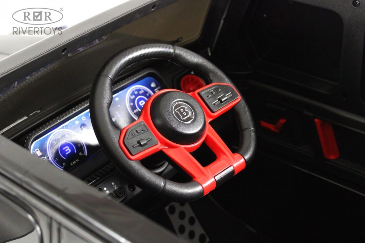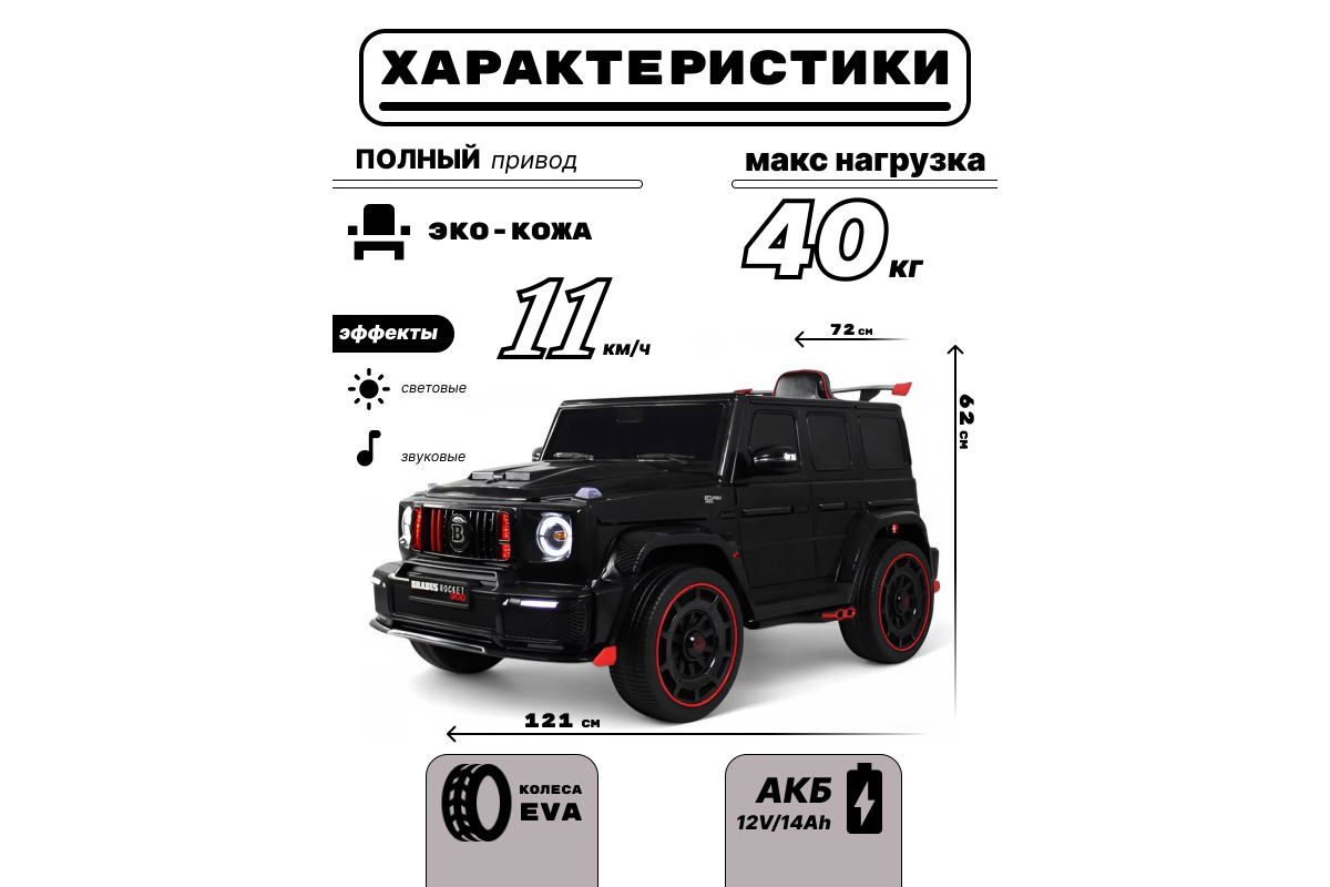 Особенности модели: переключение 2WD/4WD (Отдельная кнопка на медиа-панели. При переключении 2WD, передние колеса движутся свободным ходом), управление с телефона с отдельного приложения (скачать можно по QR коду), карбоновые вставки, педаль тормоза, карбоновый спойлер, подсветка приборной панели, открывается капот, индикатор напряжения аккумулятора , регулируемое, широкое сиденье под рост ребенка ,принцип чемодана, открываются двери