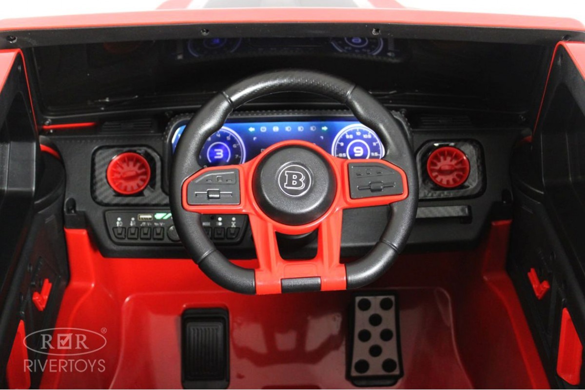 Особенности модели: переключение 2WD/4WD (Отдельная кнопка на медиа-панели. При переключении 2WD, передние колеса движутся свободным ходом), управление с телефона с отдельного приложения (скачать можно по QR коду), карбоновые вставки, педаль тормоза, карбоновый спойлер, подсветка приборной панели, открывается капот, индикатор напряжения аккумулятора , регулируемое, широкое сиденье под рост ребенка ,принцип чемодана, открываются двери