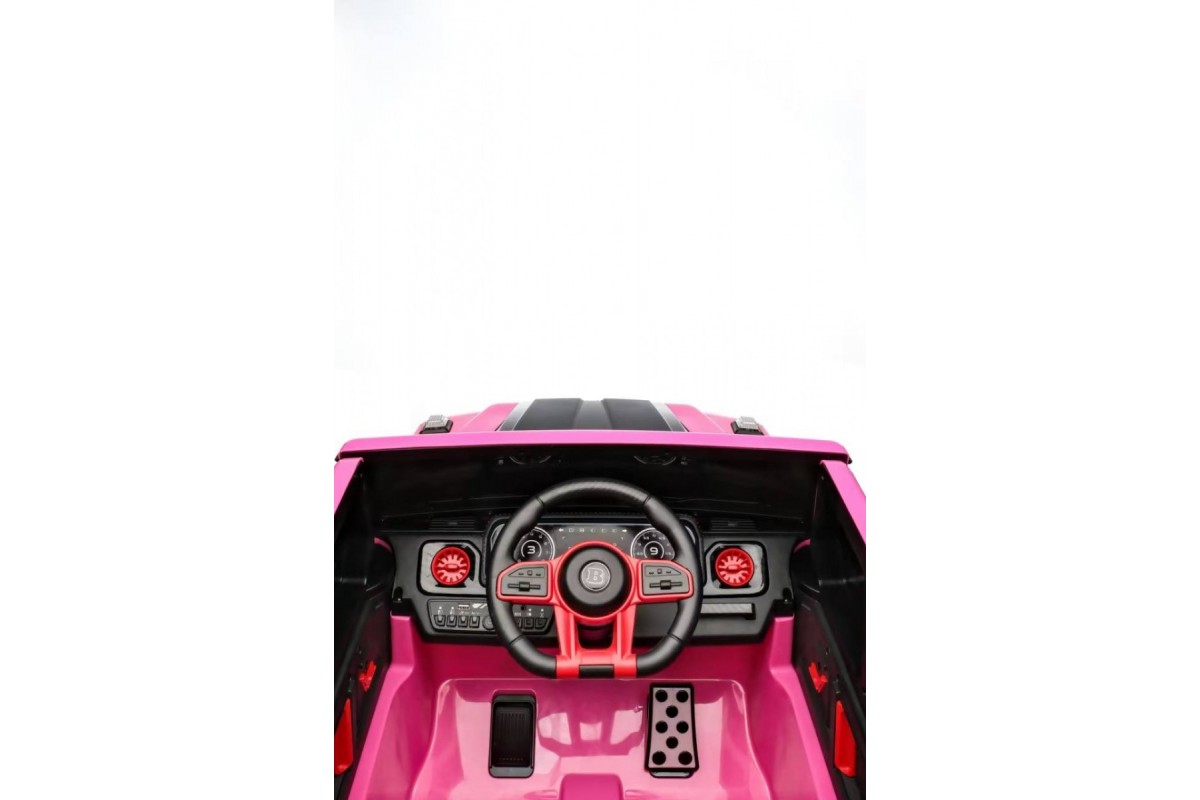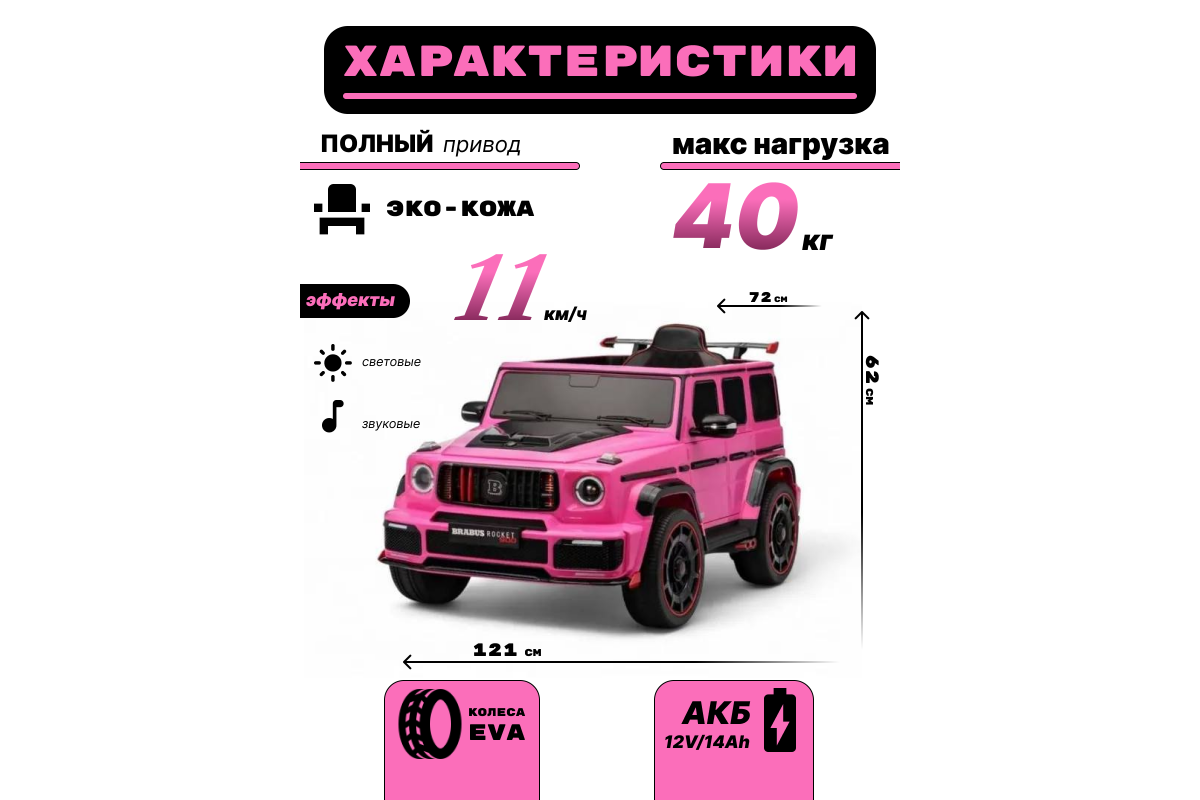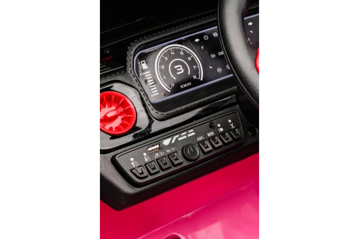 Особенности модели: переключение 2WD/4WD (Отдельная кнопка на медиа-панели. При переключении 2WD, передние колеса движутся свободным ходом), управление с телефона с отдельного приложения (скачать можно по QR коду), карбоновые вставки, педаль тормоза, карбоновый спойлер, подсветка приборной панели, открывается капот, индикатор напряжения аккумулятора , регулируемое, широкое сиденье под рост ребенка ,принцип чемодана, открываются двери