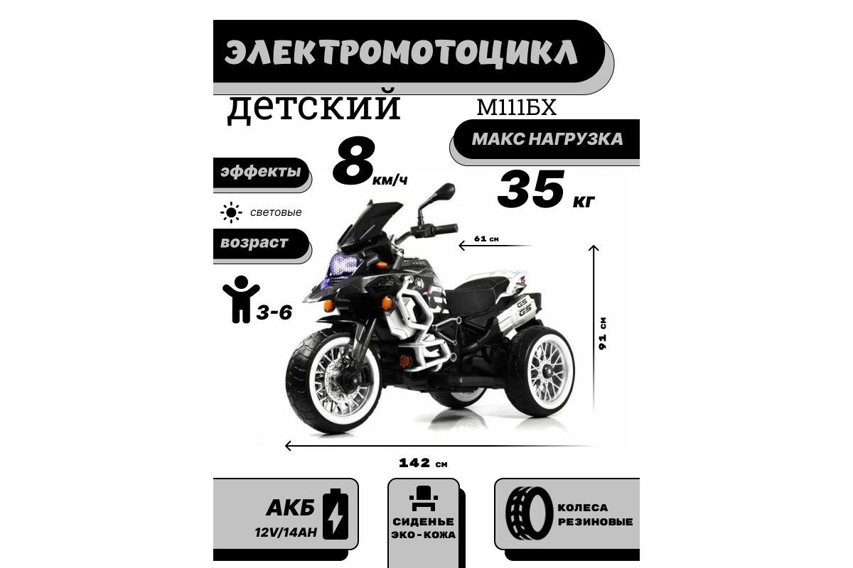 Детский электромотоцикл М111БХ