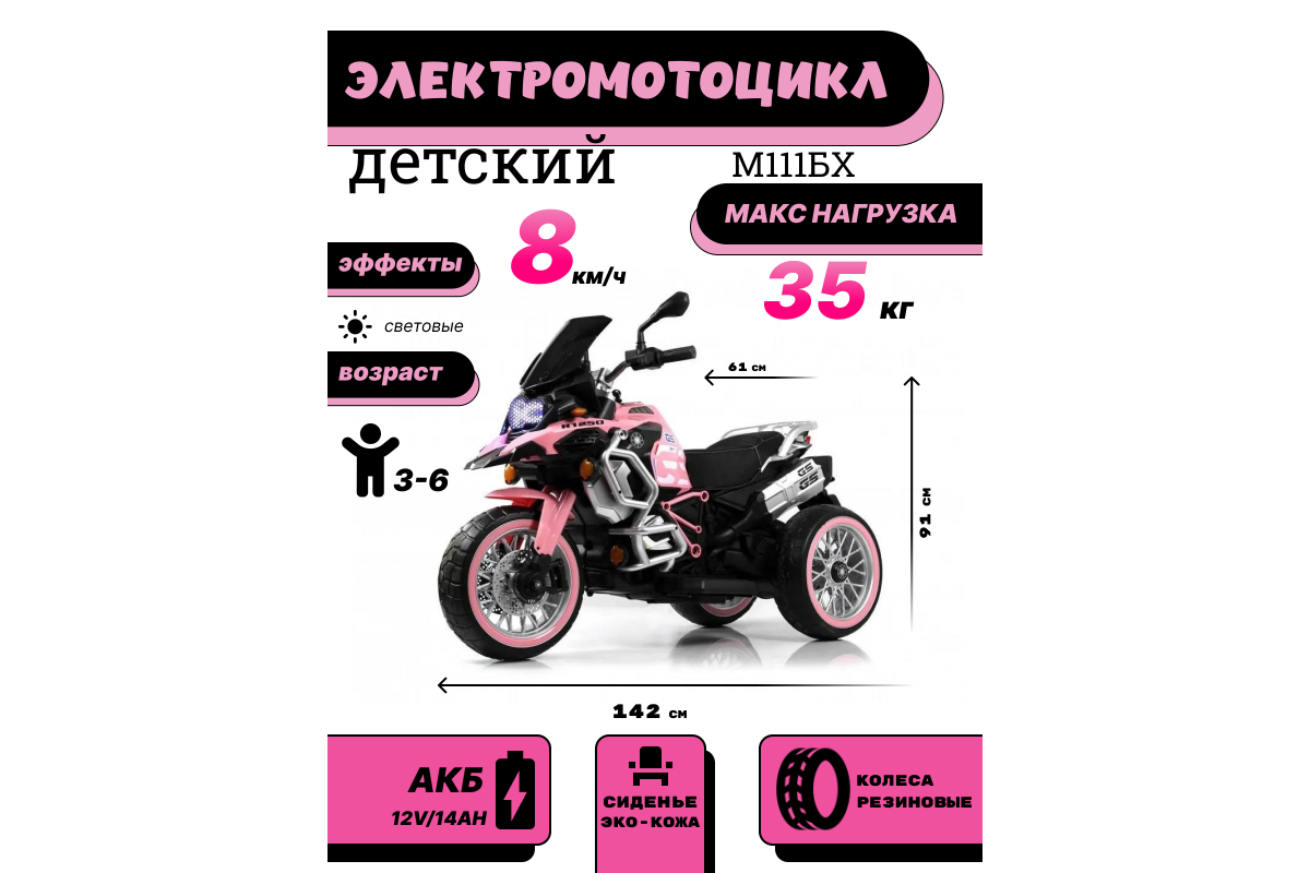 Детский электромотоцикл М111БХ