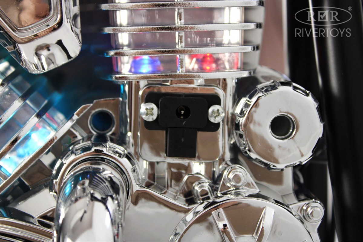 Особенности модели: металлический корпус, выдвижные подножки, подсветка с двух сторон на выхлопных трубах, подсветка на корпусе , ручной тормоз, металлическая подножка, спидометр на медиа-панели с подсветкой, мотор встроен в колесо