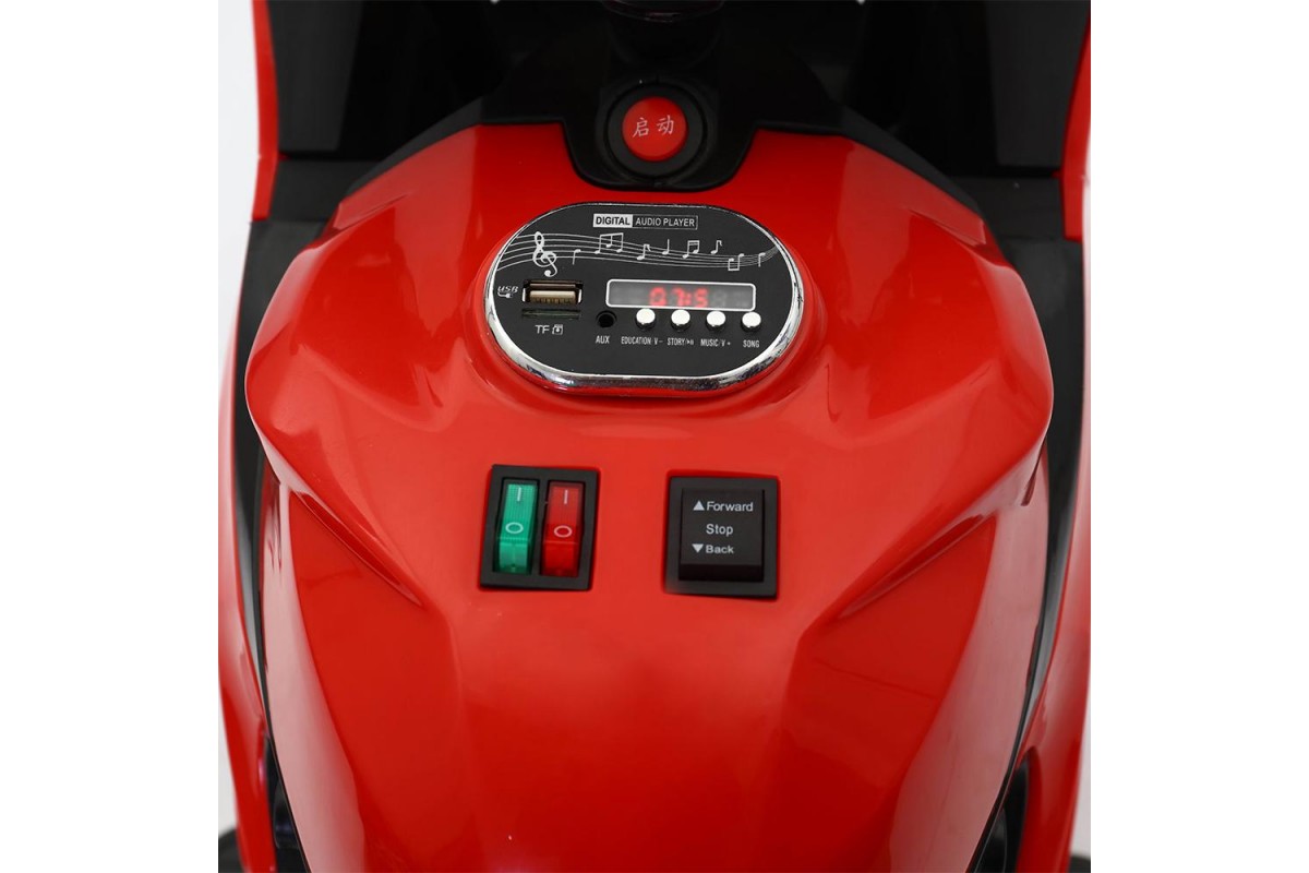 Детский электромотоцикл Ducati Red White 12V - FT-1628-RED-WHITE - это яркий спортивный электробайк с диодной подсветкой колес, фар, задних стопов и габаритных огней, несомненно, привлечет внимание, как детей, так и взрослых. Запоминающийся внешний вид дополнен отличным функционалом: два мотора по 18 Ватт, резиновые колеса для отличного сцепления с любым дорожным покрытием, каучуковые дополнительные боковые колесики для хорошей устойчивости, эргономичное сиденье из кожзама, амортизатор для комфортного катания, боковые зеркала и задние стопы из мягкого пластика, магнитола для прослушивания любимой музыки.