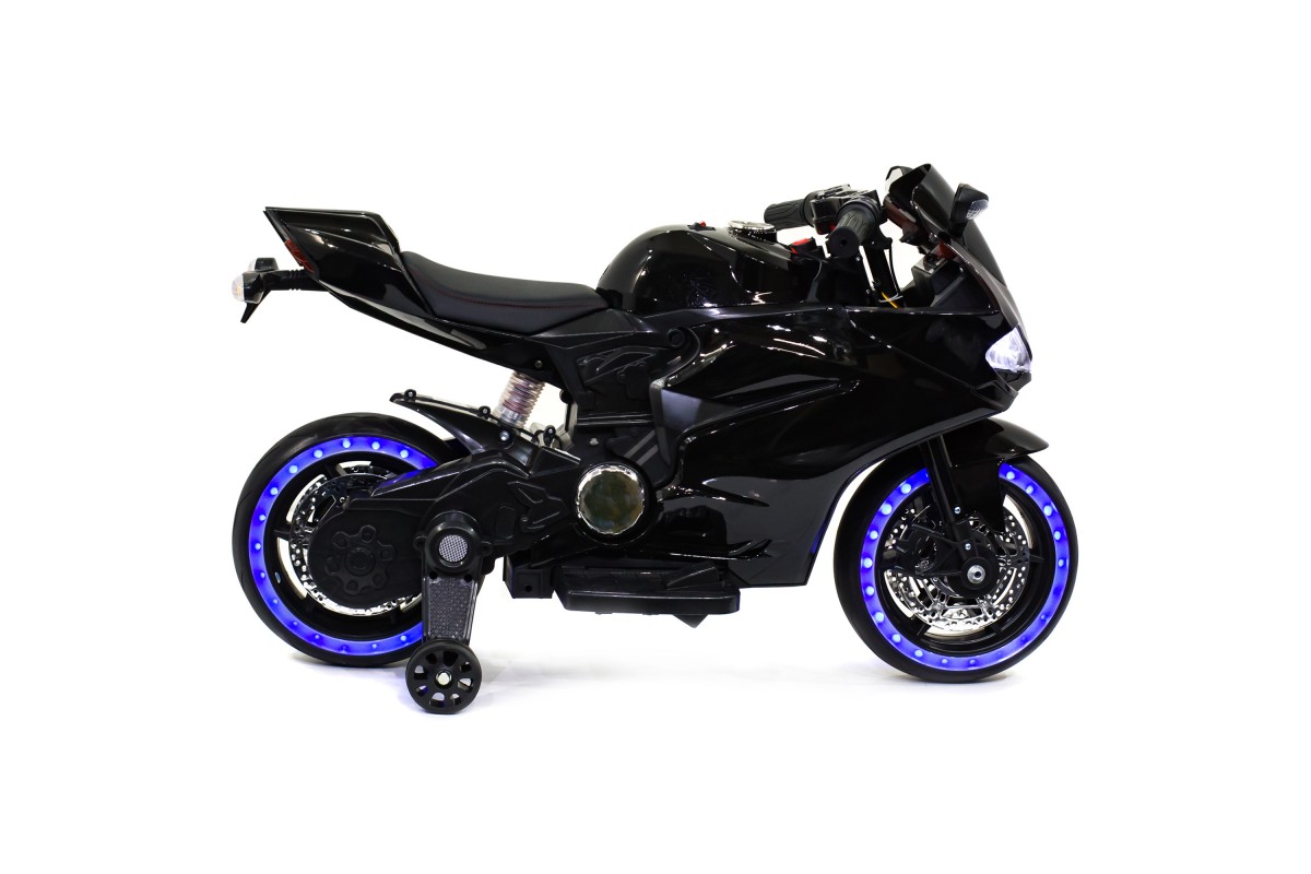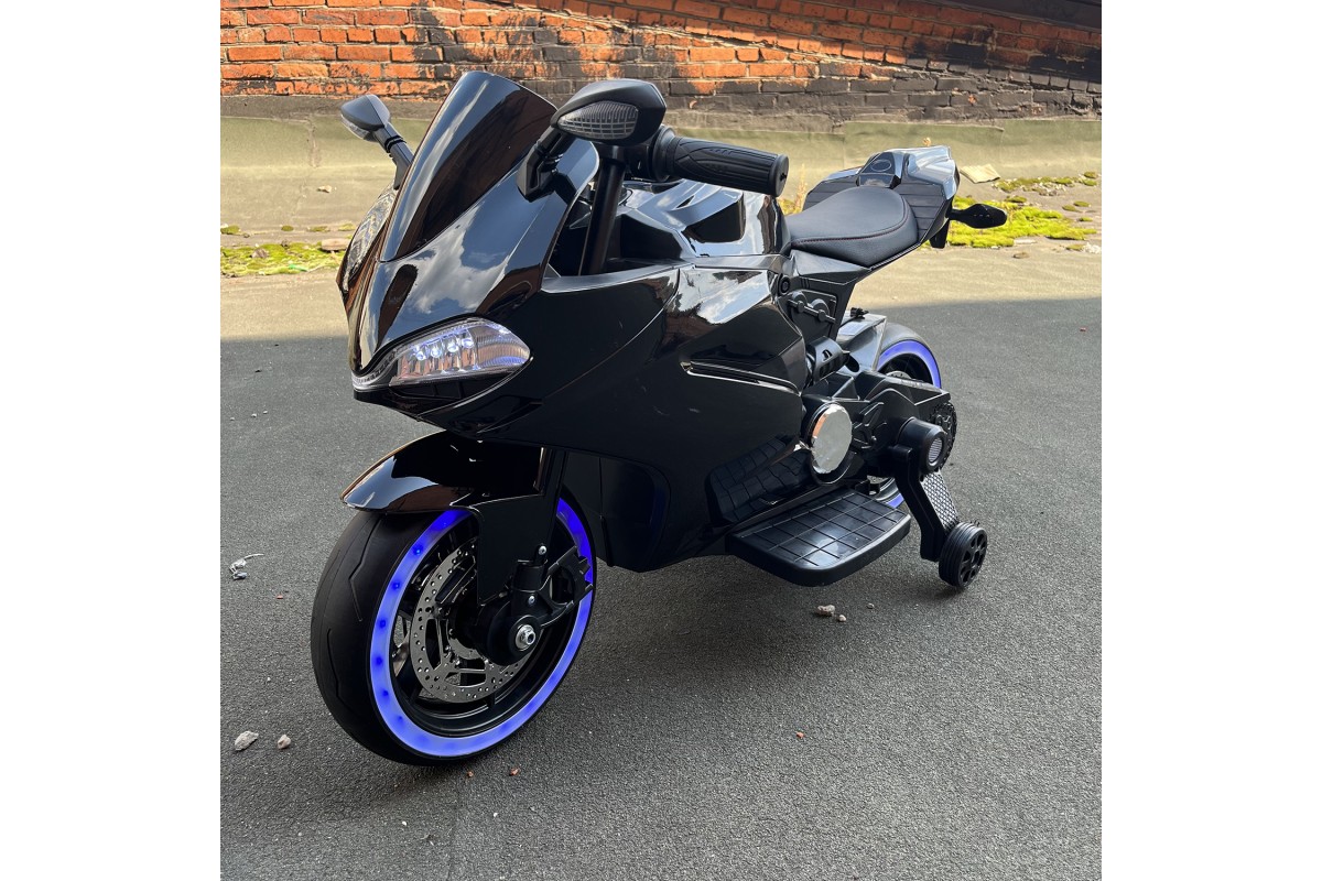 Детский электромотоцикл Ducati Blue (12V, EVA, ручка газа) - FT-1628-SP-BLUE - это яркий спортивный электробайк с диодной подсветкой колес, фар, задних стопов и габаритных огней, несомненно, привлечет внимание, как детей, так и взрослых. Запоминающийся внешний вид дополнен отличным функционалом: два мотора по 18 Ватт, резиновые колеса для отличного сцепления с любым дорожным покрытием, каучуковые дополнительные боковые колесики для хорошей устойчивости, эргономичное сиденье из кожзама, амортизатор для комфортного катания, боковые зеркала и задние стопы из мягкого пластика, магнитола для прослушивания любимой музыки.