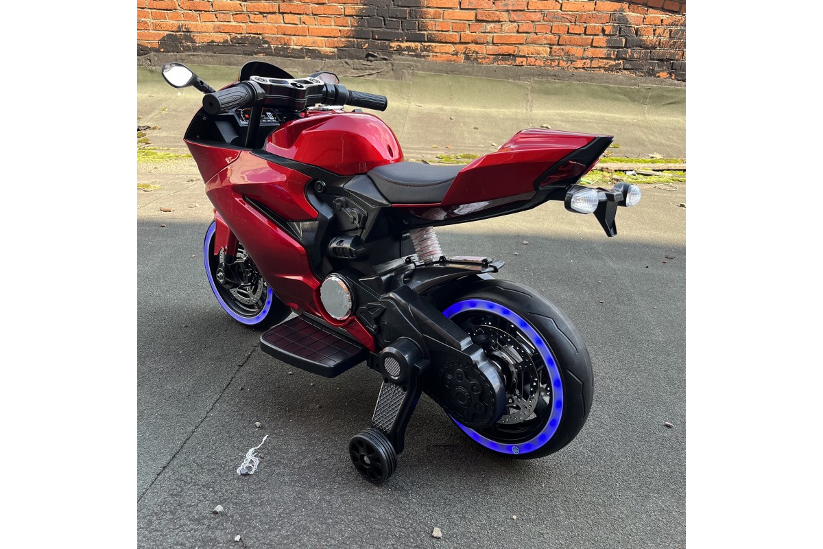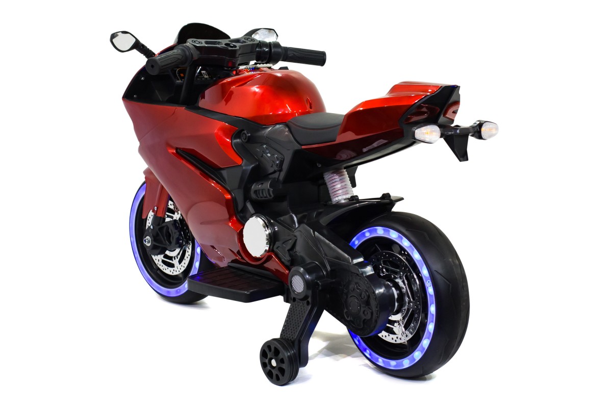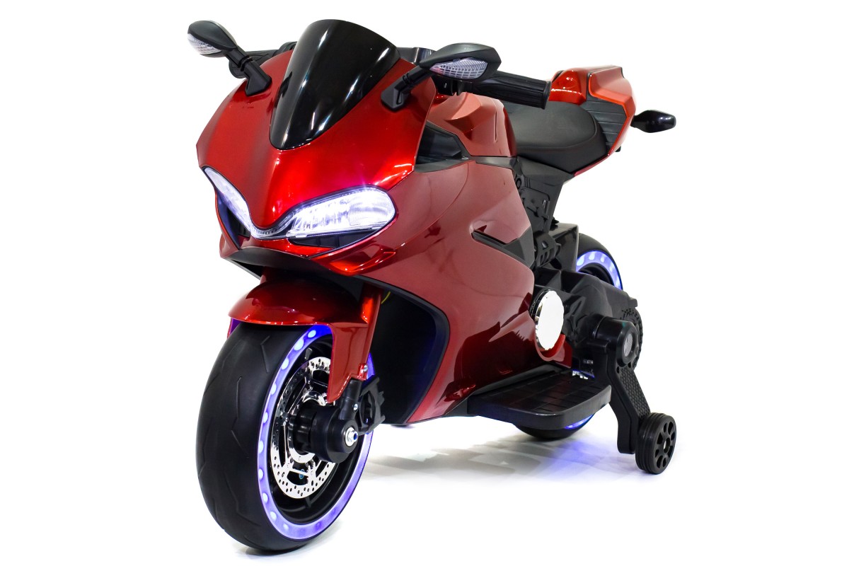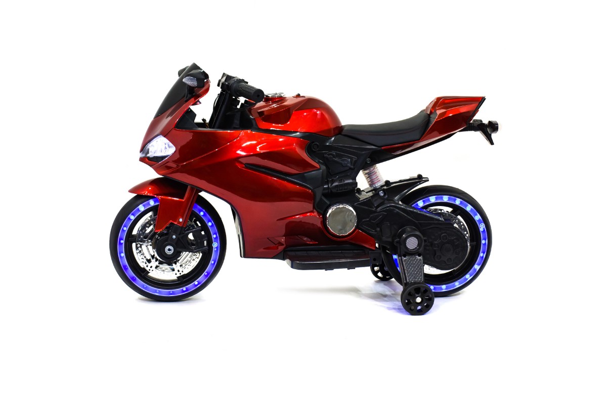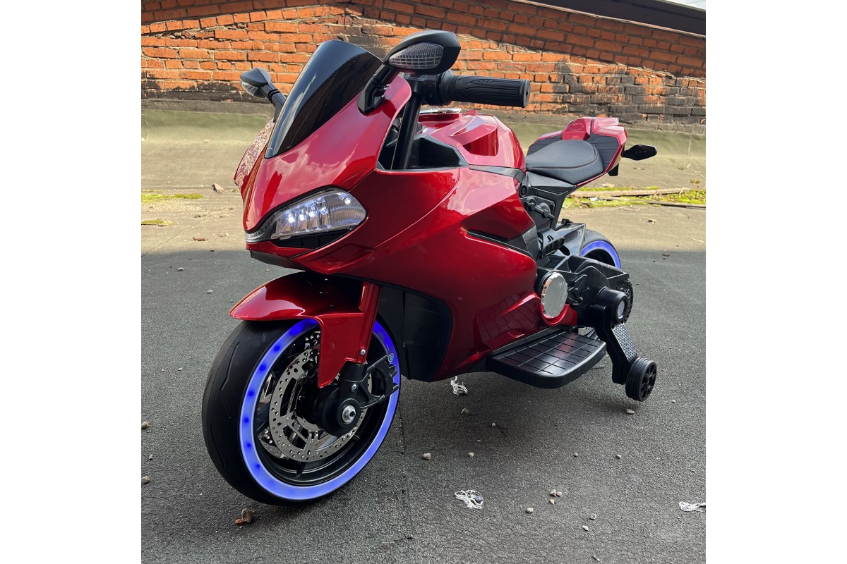 Детский электромотоцикл Ducati Red (12V, EVA, ручка газа) - FT-1628-SP-RED - это яркий спортивный электробайк с диодной подсветкой колес, фар, задних стопов и габаритных огней, несомненно, привлечет внимание, как детей, так и взрослых. Запоминающийся внешний вид дополнен отличным функционалом: два мотора по 18 Ватт, резиновые колеса для отличного сцепления с любым дорожным покрытием, каучуковые дополнительные боковые колесики для хорошей устойчивости, эргономичное сиденье из кожзама, амортизатор для комфортного катания, боковые зеркала и задние стопы из мягкого пластика, магнитола для прослушивания любимой музыки.