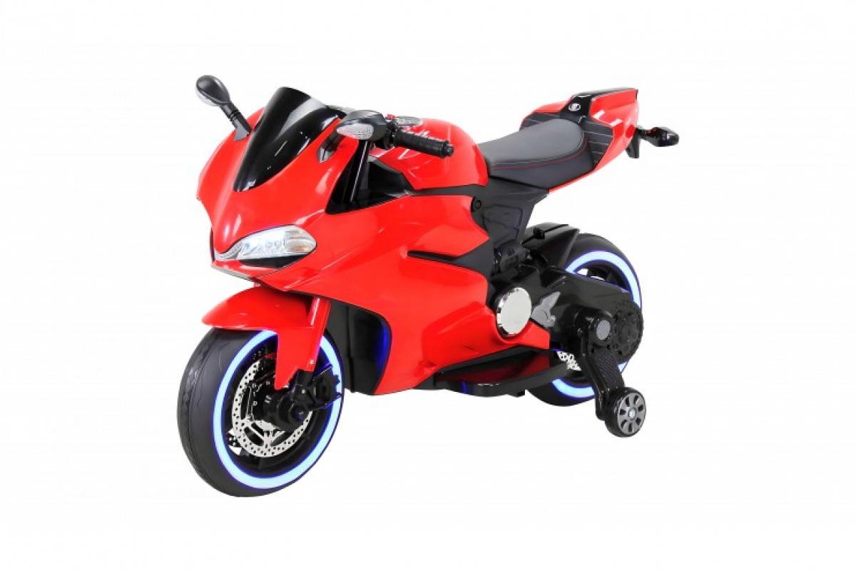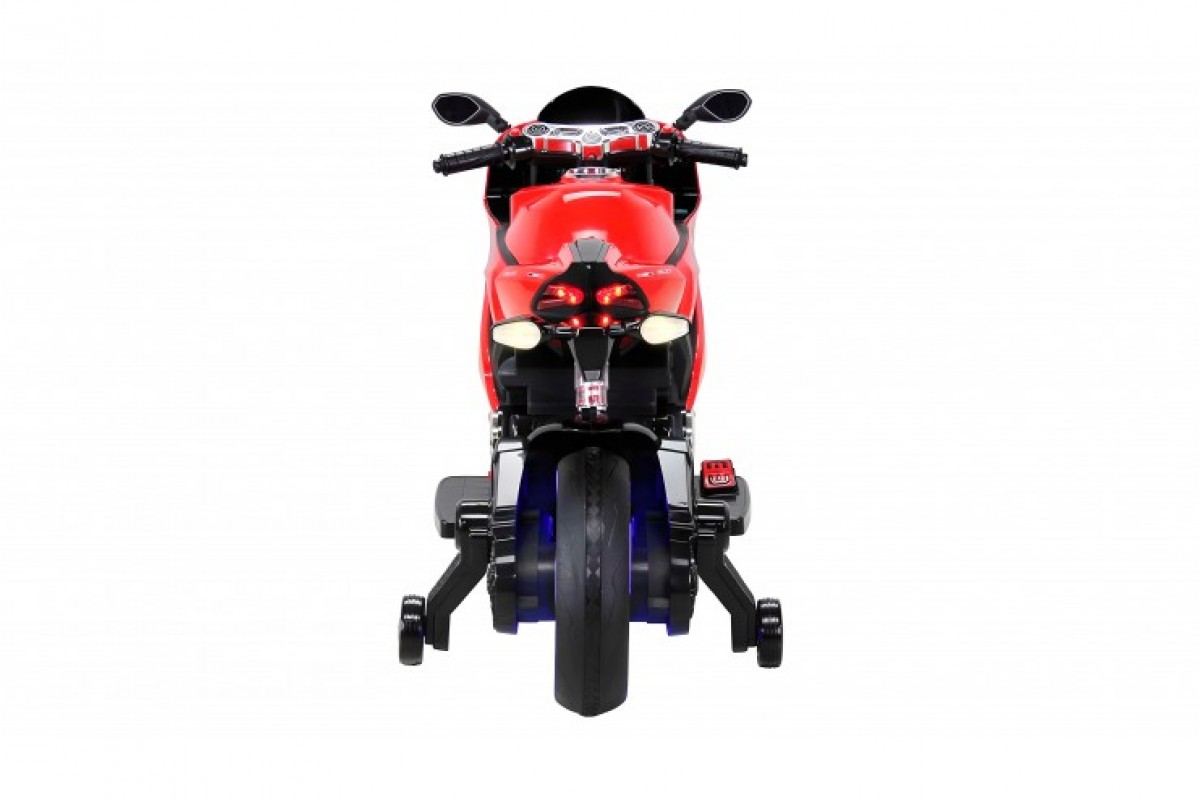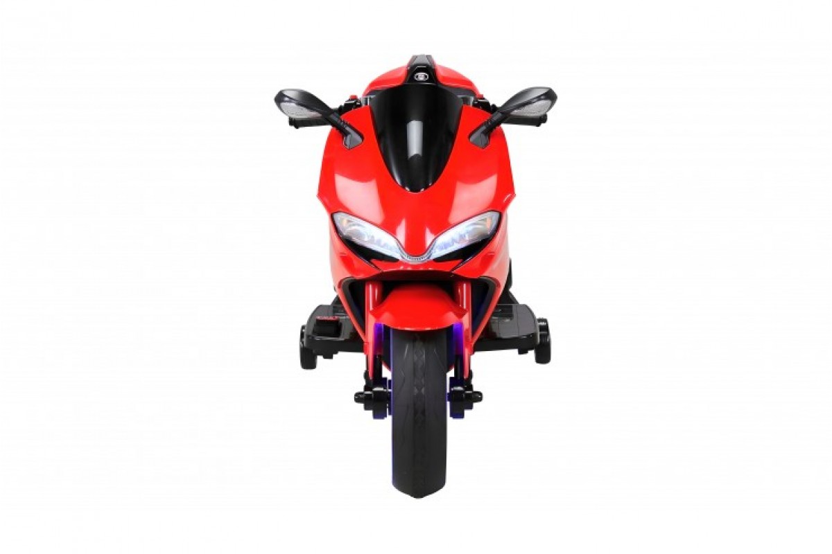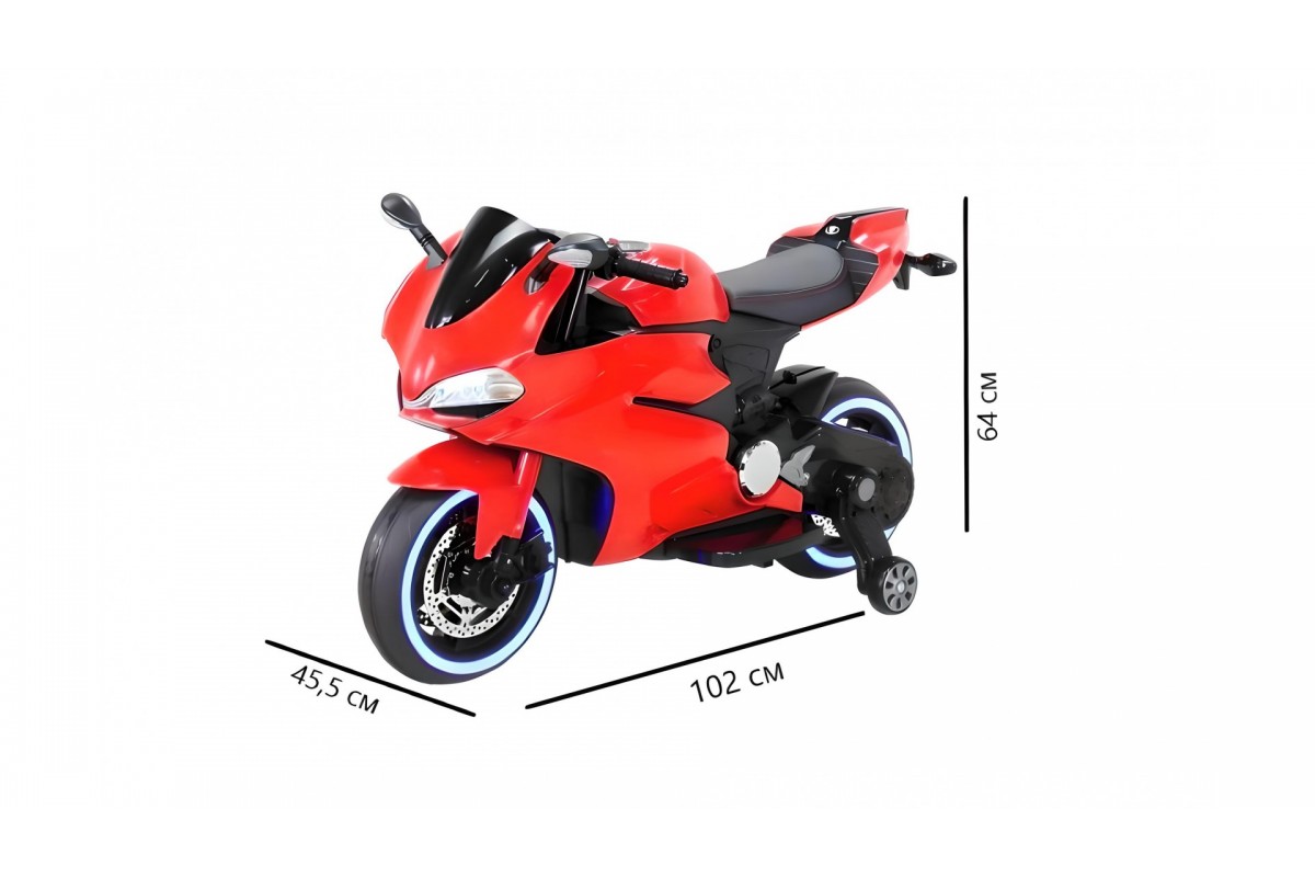 Спортивный электромотоцикл с эффектной подсветкой колес, светом фар и задних фонарей, обязательно привлечет внимание, как детей, так и взрослых.