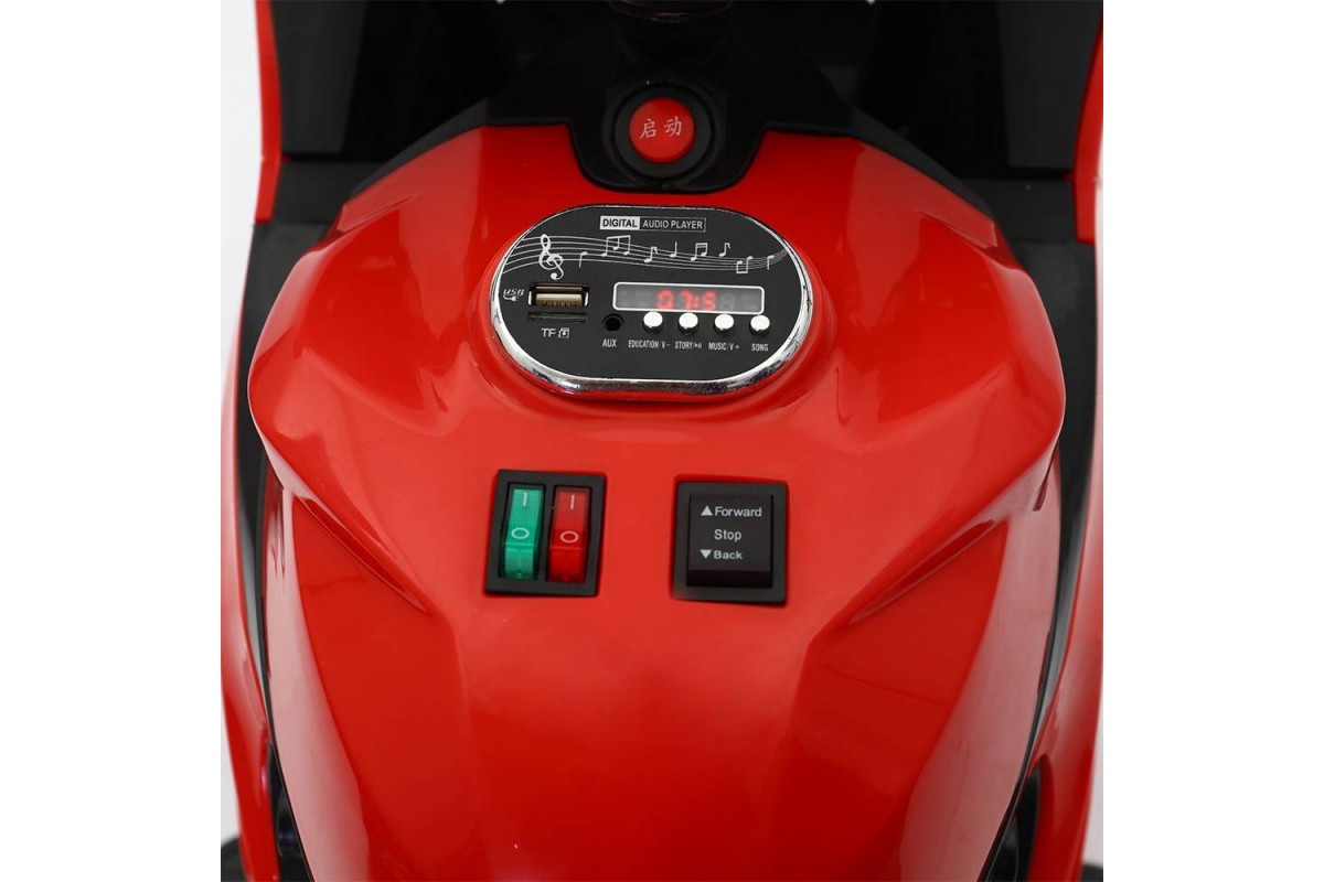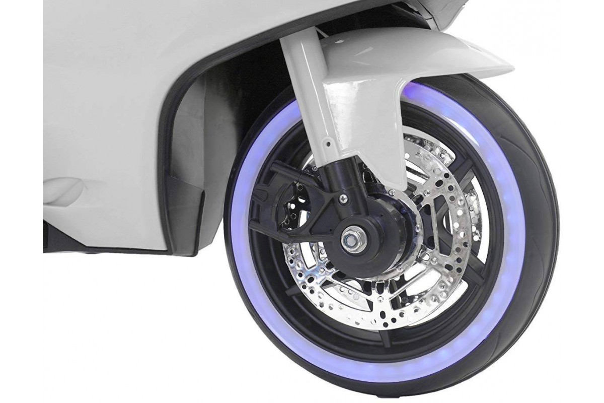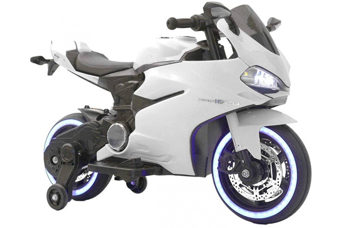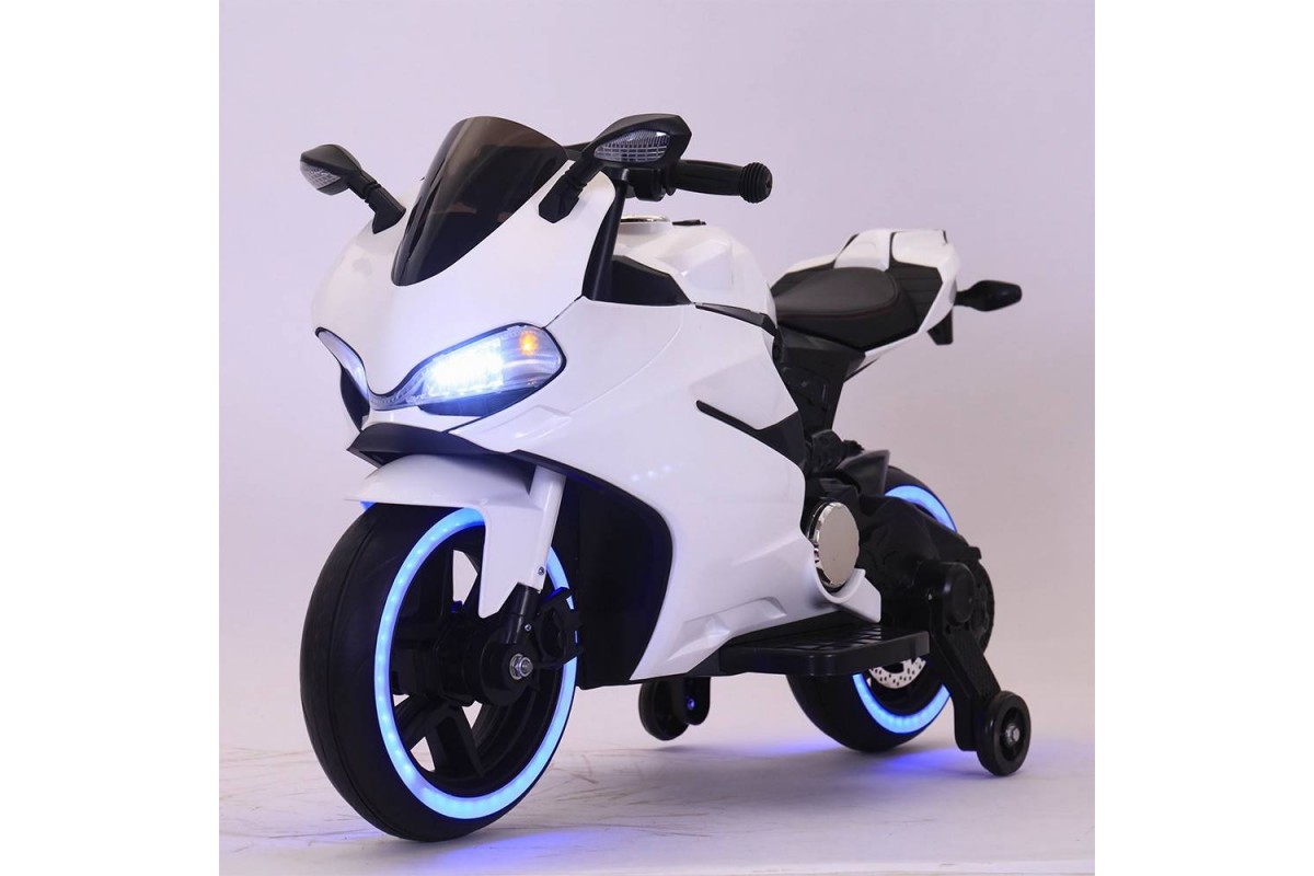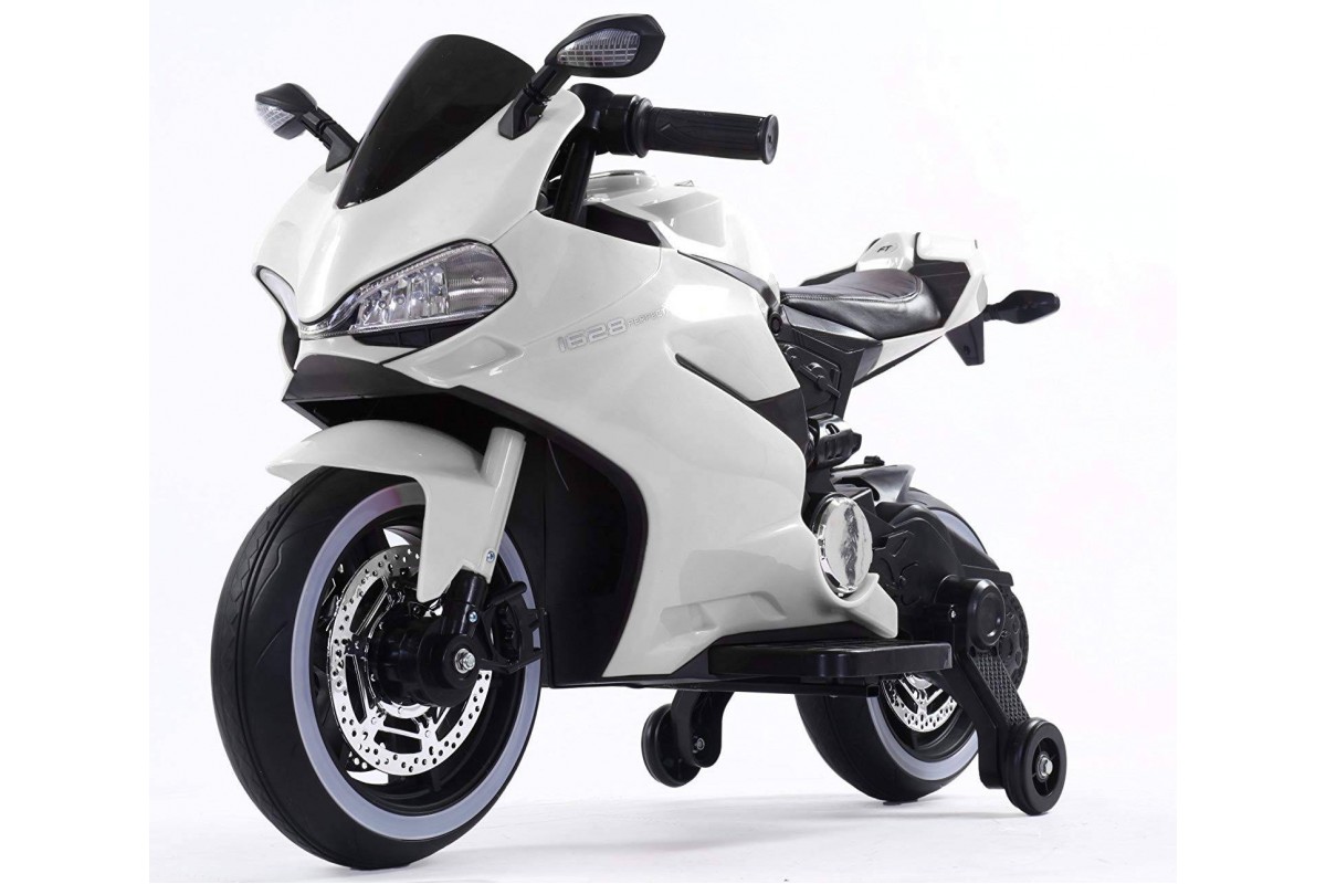 Детский электромотоцикл Ducati White 12V - FT-1628-WHITE - это яркий спортивный электробайк с диодной подсветкой колес, фар, задних стопов и габаритных огней, несомненно, привлечет внимание, как детей, так и взрослых. Запоминающийся внешний вид дополнен отличным функционалом: два мотора по 18 Ватт, резиновые колеса для отличного сцепления с любым дорожным покрытием, каучуковые дополнительные боковые колесики для хорошей устойчивости, эргономичное сиденье из кожзама, амортизатор для комфортного катания, боковые зеркала и задние стопы из мягкого пластика, магнитола для прослушивания любимой музыки.