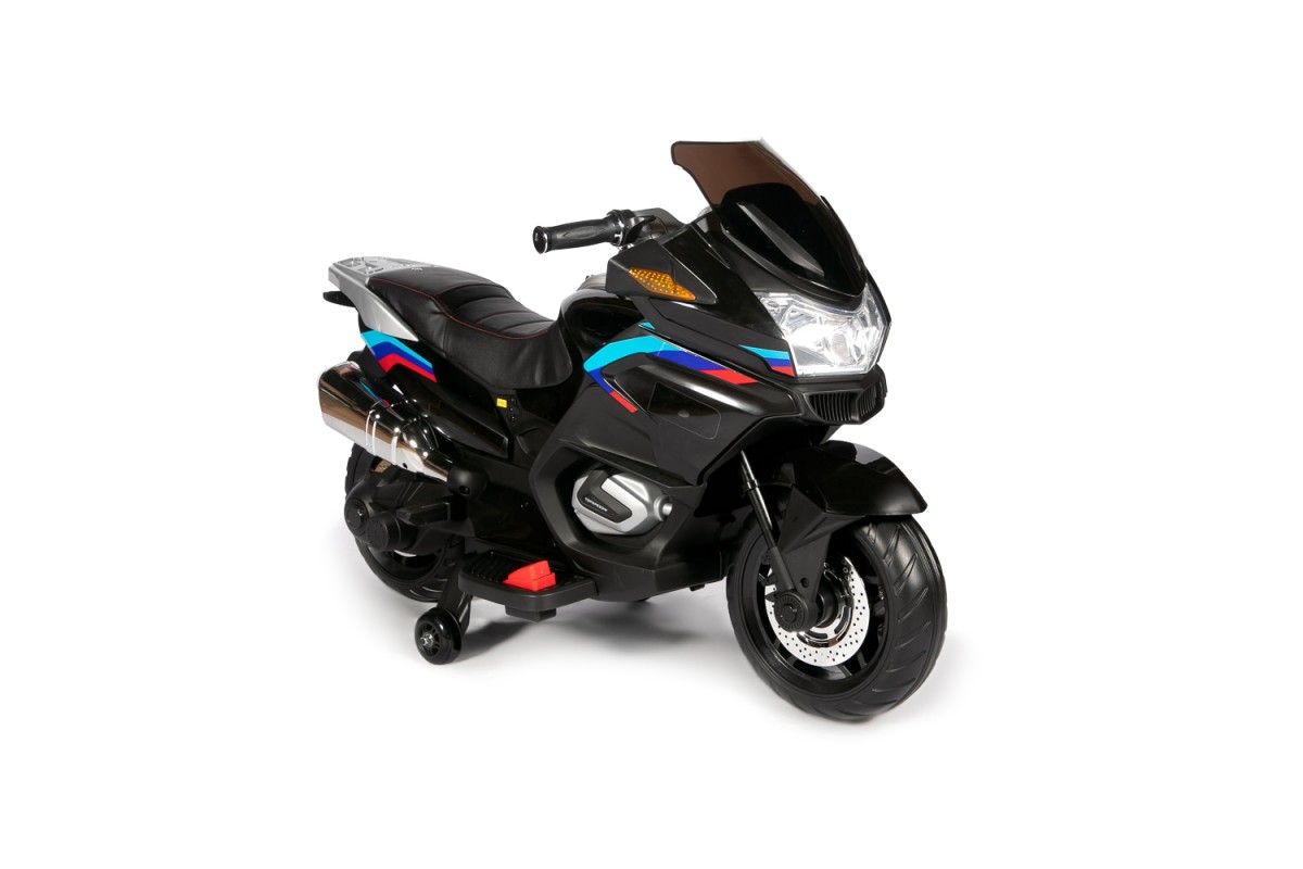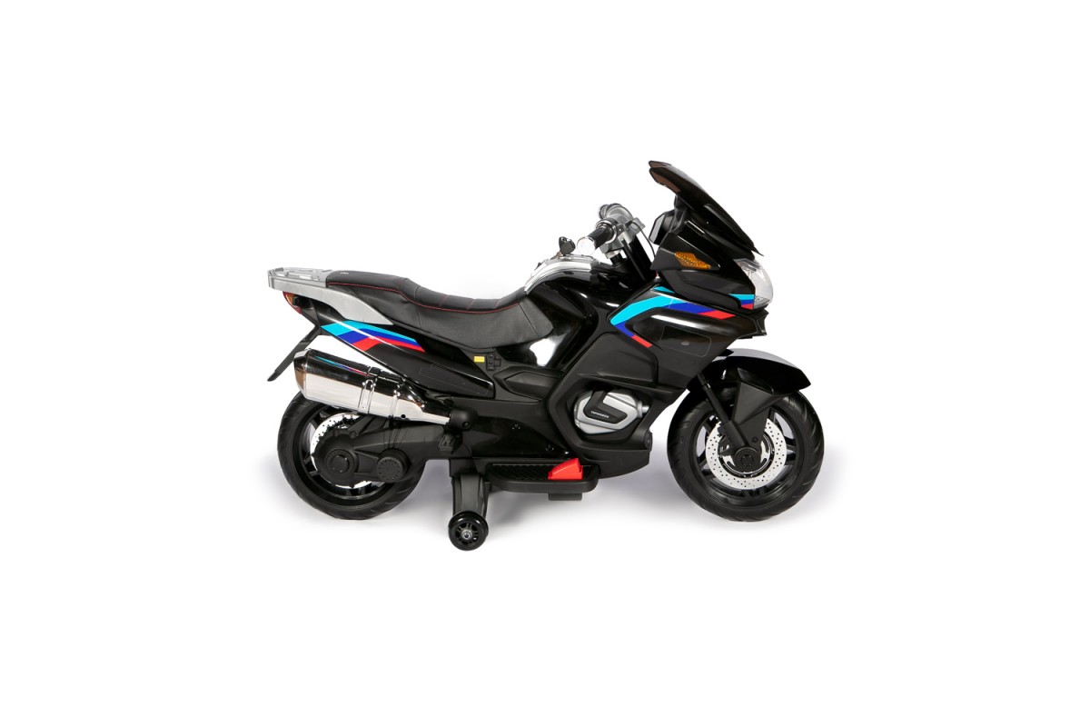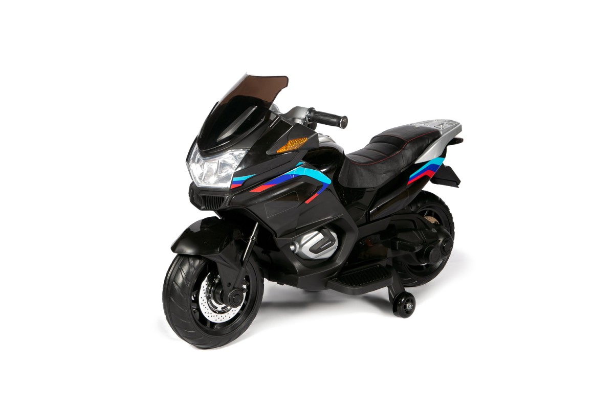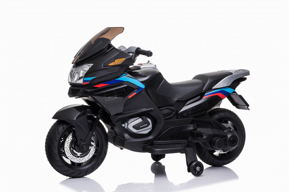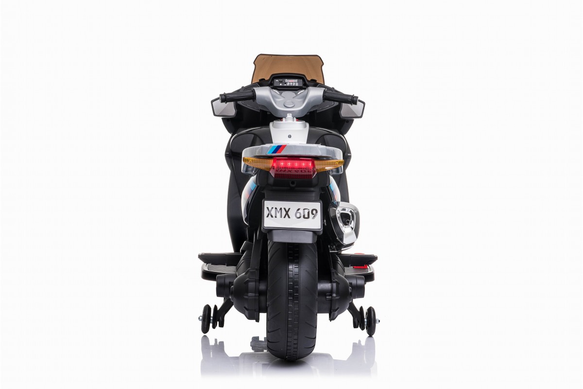 Детский электромотоцикл XMX (черный, EVA, с ручкой газа, 12V) - XMX609-BLACK - это новый двухмоторный мотоцикл, копия BMW R1200 RT. На EVA колесах, кожаным сидением, неоновой подсветкой. Для младших детей предусмотрены запасные боковые колеса для устойчивости, которые легко снимаются.