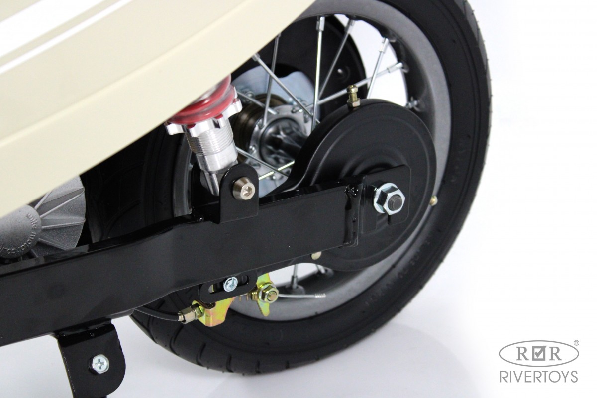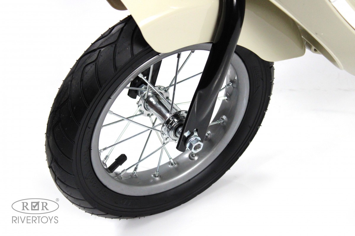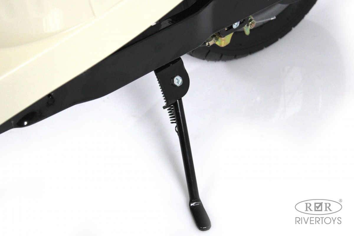 Колеса электромотоцикла выполнены из каучука, что обеспечивает отличное сцепление с дорогой и позволяет ребенку легко управлять транспортом. Максимальная скорость составляет 20 км/ч, что делает поездку безопасной и комфортной.