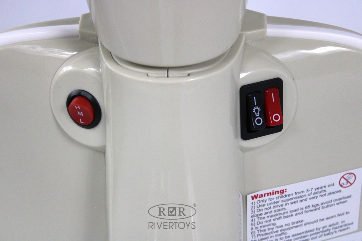 Сидение выполнено из эко-кожи, что делает его мягким и приятным на ощупь. Включение и движение осуществляется с помощью ручки газа и ручки тормоза, что позволяет ребенку легко контролировать скорость и направление движения.