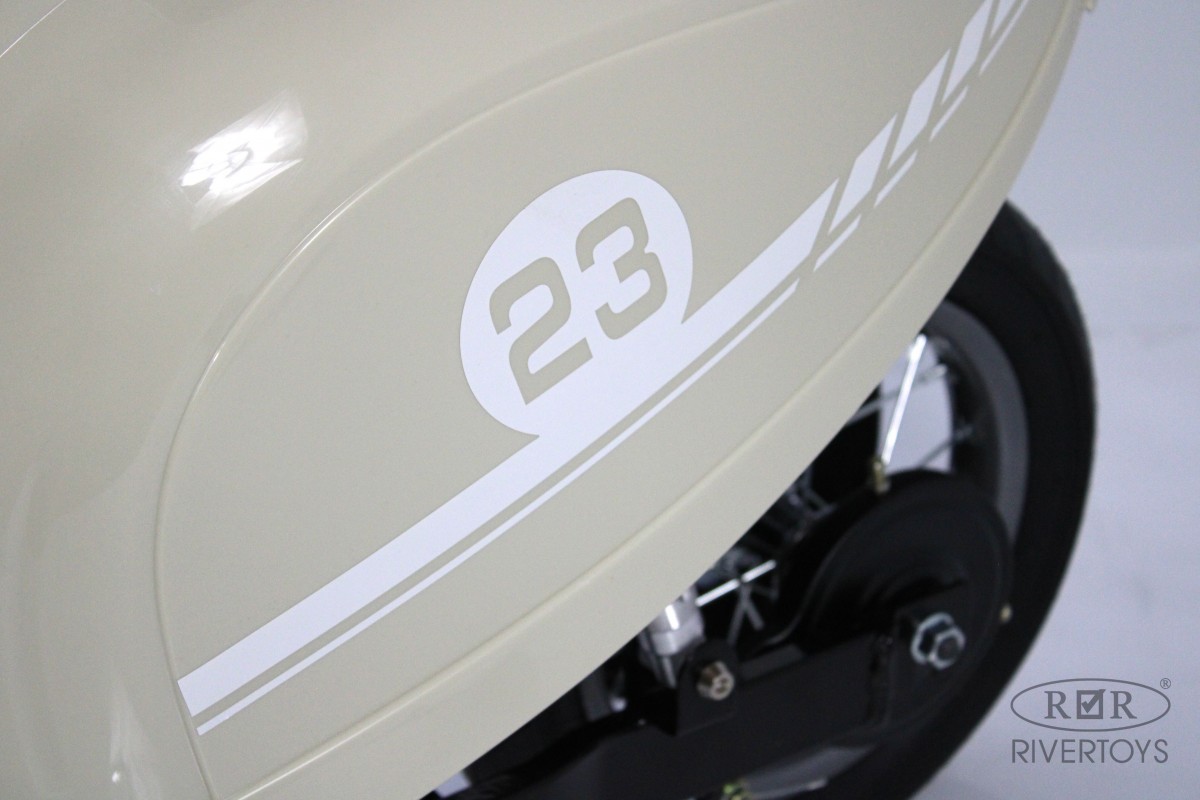 Размер собранной модели составляет 120*35* 56 см, а вес - 24,5 кг. Максимальная нагрузка на электромотоцикл составляет 65 кг, что позволяет использовать его детям разного возраста и комплекции.