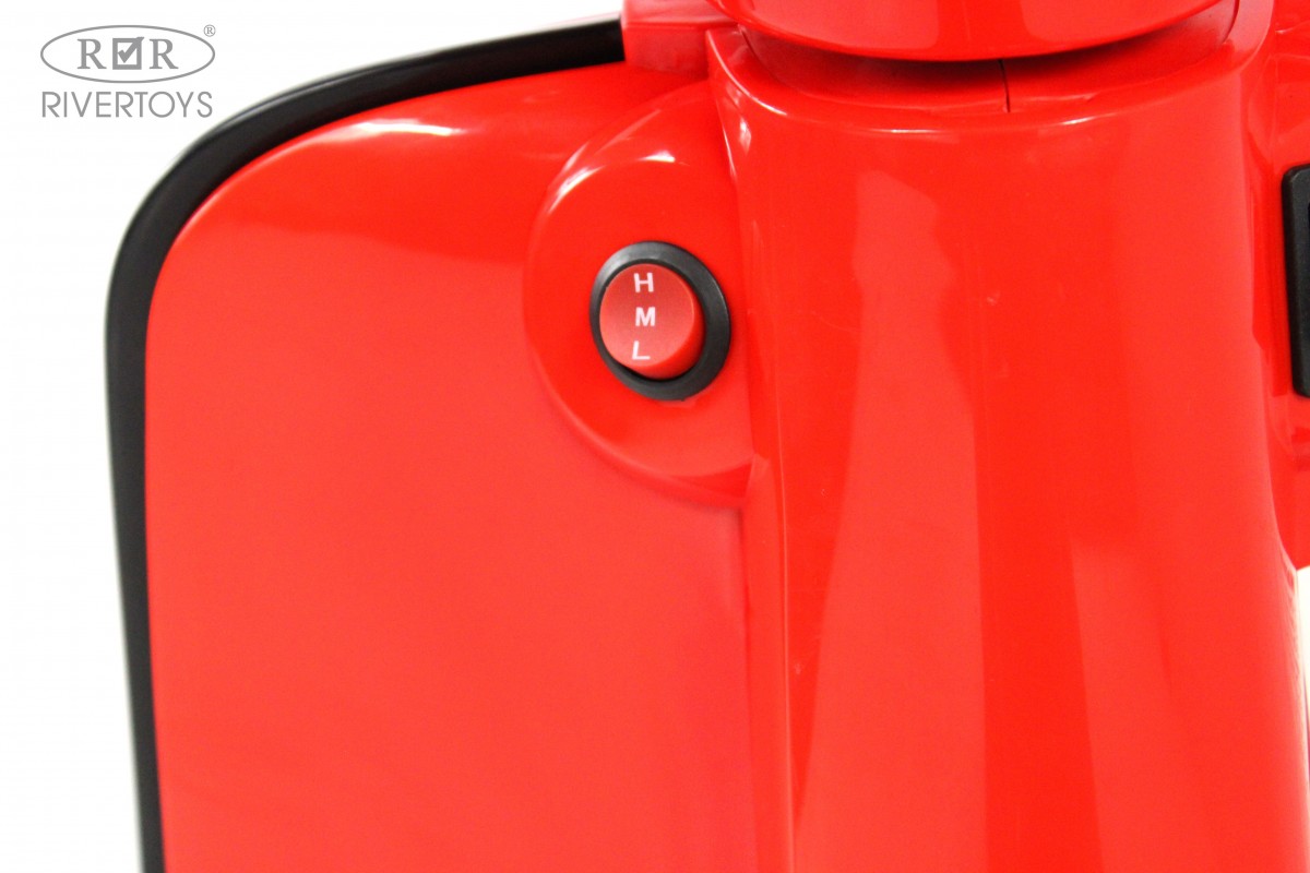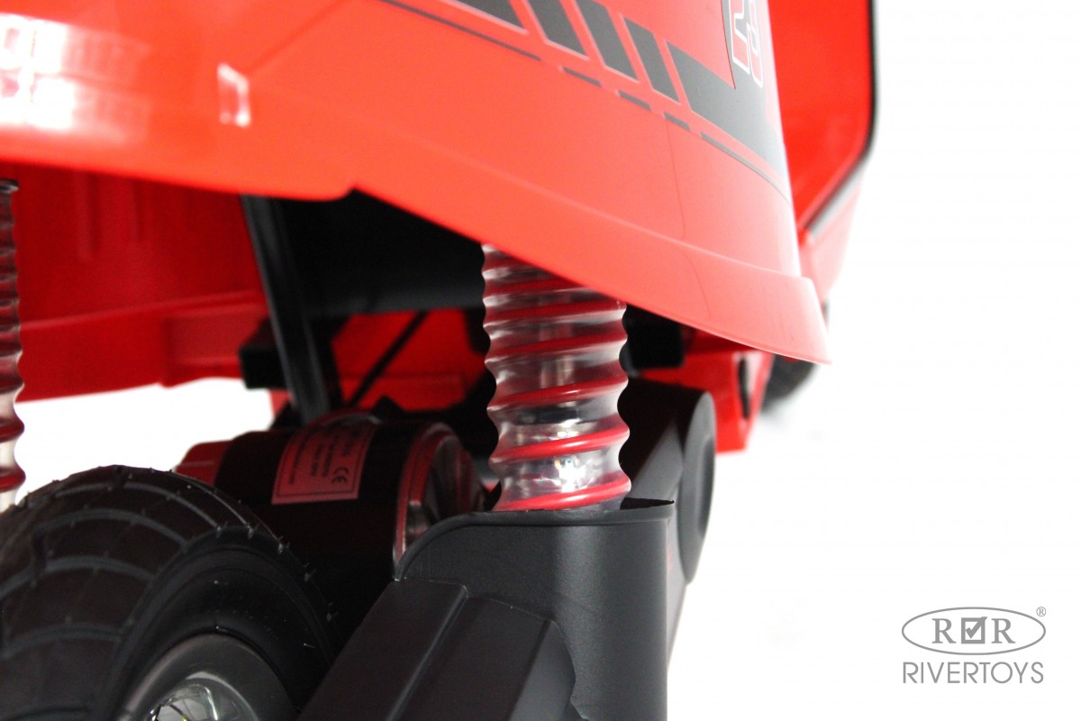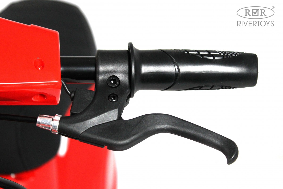Сидение выполнено из эко-кожи, что делает его мягким и приятным на ощупь. Включение и движение осуществляется с помощью ручки газа и ручки тормоза, что позволяет ребенку легко контролировать скорость и направление движения.
