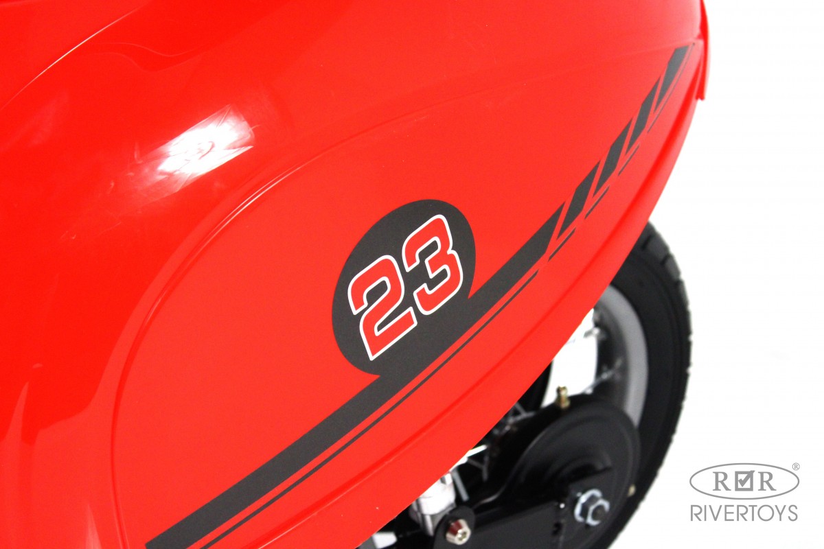 Колеса электромотоцикла выполнены из каучука, что обеспечивает отличное сцепление с дорогой и позволяет ребенку легко управлять транспортом. Максимальная скорость составляет 20 км/ч, что делает поездку безопасной и комфортной.