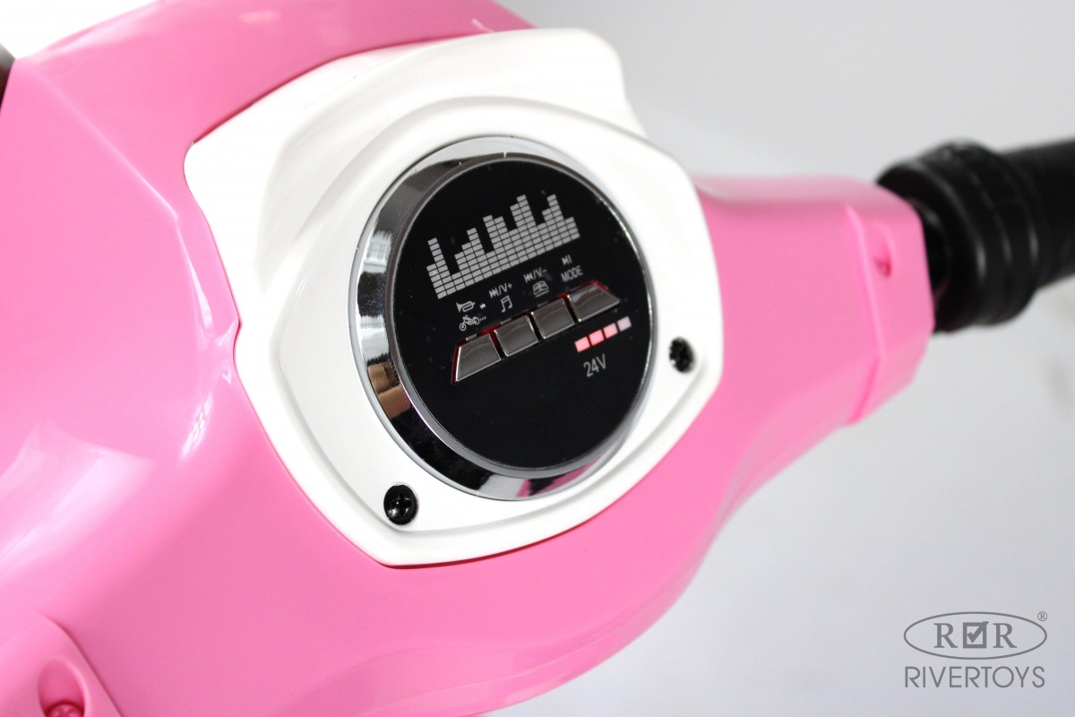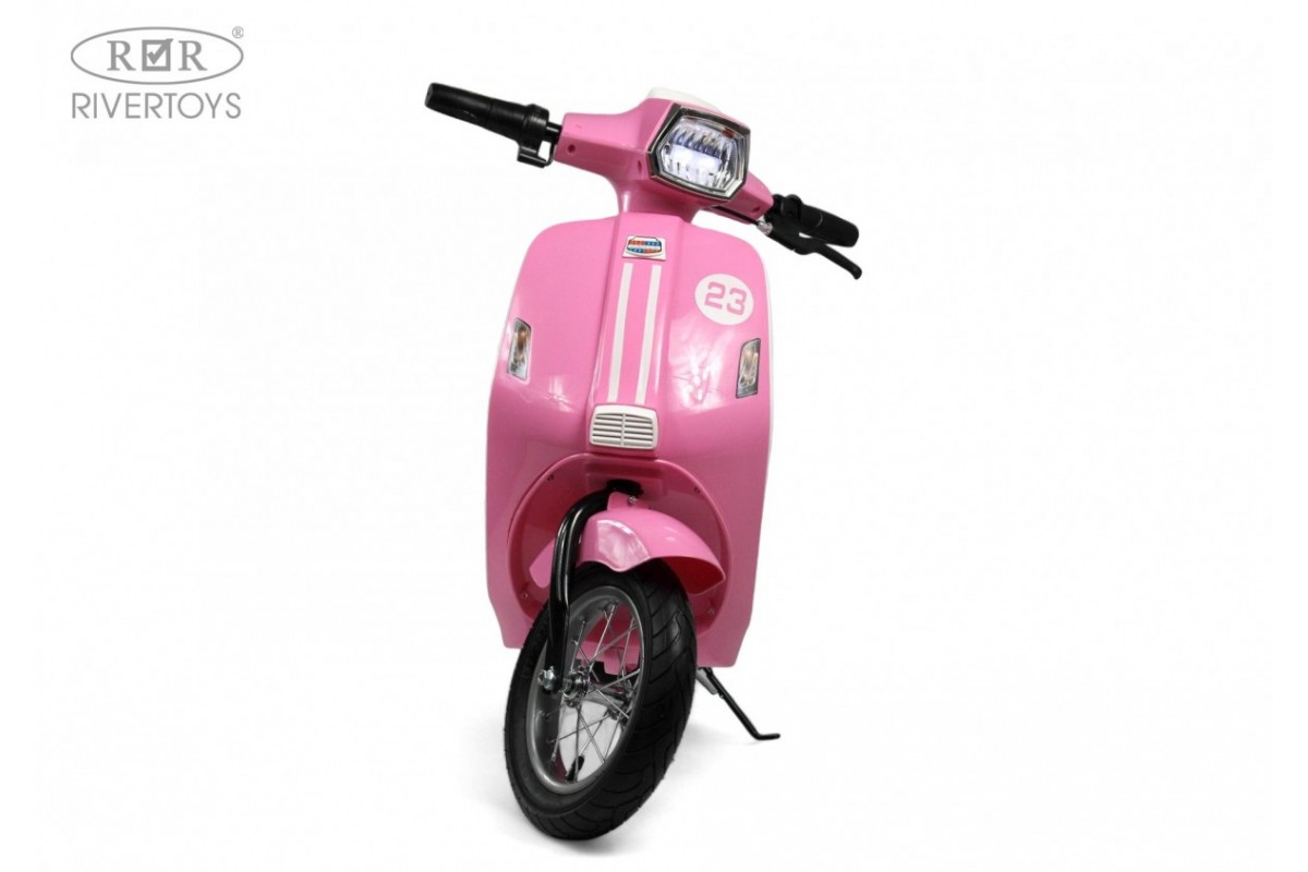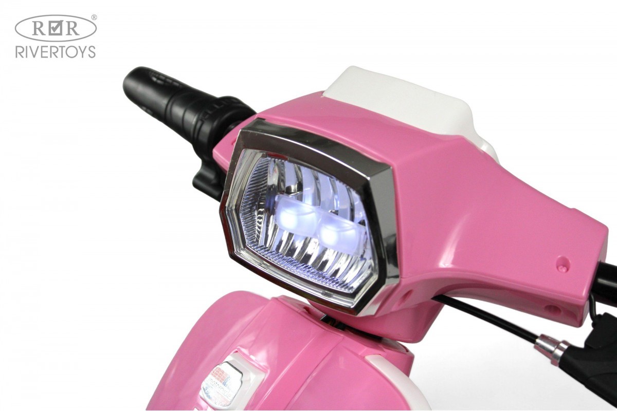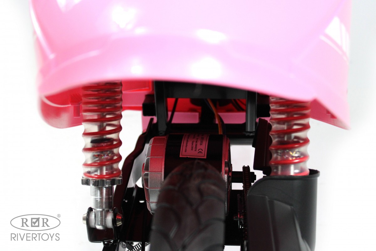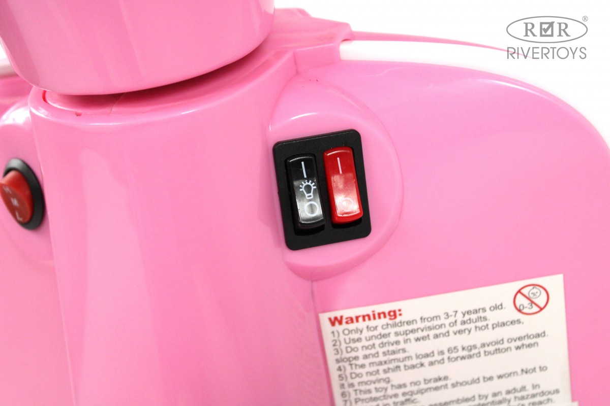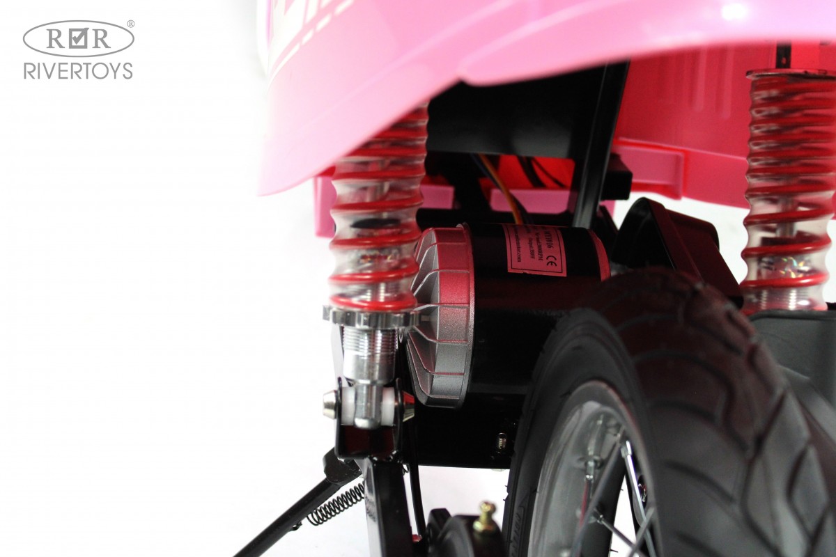 Колеса электромотоцикла выполнены из каучука, что обеспечивает отличное сцепление с дорогой и позволяет ребенку легко управлять транспортом. Максимальная скорость составляет 20 км/ч, что делает поездку безопасной и комфортной.