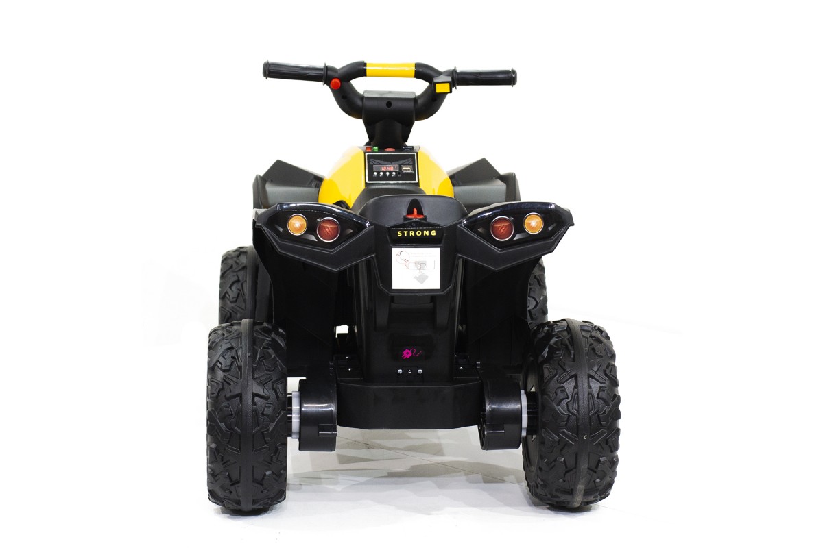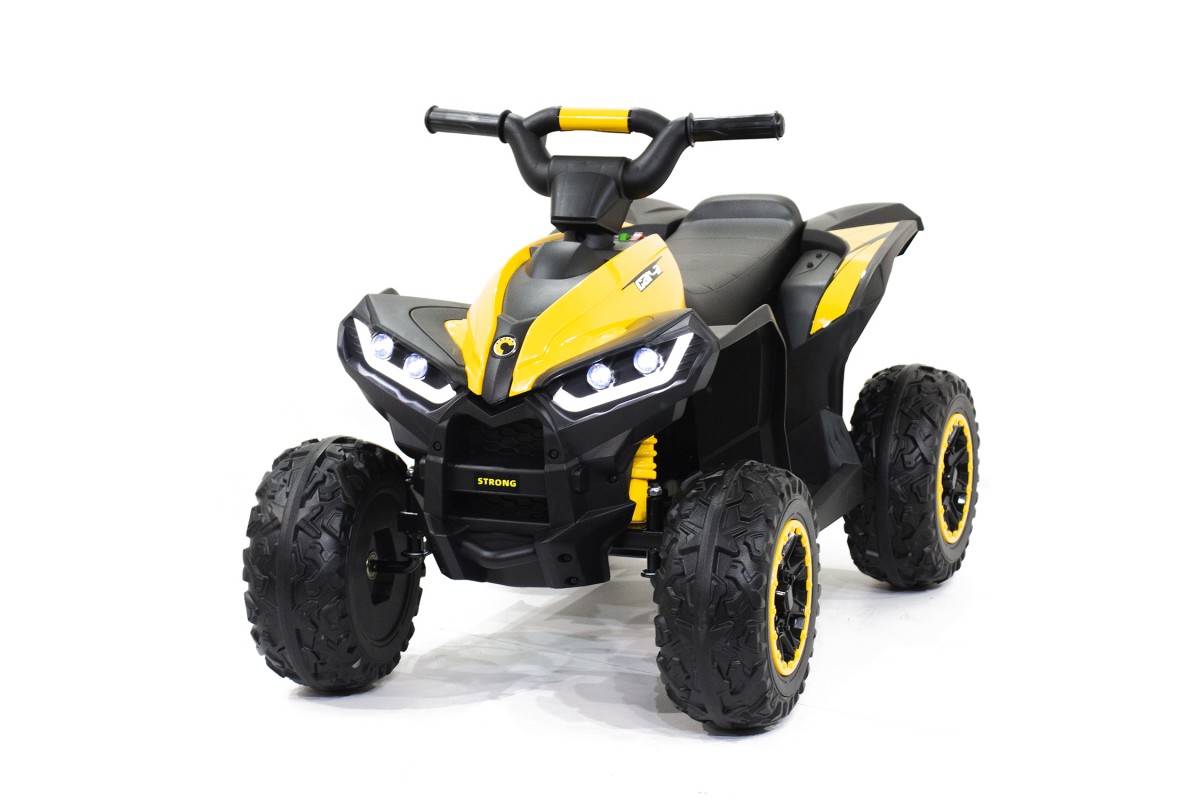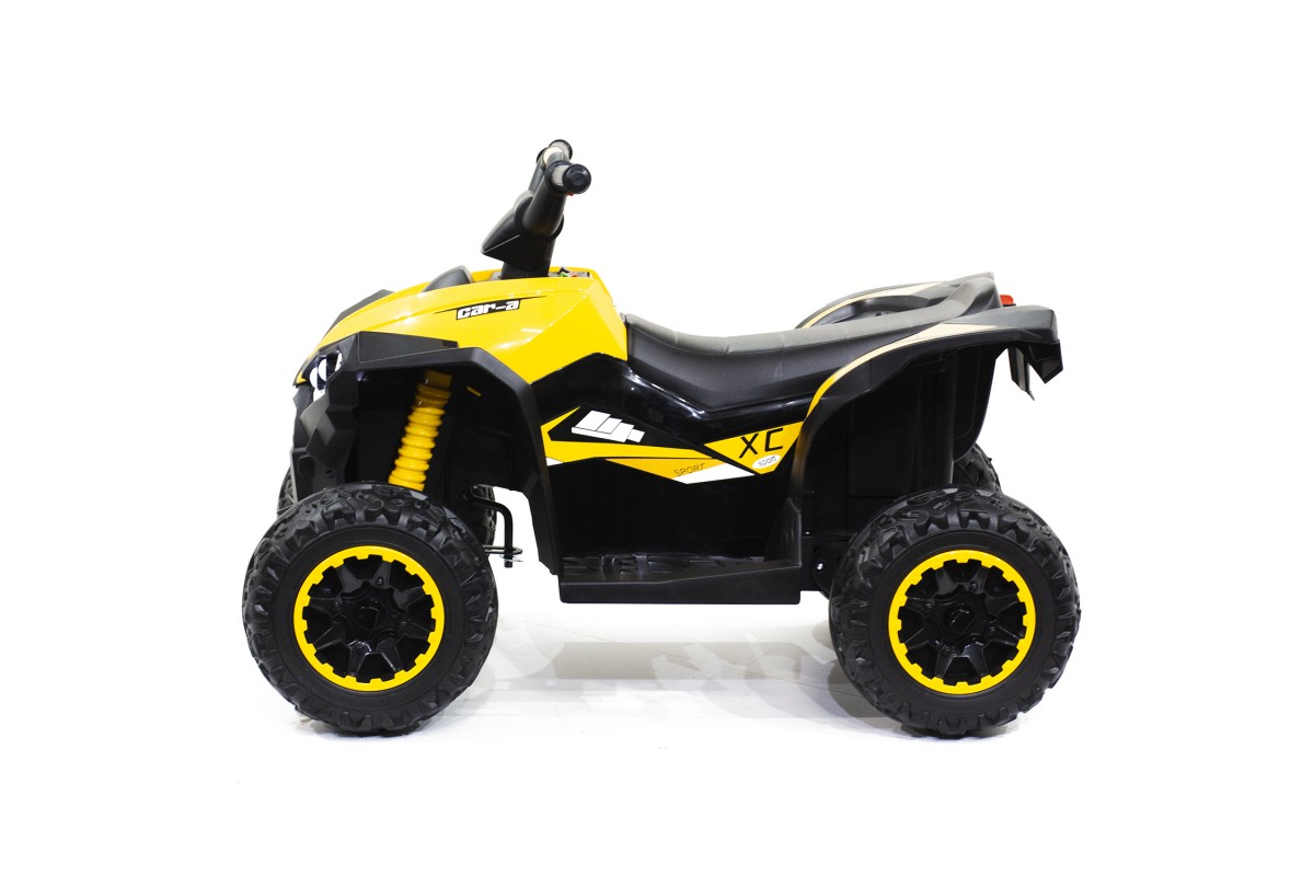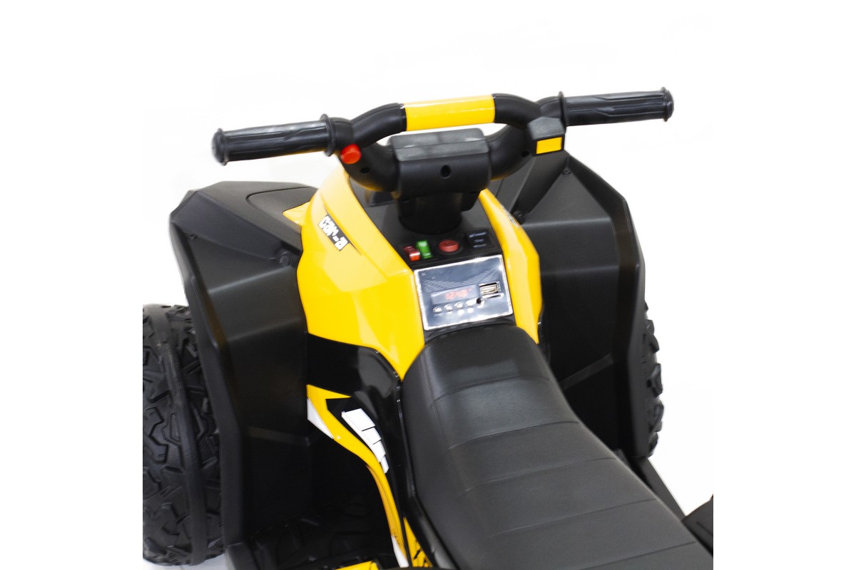 Детский квадроцикл HL Renegade X 2WD EVA 12V - HL578-YELLOW привлекает внимание не только своим внешним видом, но и отличной комплектацией. Слегка агрессивный, грубый, с классическими элементами дизайн делает эту модель похожей на взрослый квадроцикл, тем самым выделяя его среди прочих. Именно поэтому данная модель так нравится детям. К тому же, электровездеход имеет самые современные опции. Два мощных мотора позволяют плавно разогнать машину до 5 км/ч. А удобное сиденье, широкие платформы для ног, "мягкий" руль, прочные резиновые колеса сделают поездку максимально комфортной. Квадроцикл предназначен для детей от 2-х до 5 лет, и способен увезти на себе вес до 30 кг. С управлением ребенок разберется быстро: нажатием кнопки запускается двигатель, нажатием педали приводится в движение. Имеются две скорости движения. Предусмотрены звуковые и световые эффекты: звук мотора, музыкальное сопровождение, FM радио, подключение устройств через Bluetooth, возможность подключения MP3, USB, TF card, горят передние фары. Можно не сомневаться, ребенок обязательно оценит красоту и функциональность электроквадроцикла, который будет радовать своего обладателя ни один год. В комплекте есть дистанционный пульт управления.