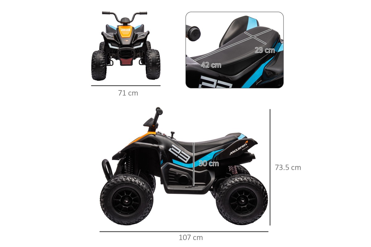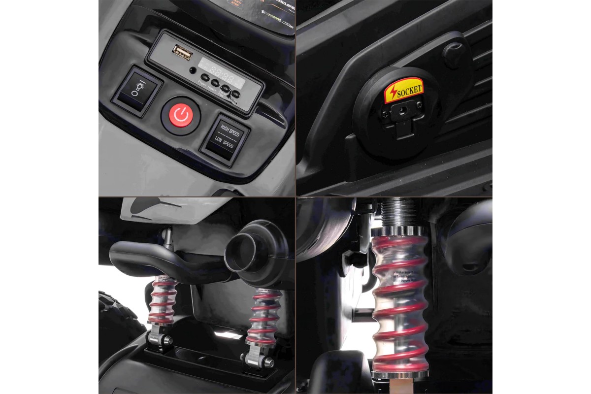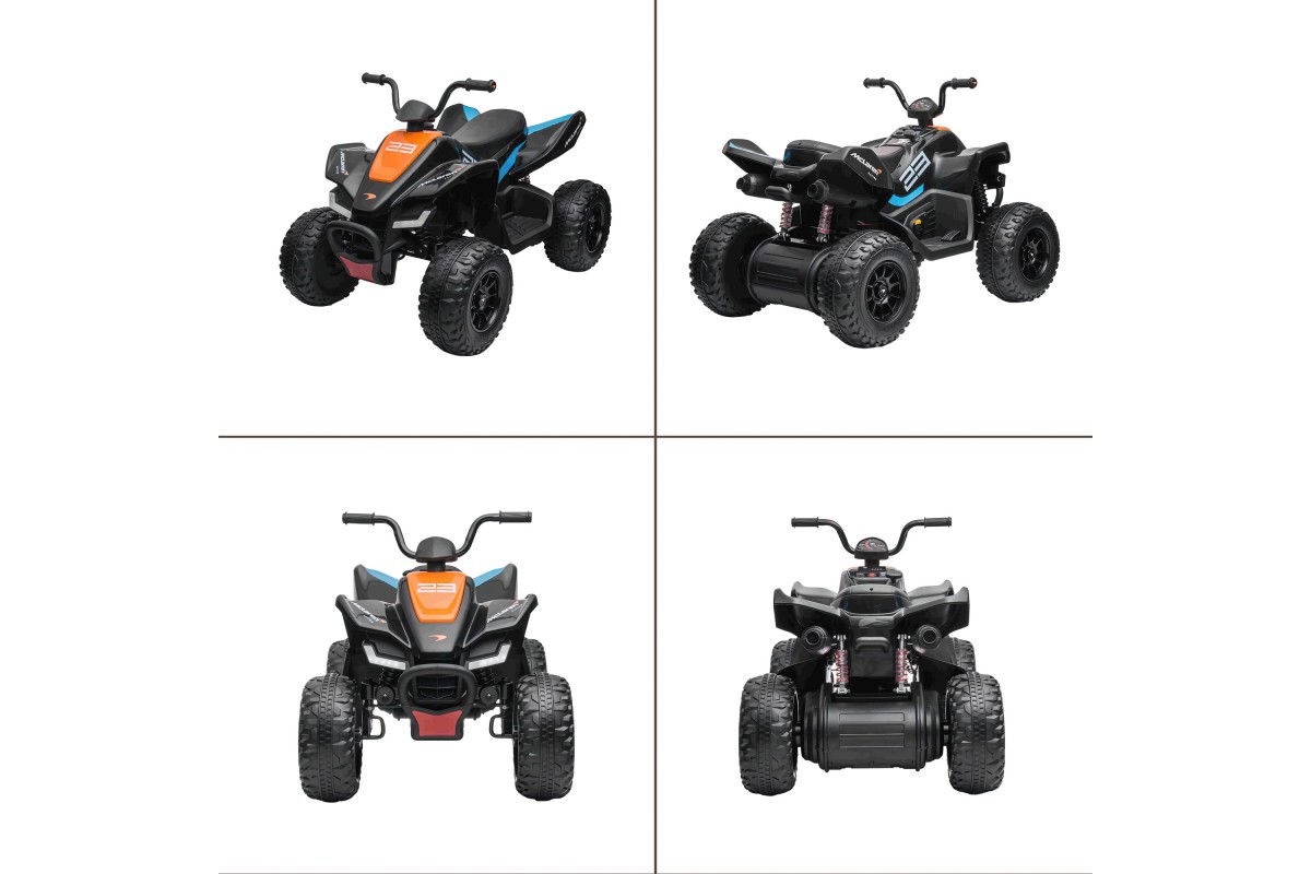 Детский квадроцикл MCLAREN MCL 35 LIVERIES 12V (полный привод, EVA) - JL212-BLACK - это лицензионная продукция и соответствует всем стандартам качества. Помимо классного дизайна, квадроцикл имеет высокое качество и широкий функционал. Отлично подойдет малышам до 5 лет, полный привод обеспечит хорошую проходимость модель, емкий аккумулятор долгое время катания, а родители смогут полностью контролировать маневры с пульта управления.