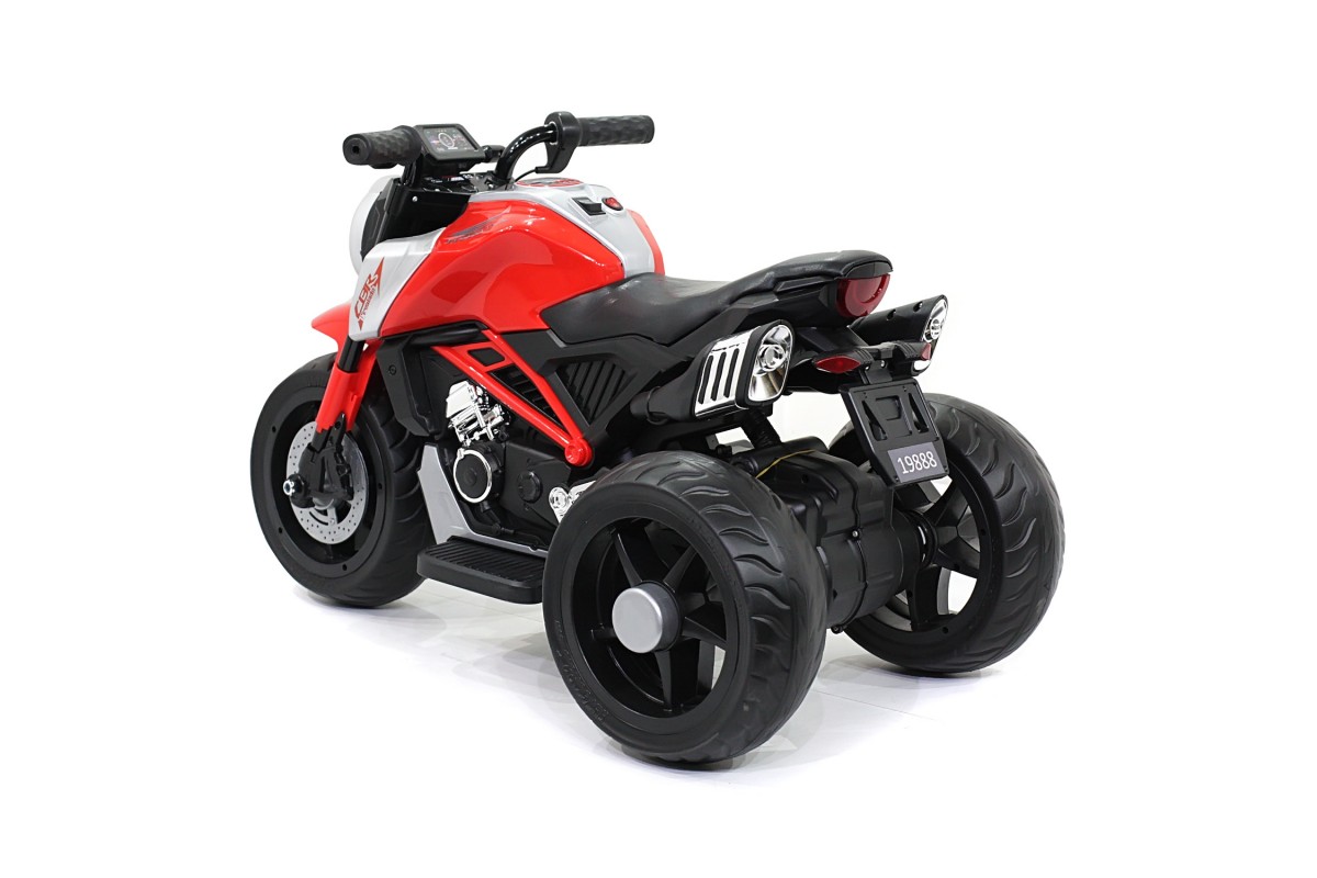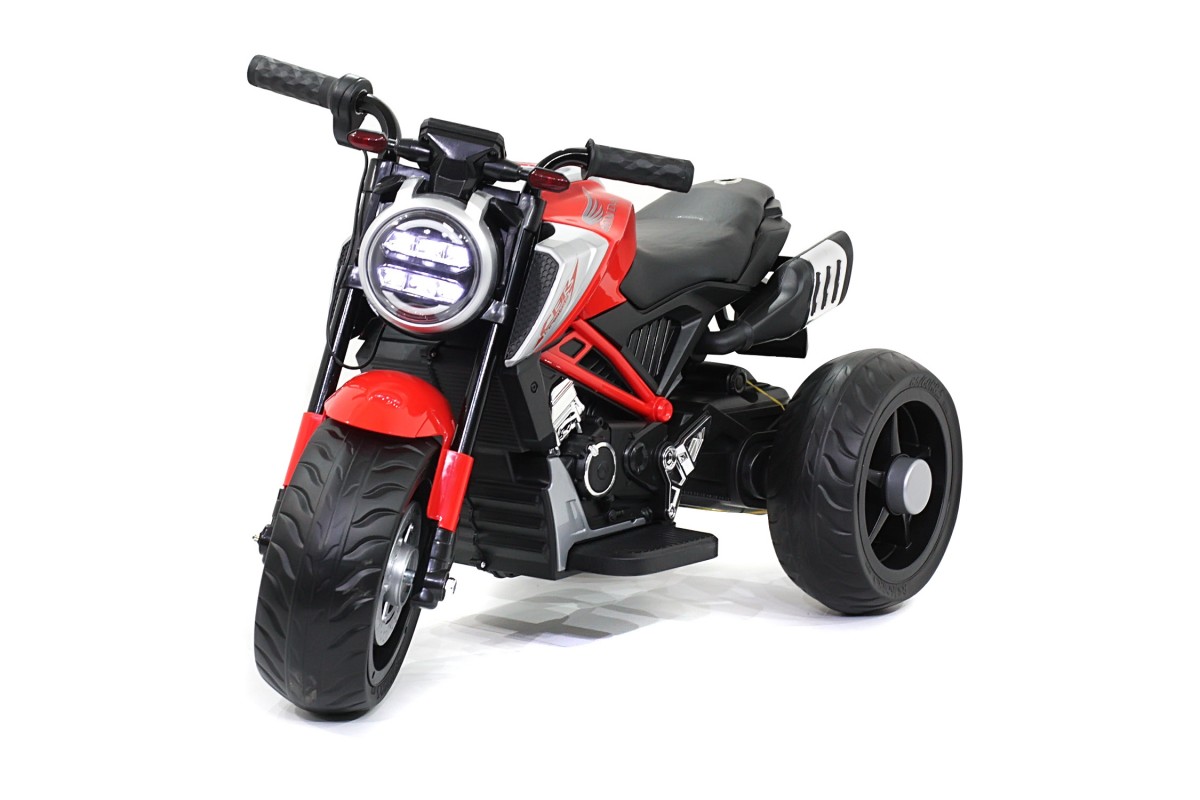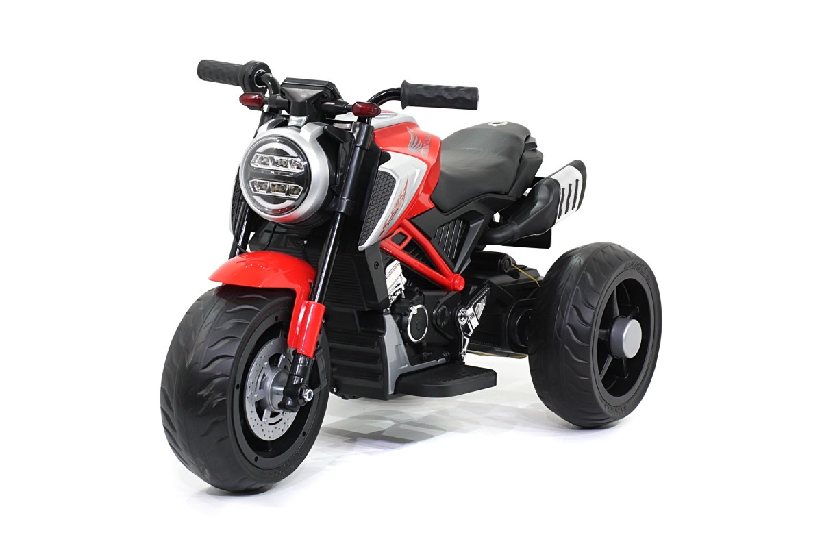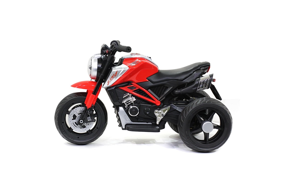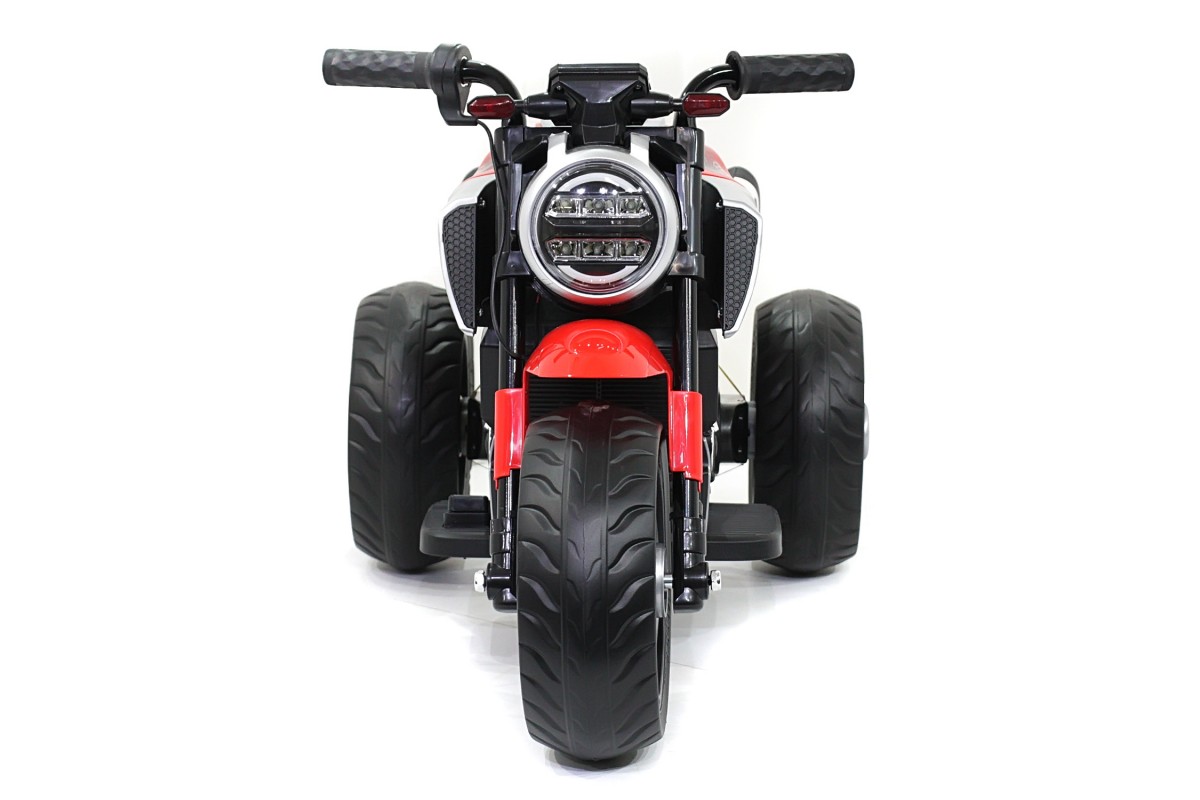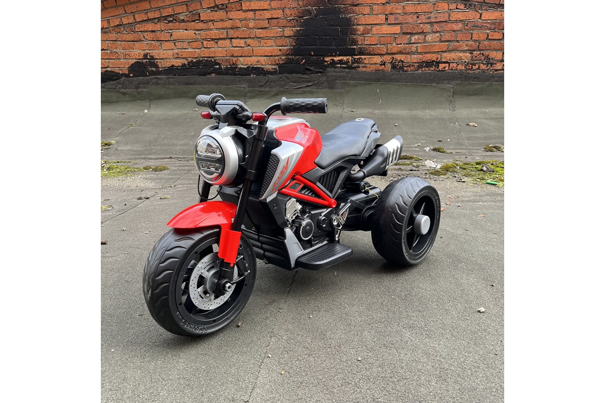 Детский мотоцикл (трицикл) Honda CB1000R красный - QK-1988-RED полностью передаёт атмосферу крутого байка, особенно в сочетании с яркой и стильной подсветкой передней фары. Широкая трёхколёсная база удерживает электромобиль в правильном положении, чтобы он не перевернулся даже при езде по неровной дорожной поверхности. Сиденье оснащено мягким кожаным чехлом, который обеспечивает максимальный комфорт водителя. Резиновые колёса обеспечивают хорошую проходимость по асфальтированным дорогам и твёрдому грунту. Вам этого мало?! На завершение текста мы решили оставить самую интересную функцию - настоящую аудио магнитолу! Она оснащена разъёмами для подключения цифровых носителей с заранее записанными мелодиями, что позволяет слушать музыку не отвлекаясь от катания.