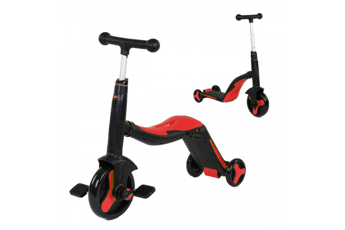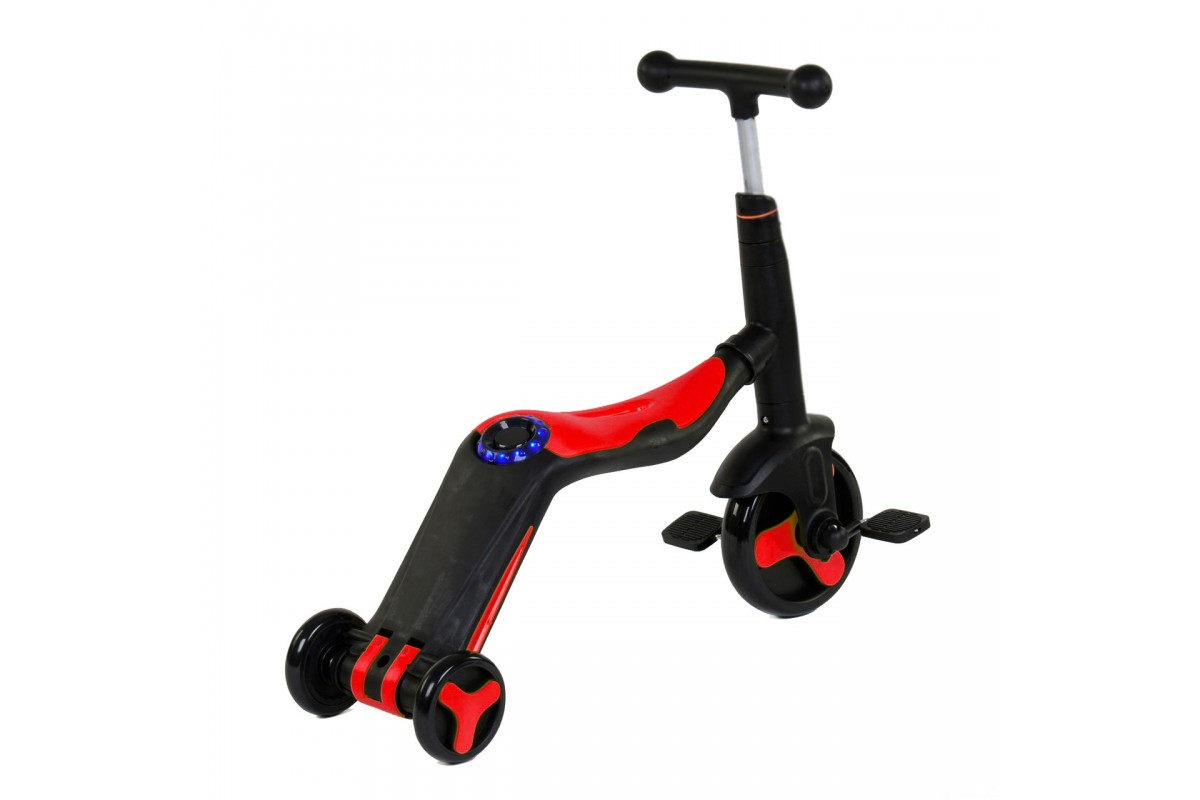 Детский самокат-беговел с музыкой 3в1 (самокат, беговел, велосипед) - FL-868 черно-красный - это модель самоката с возможностью трансформации в беговел и 3-х колесный детский велосипед со съемными педалями, является универсальной. Ребенок сможет кататься во время прогулки на свежем воздухе, укрепляя свой иммунитет и развивая отличную физическую форму.