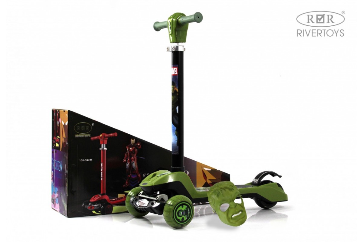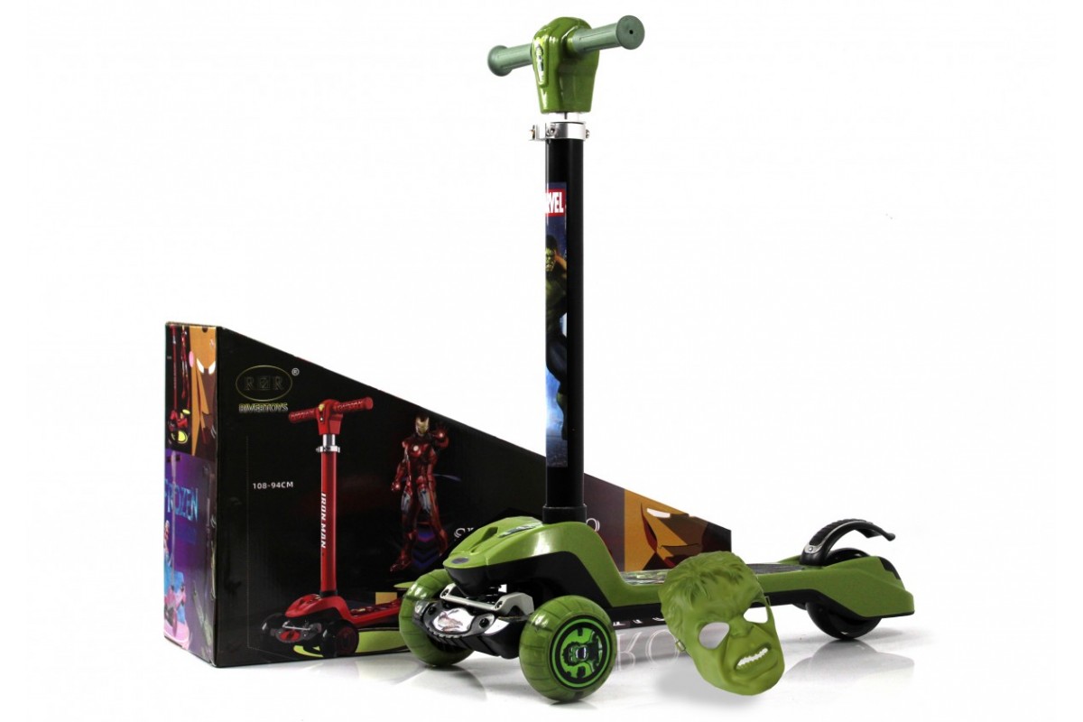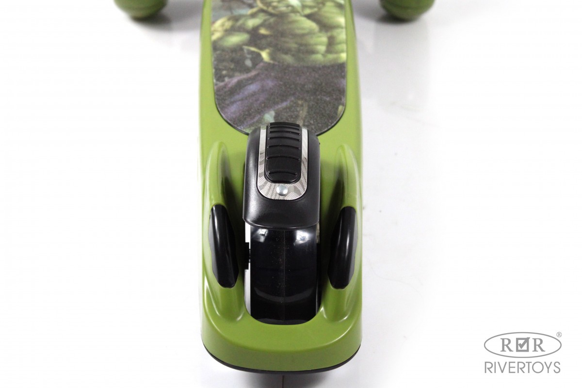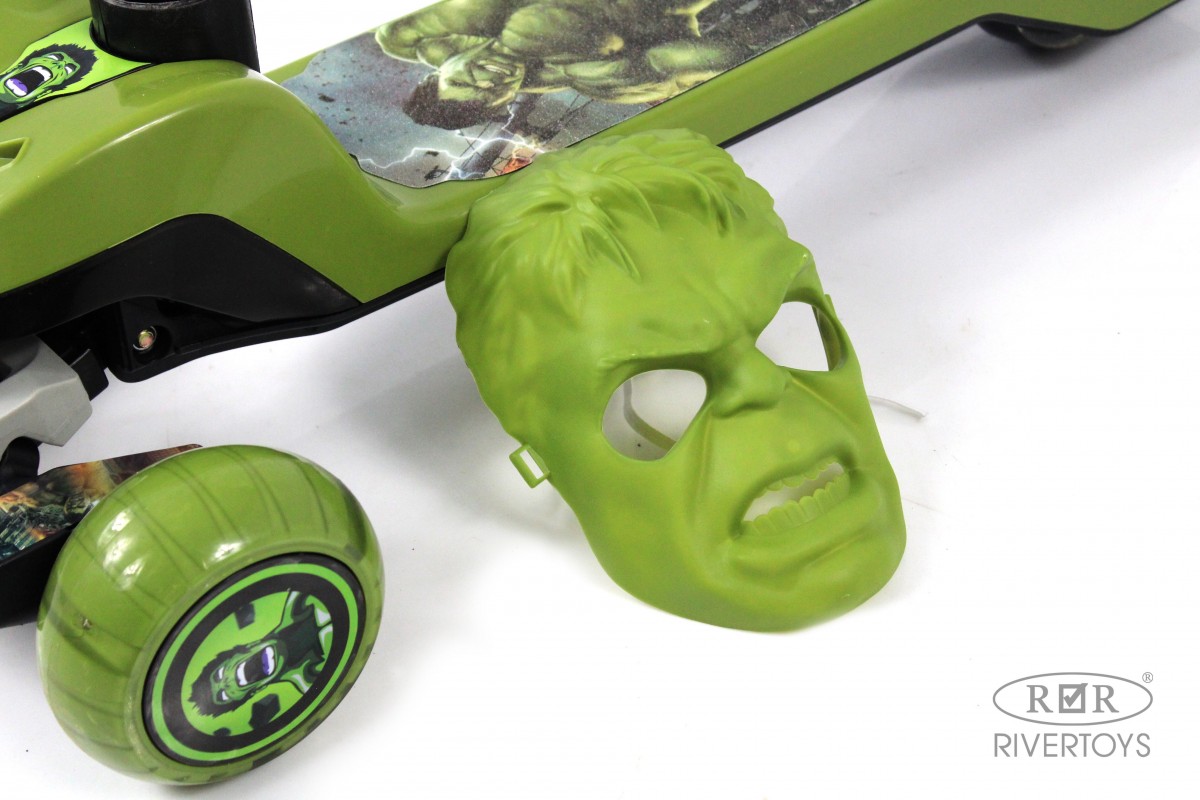Особенности: дизайн (зеленый - маска в комплекте), светящиеся колеса, передний амортизатор, усиленная дека, покрытие деки противоскользящее