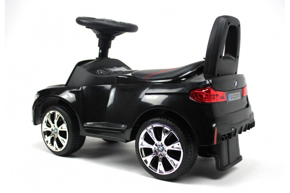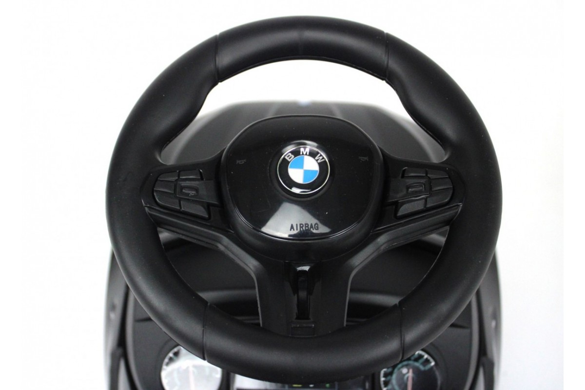 Детская каталка River Toys A999MP-D выполнена по лицензии и стилизована под седан BMW M5. Колеса выполнены из каучука. Кожаное сидение поднимается, открывая доступ к небольшому багажник.