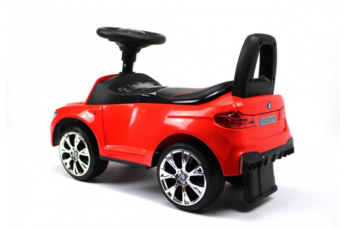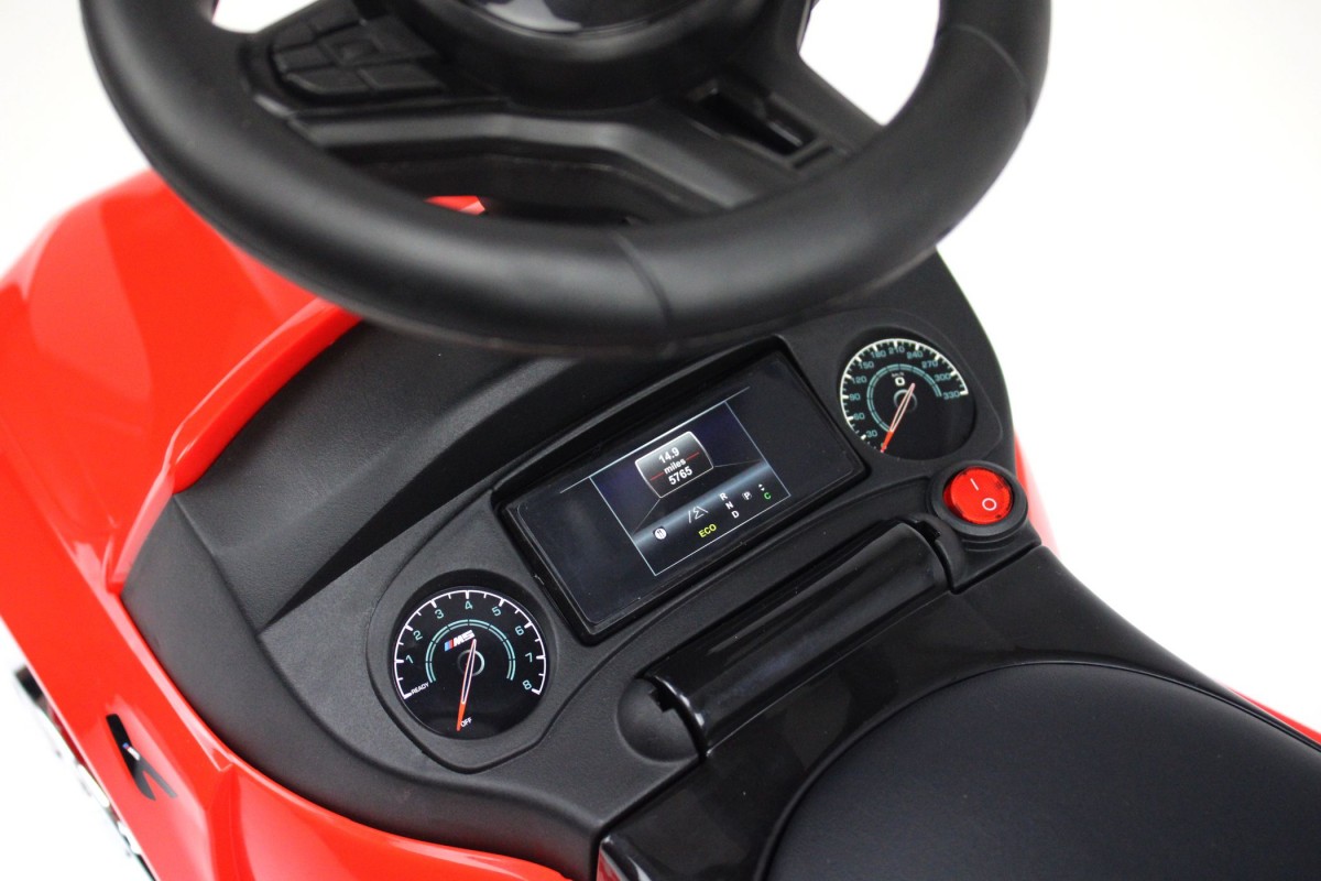 Детская каталка River Toys A999MP-D выполнена по лицензии и стилизована под седан BMW M5. Колеса выполнены из каучука. Кожаное сидение поднимается, открывая доступ к небольшому багажнику.