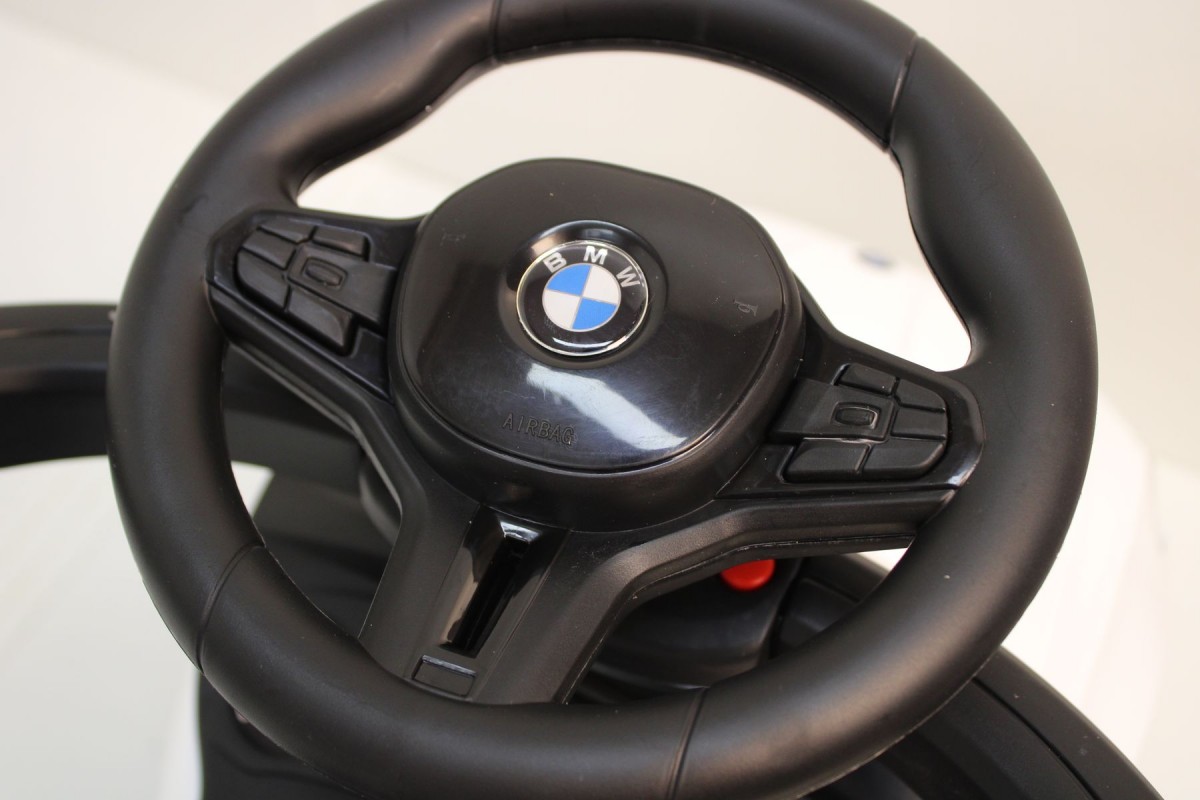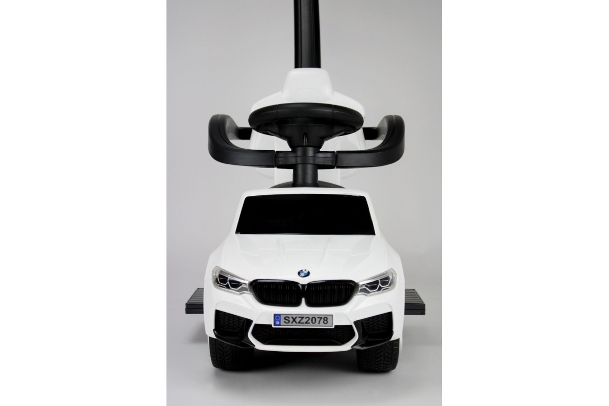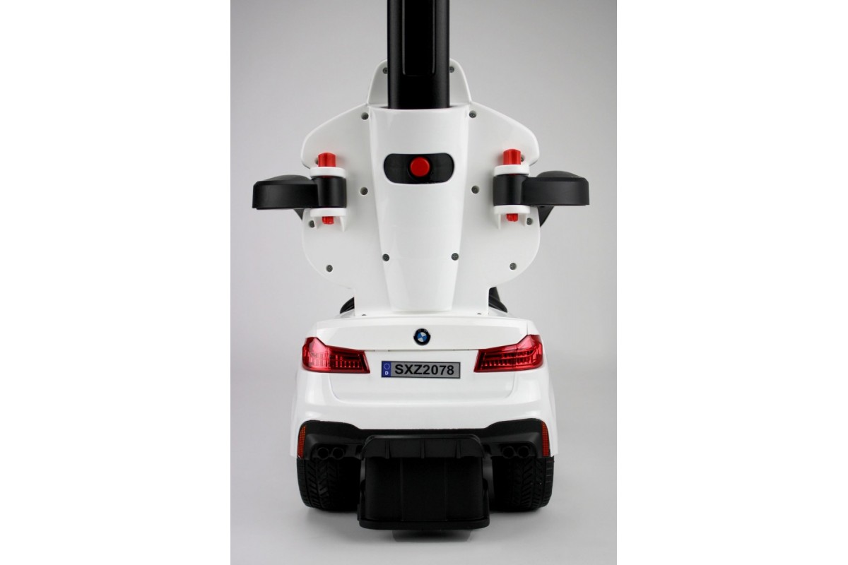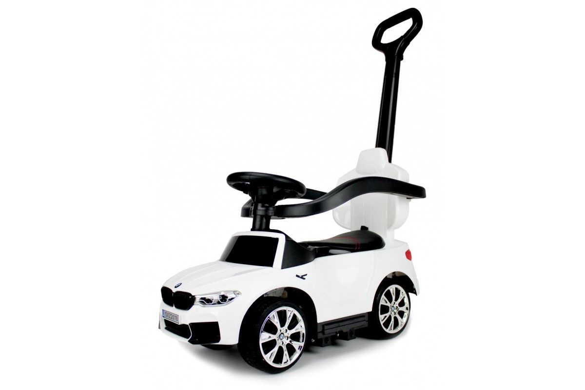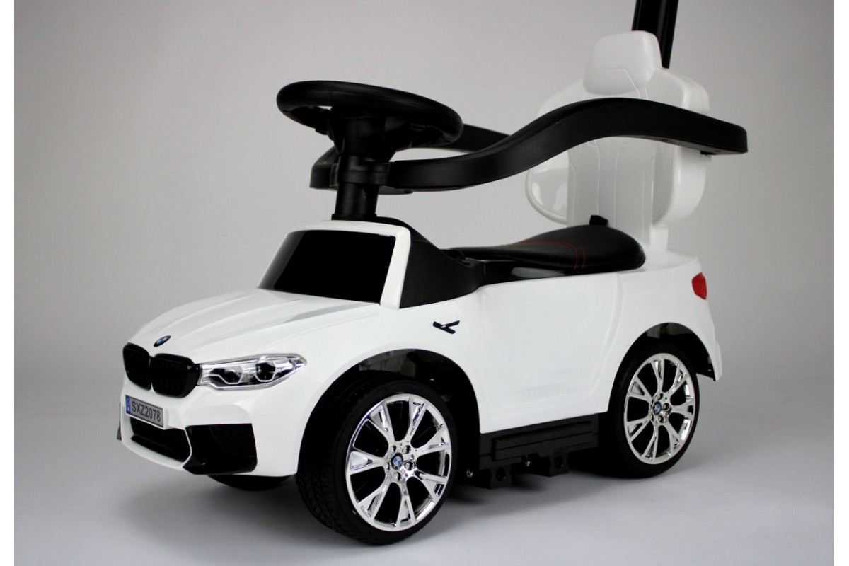 Детская каталка River Toys A999MP-M выполнена по лицензии и стилизована под седан BMW M5. Съемная родительская ручка сделает управление машинкой для родителей намного удобнее. По бокам ребенка ограждает защитный бампер. Есть выдвижные подножки.