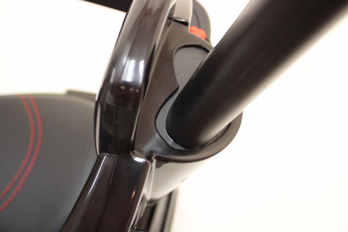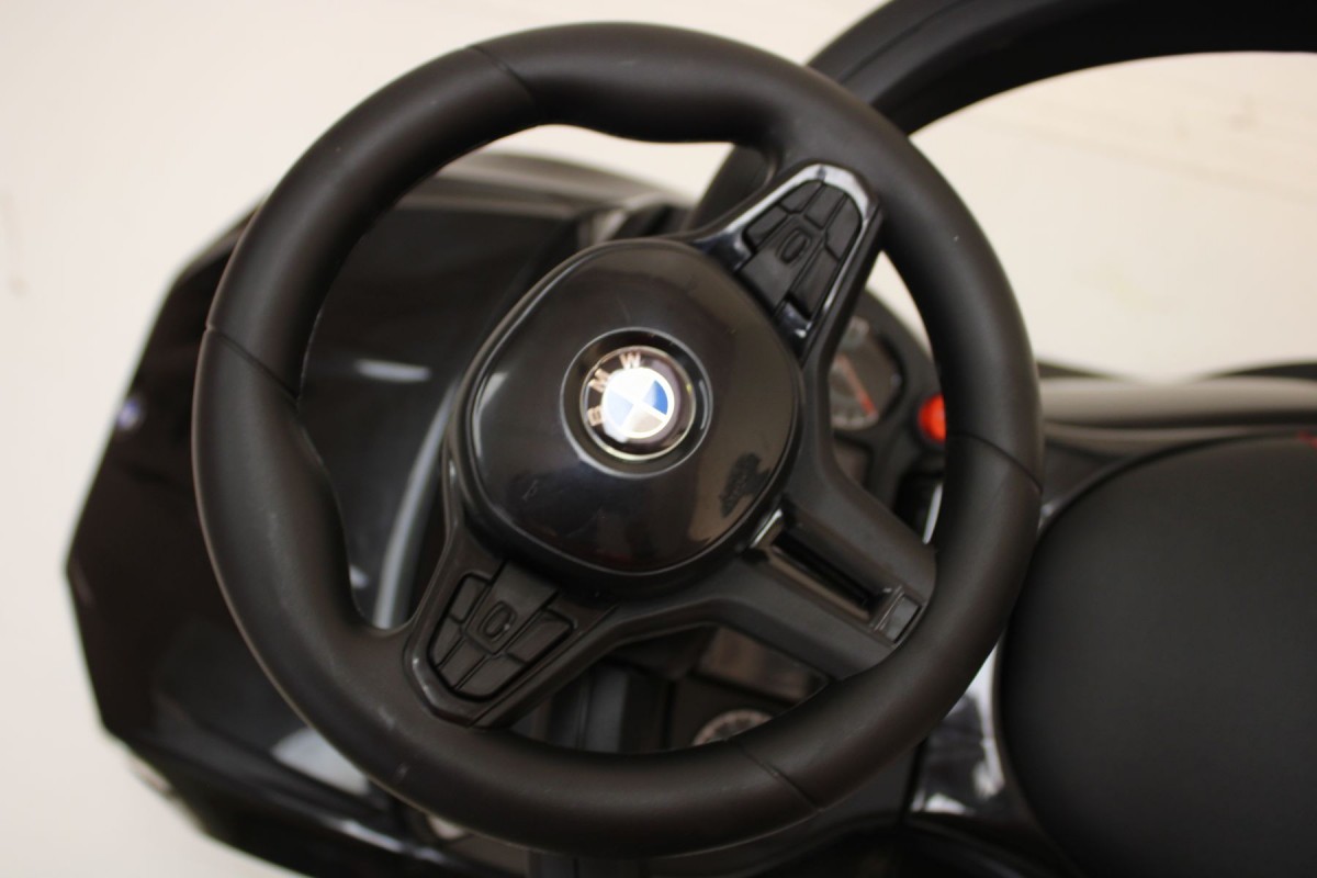 Колеса выполнены из каучука. Кожаное сидение поднимается, открывая доступ к небольшому багажнику. В каталке есть подсветка фар (передних и задних), а также музыкальный руль с заводскими мелодиями и звуком клаксона.