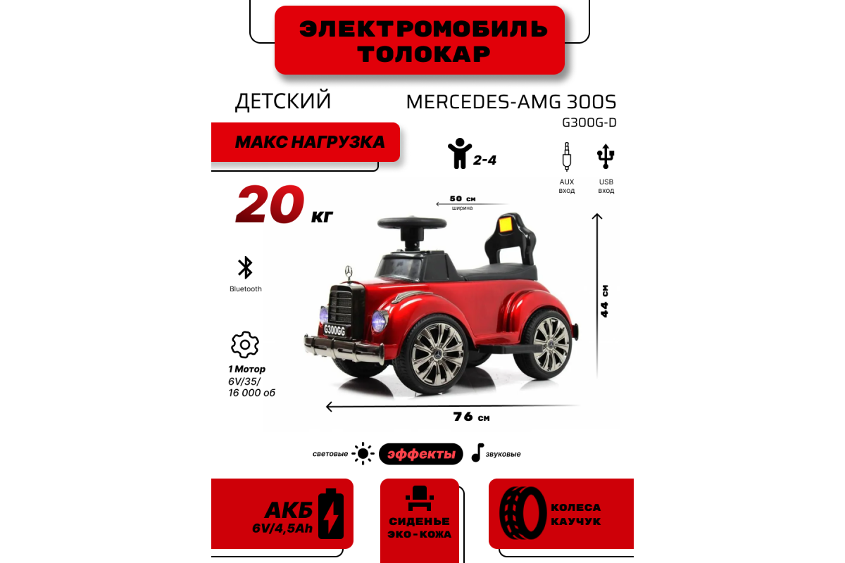 Толокар-электромобиль Mercedes-AMG 300S (G300G-D) с дистанционным управлением.